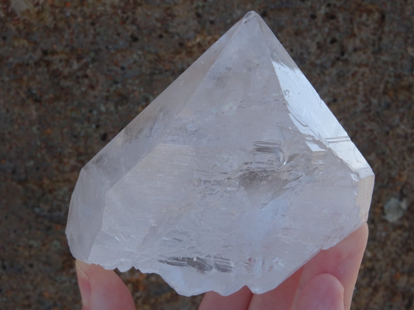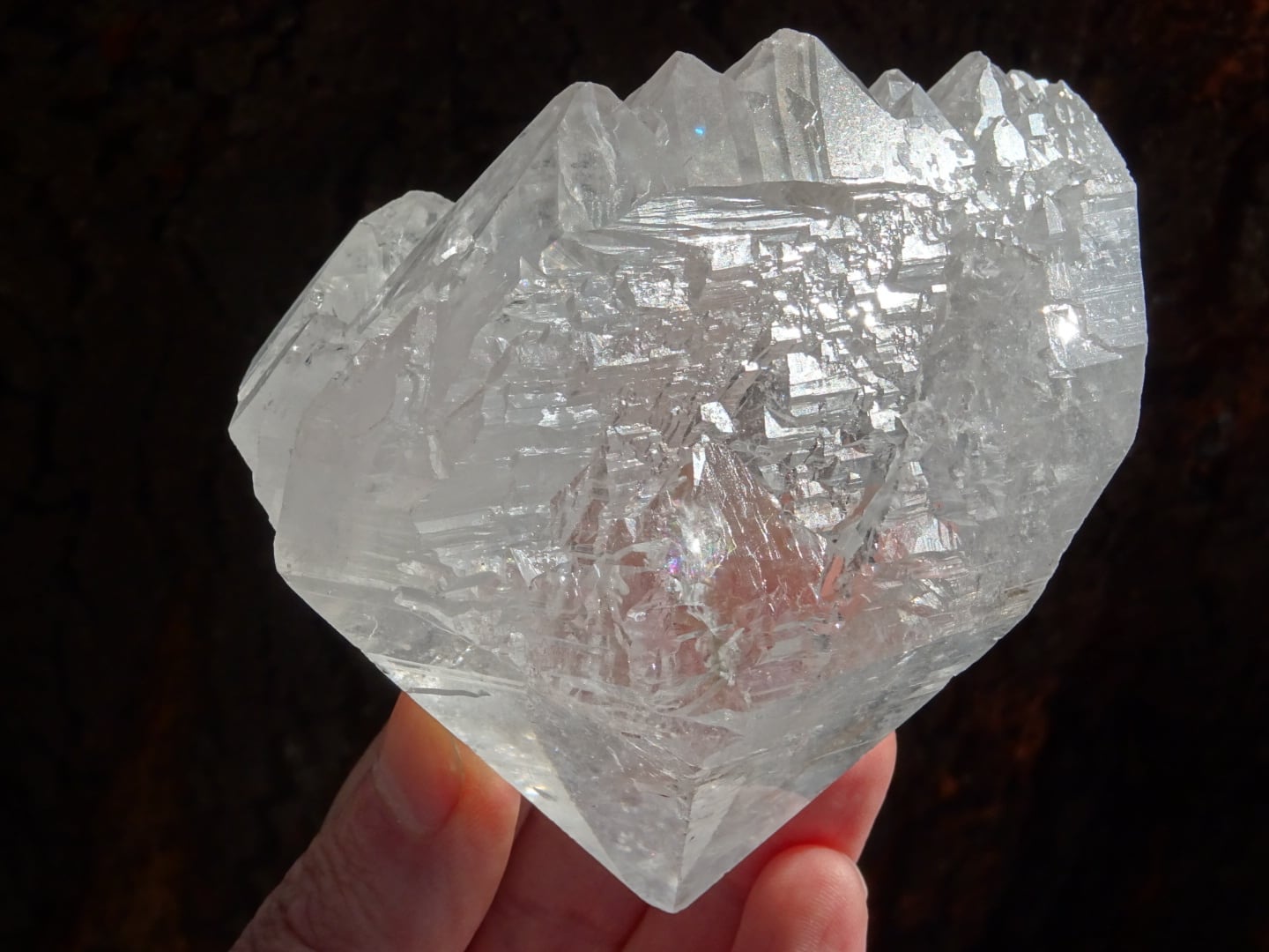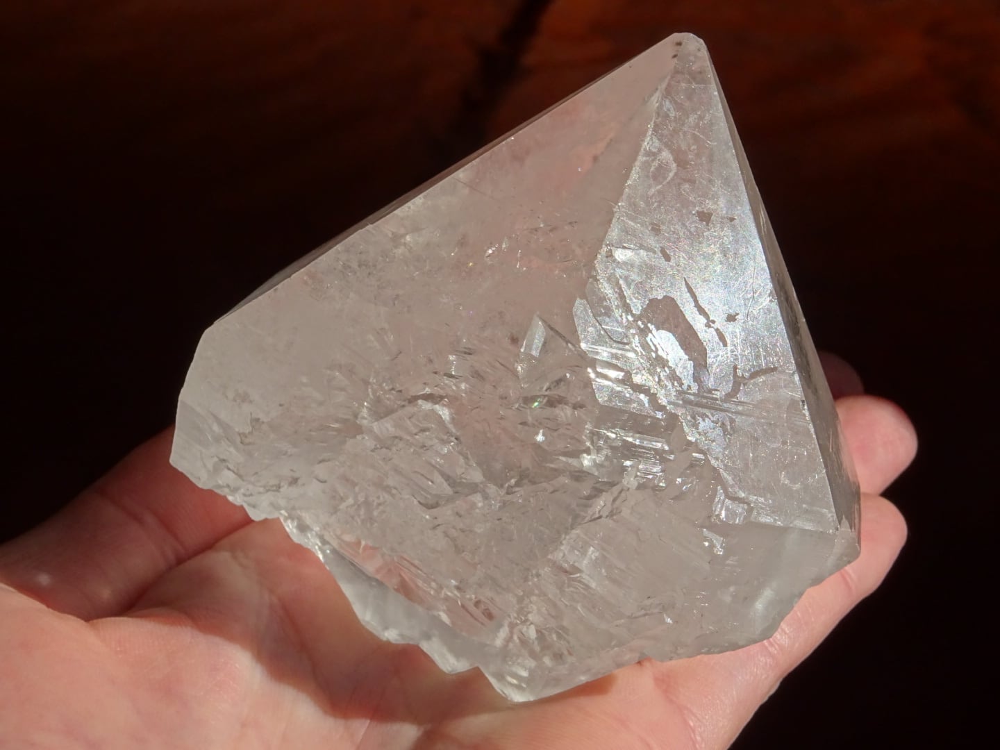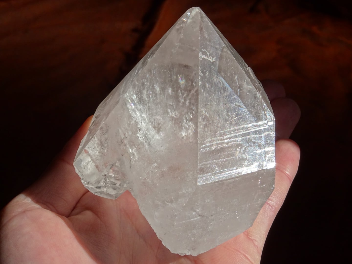 また、結晶の中部に綺麗に虹が出ているのと、根本のセルフヒールドしている部分にも虹が出ているのもポイントです。