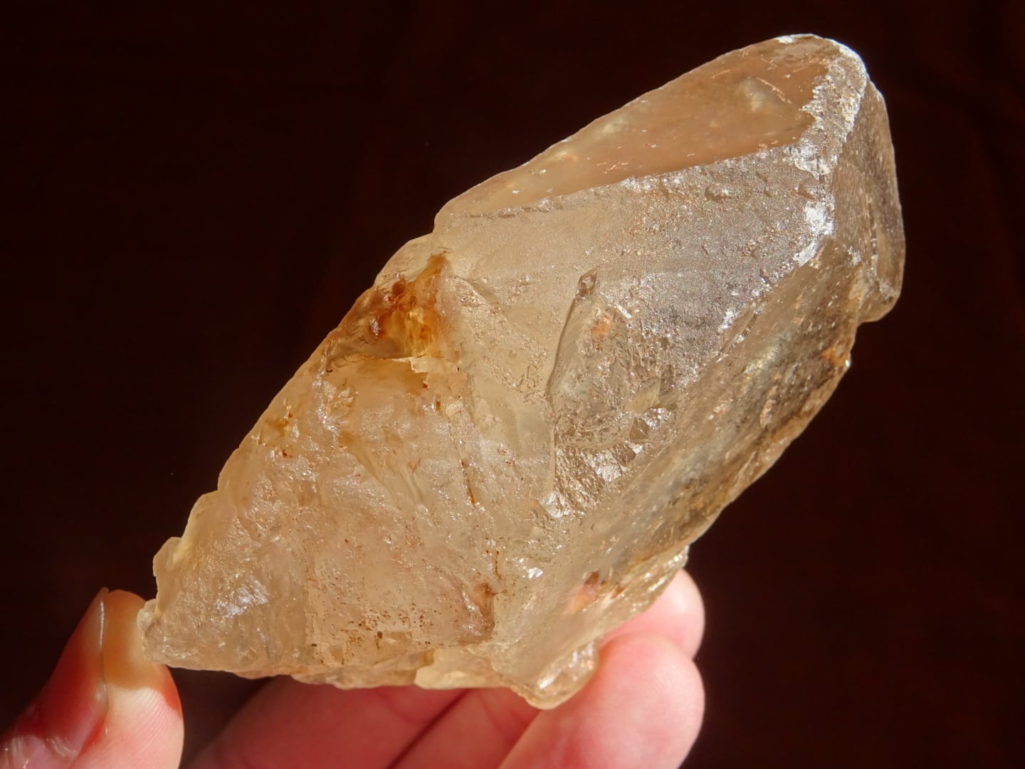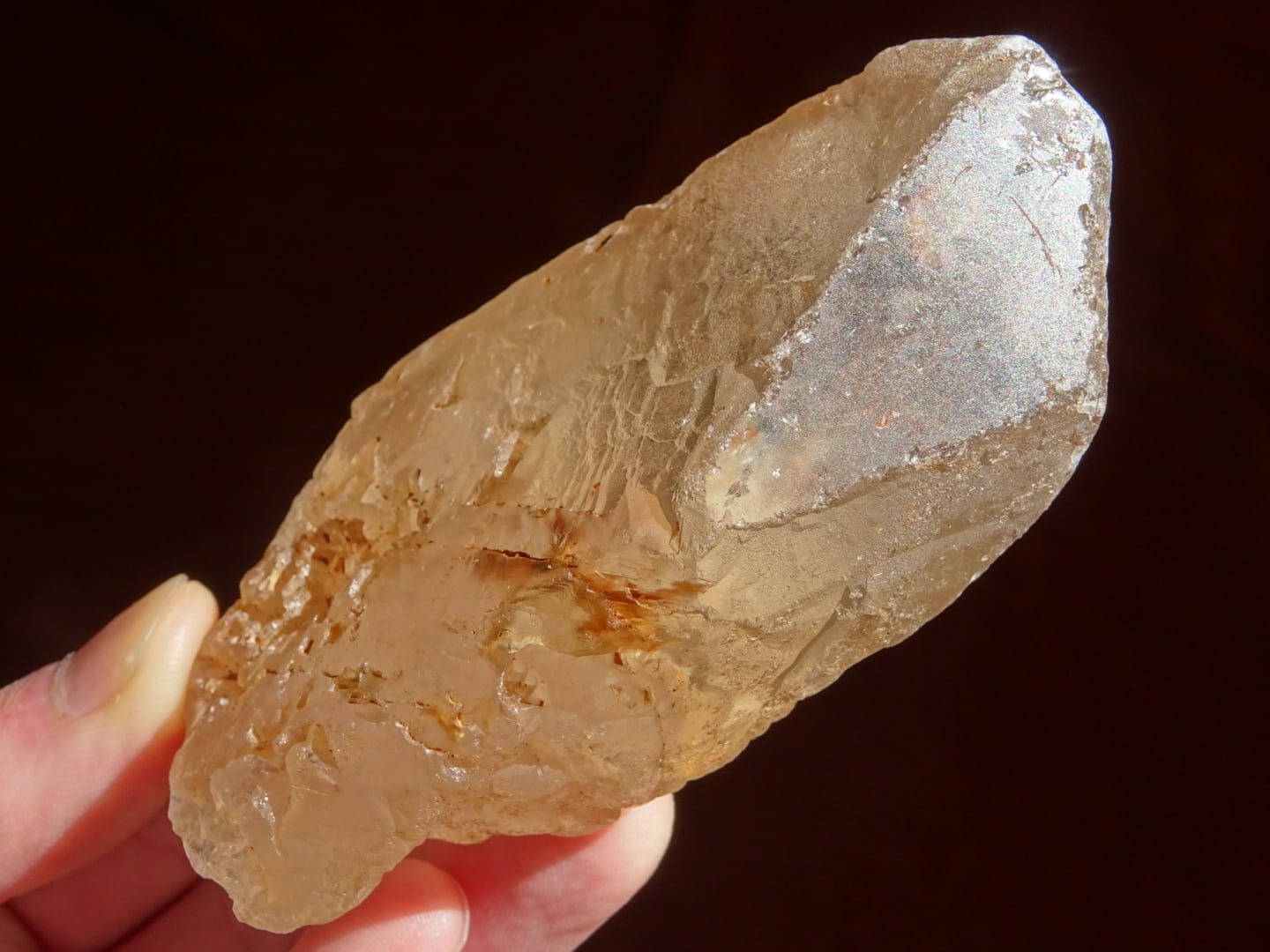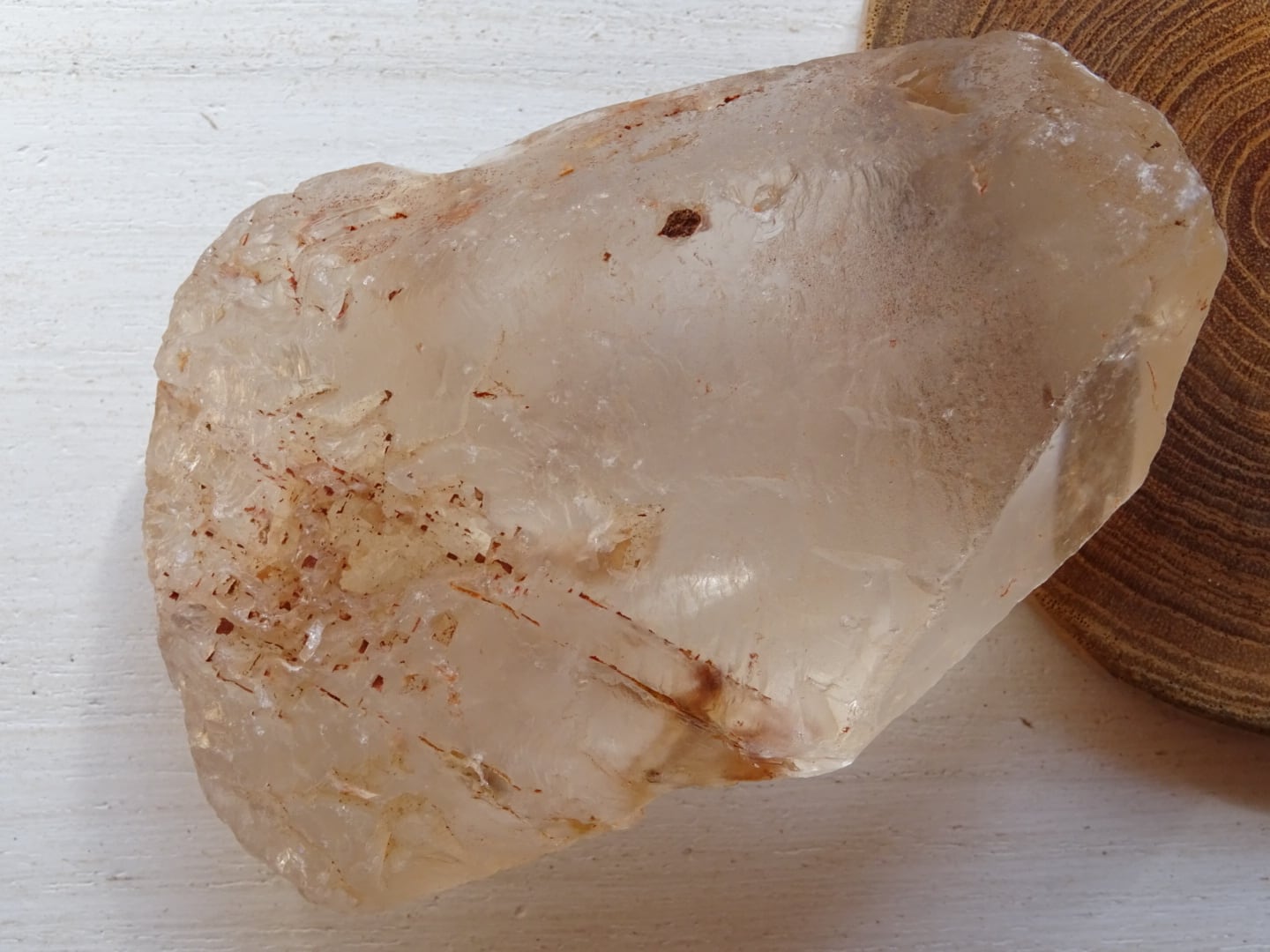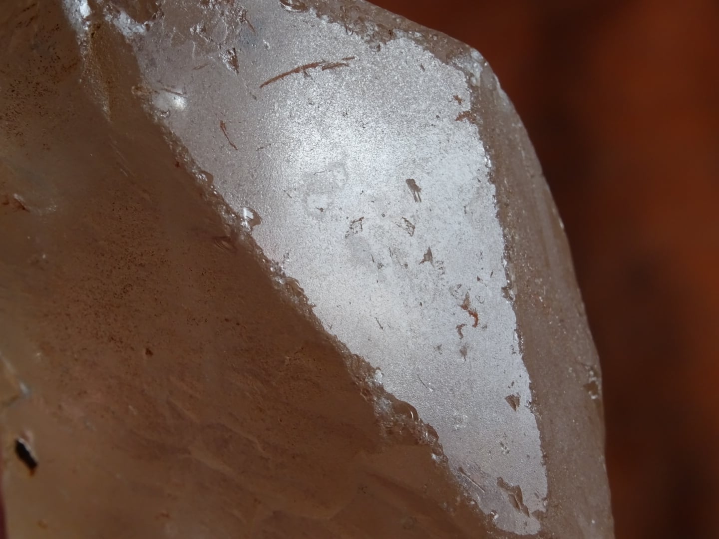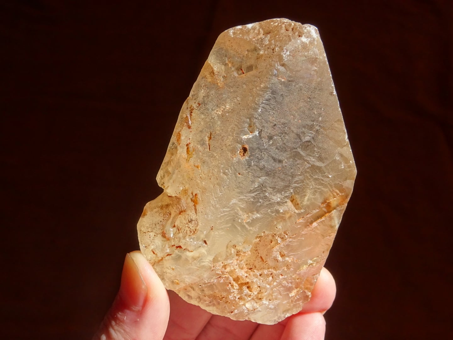また、板状になっている広い柱面のひとつは透明感があるのですが、そこから覗ける水晶の内側は、やさしい雲のようなインクルージョンが横たわっていて。