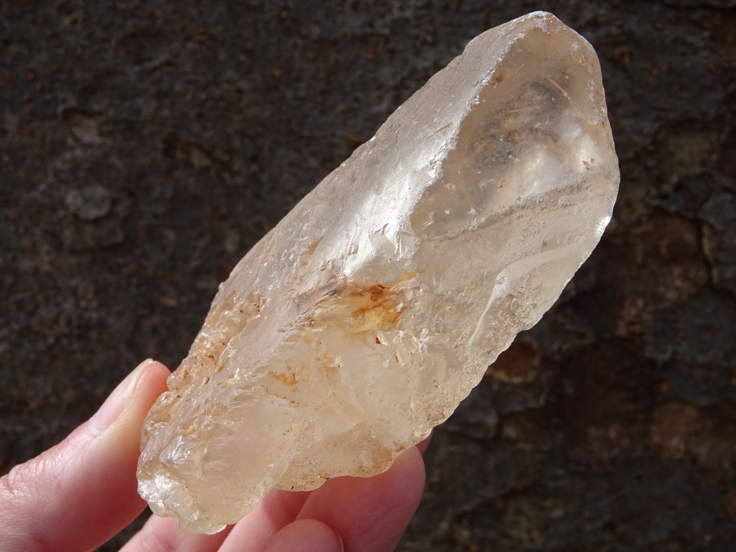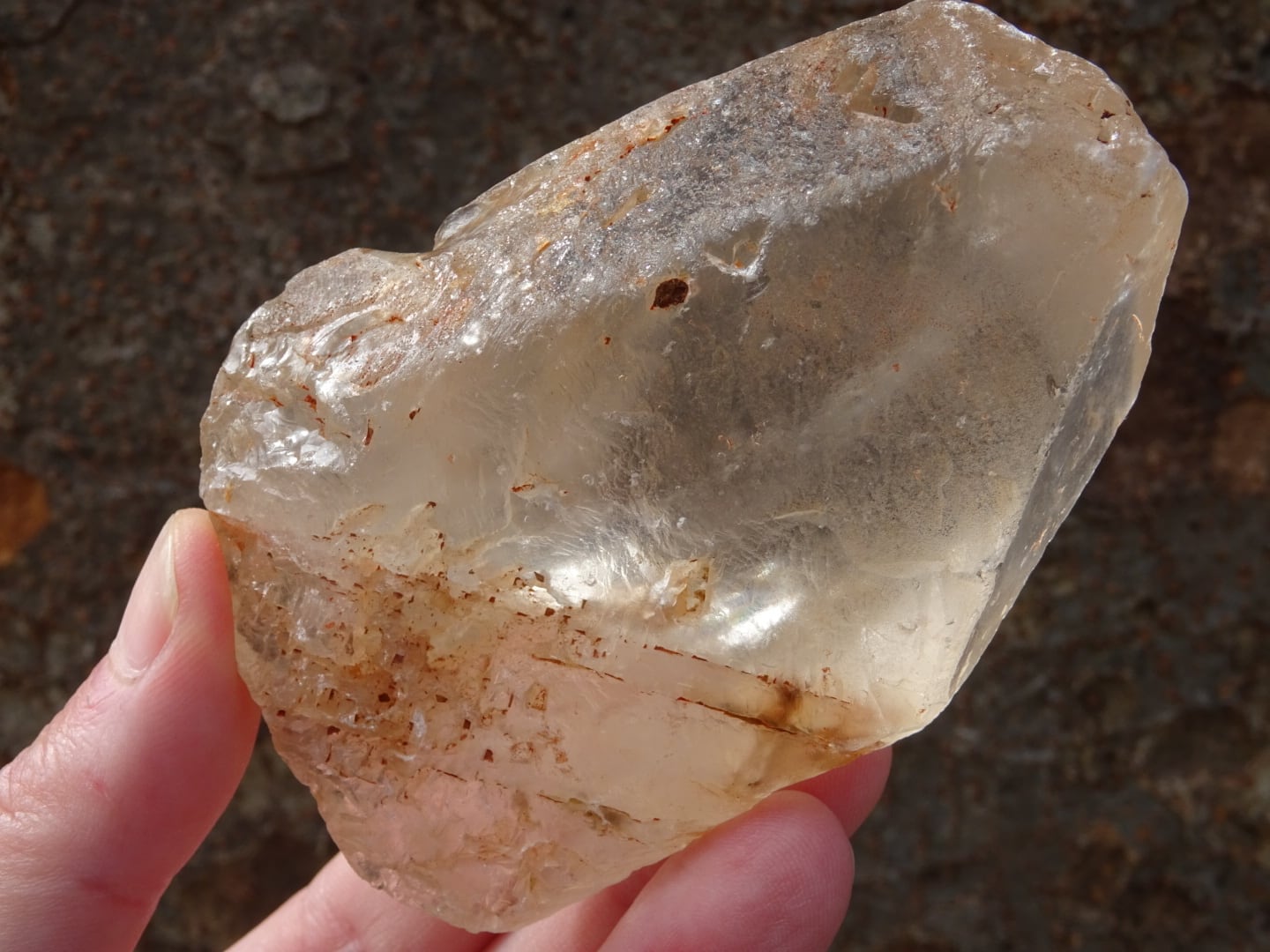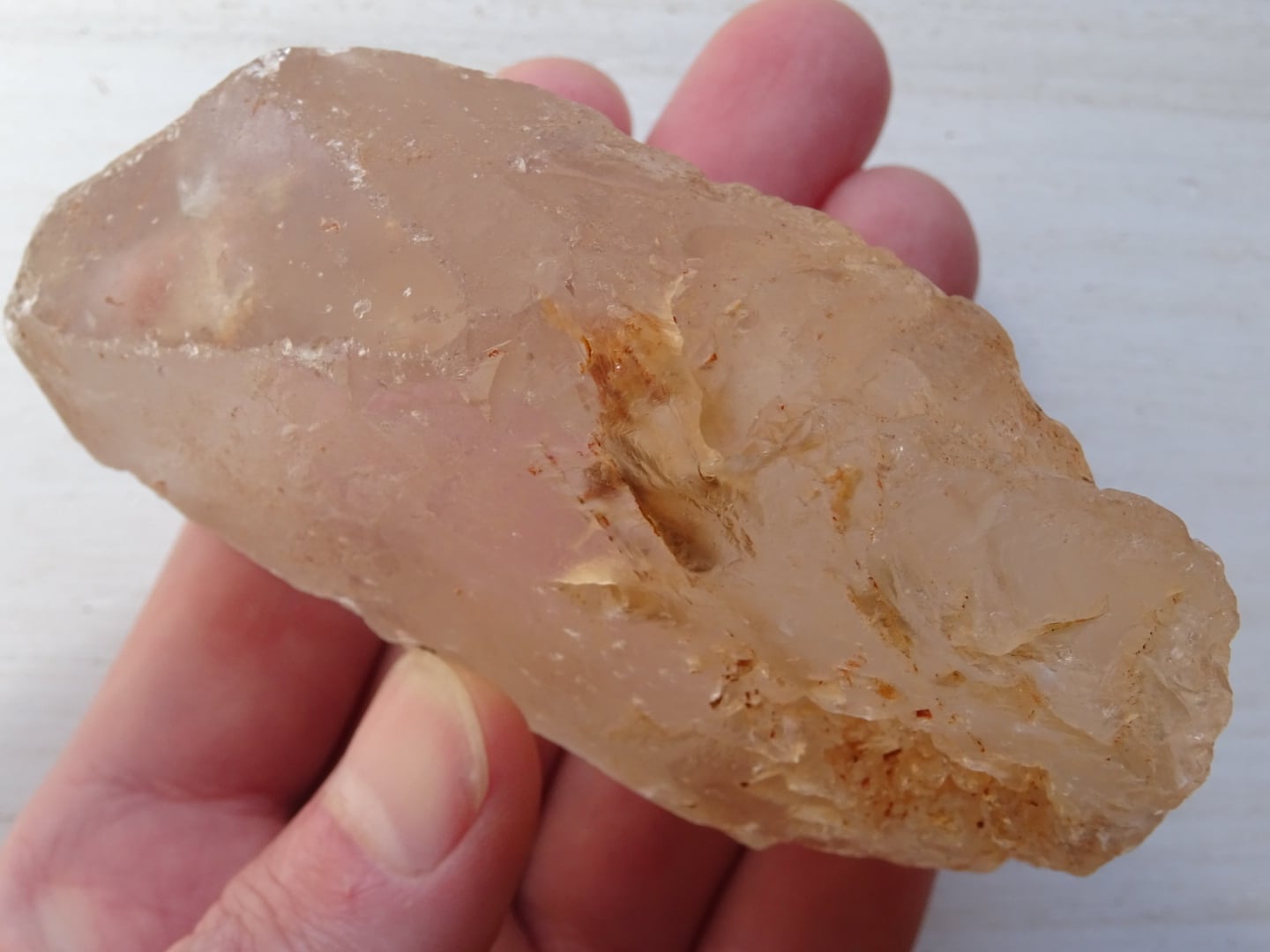 鉄の恵みをうけた、大地母神のような淡いピンククリスタル。
