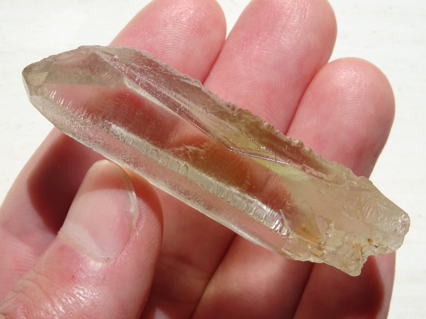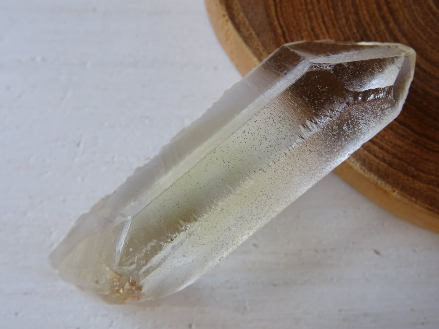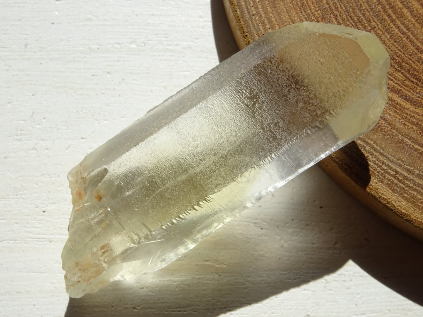 水晶の全体が色付いているというよりも、みんな根本の方からほんのりとイエローになっている、という印象です。
