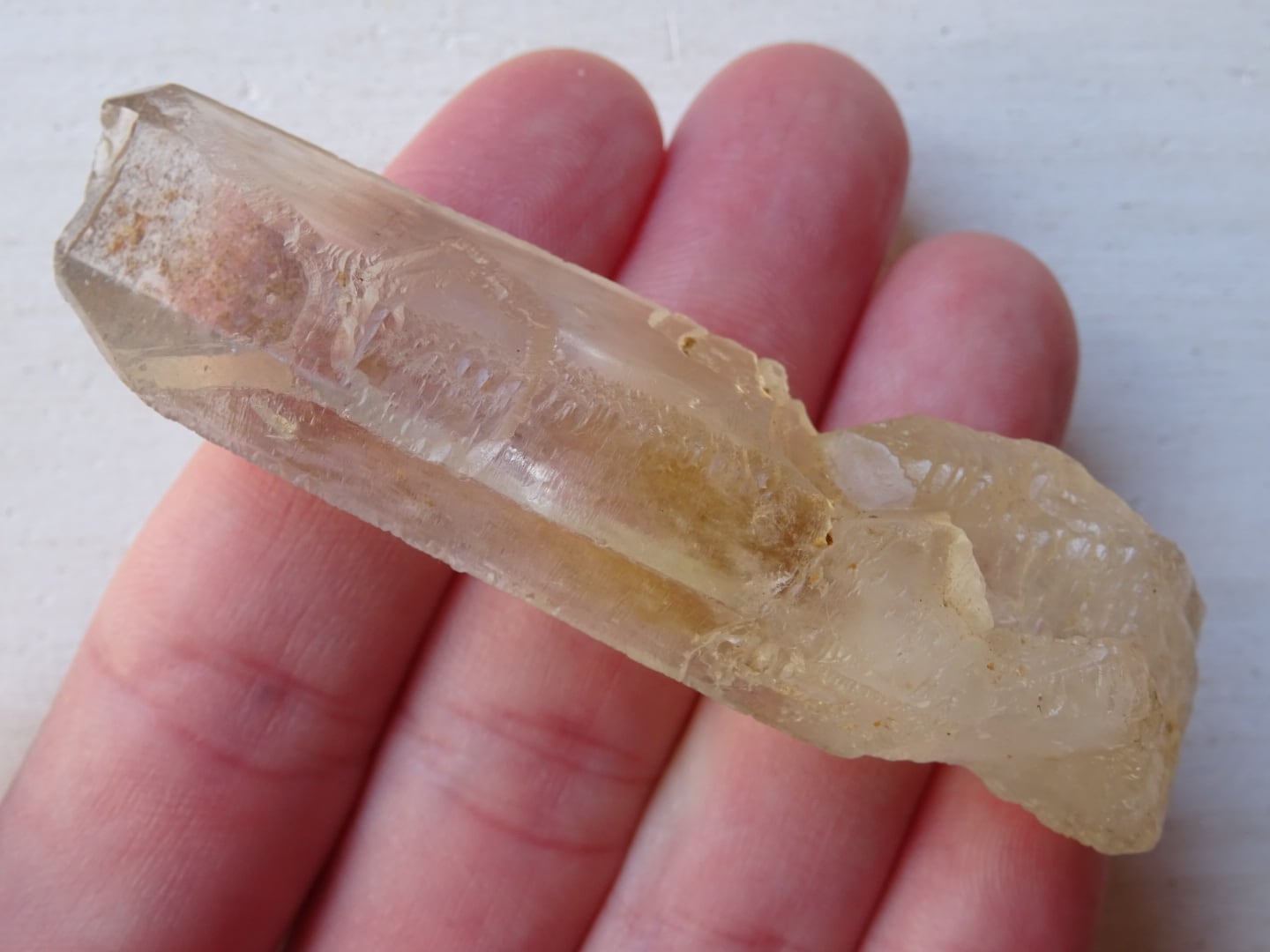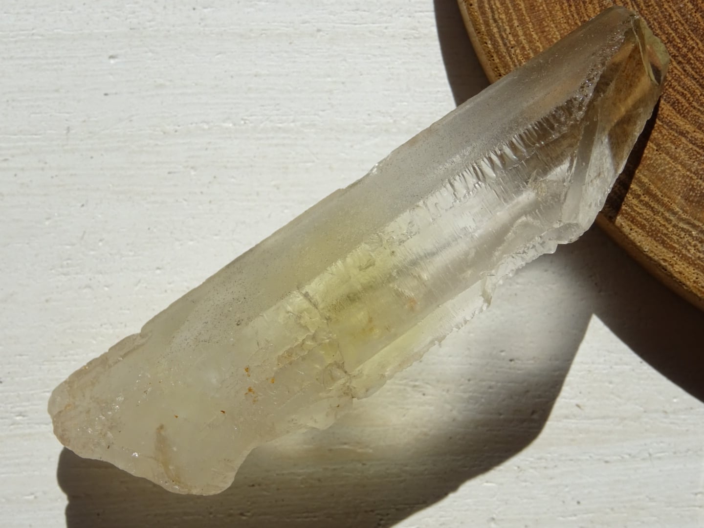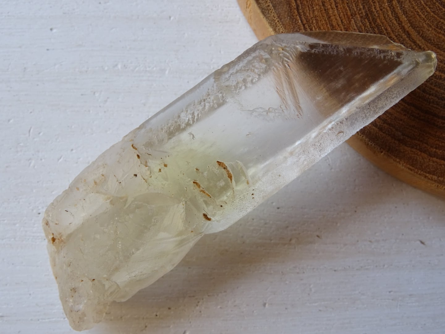 水晶の全体が色付いているというよりも、みんな根本の方からほんのりとイエローになっている、という印象です。