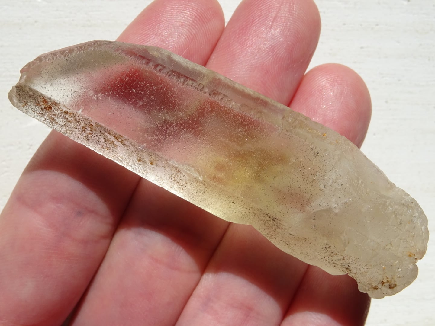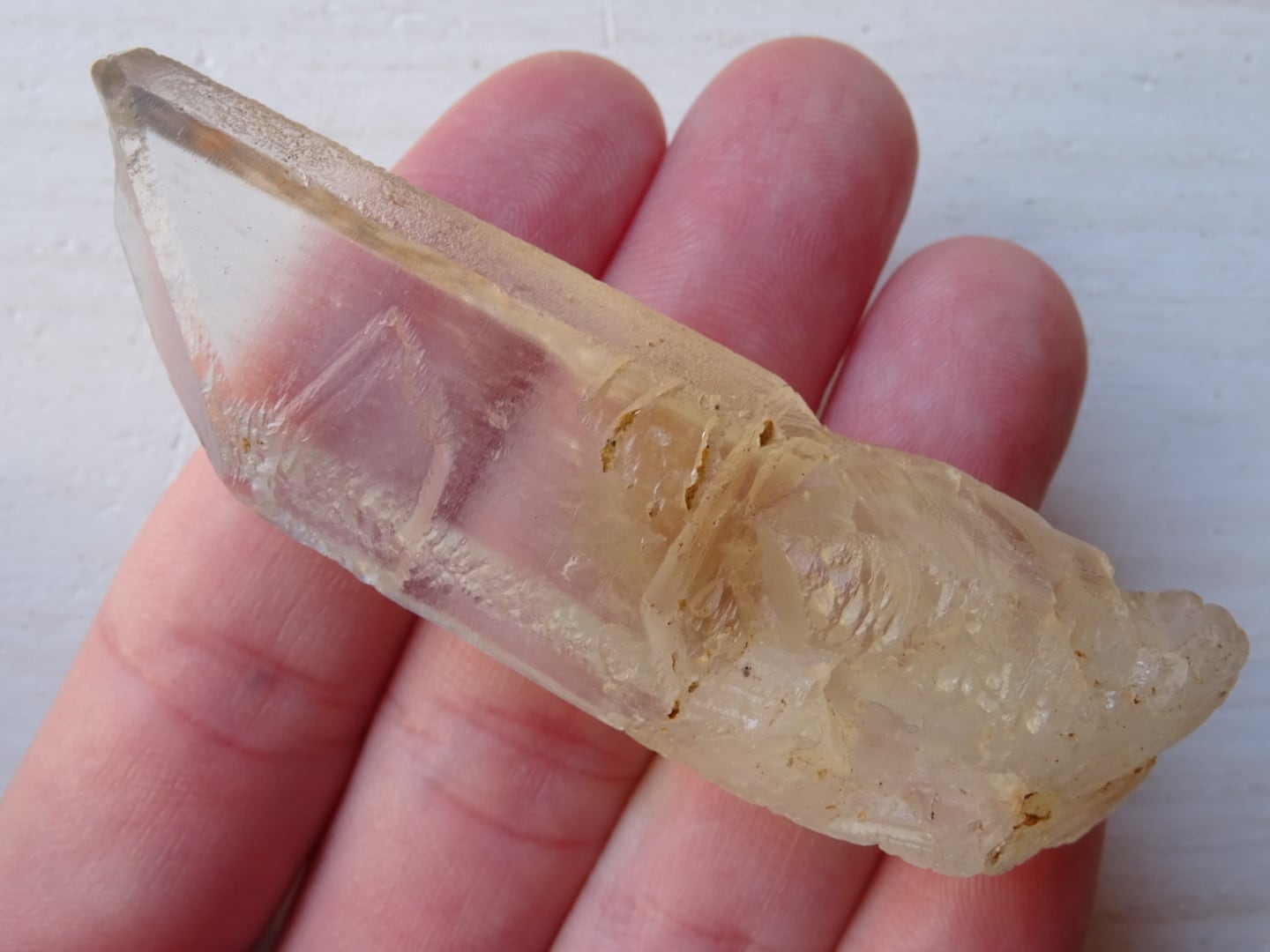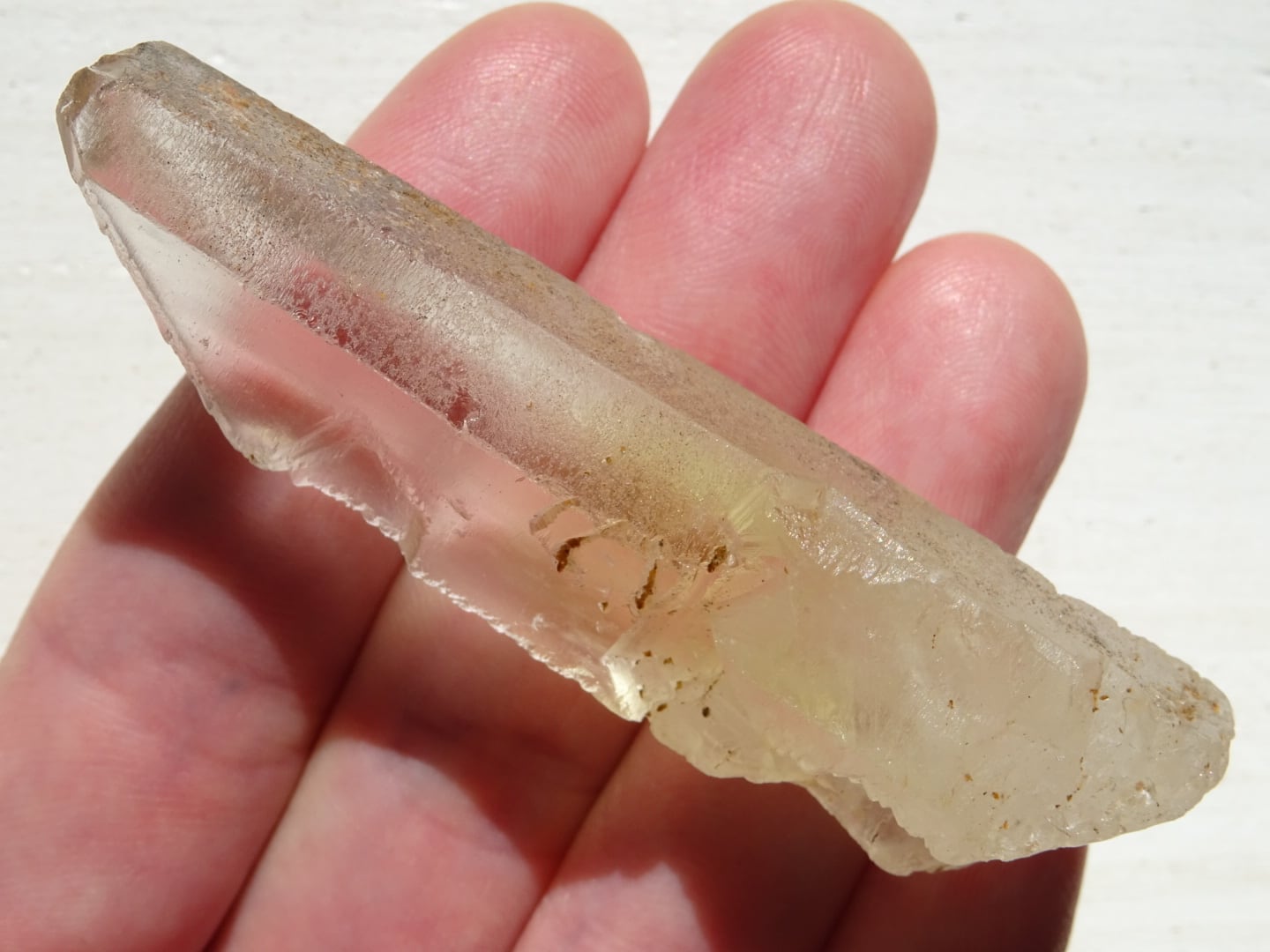水晶の全体が色付いているというよりも、みんな根本の方からほんのりとイエローになっている、という印象です。