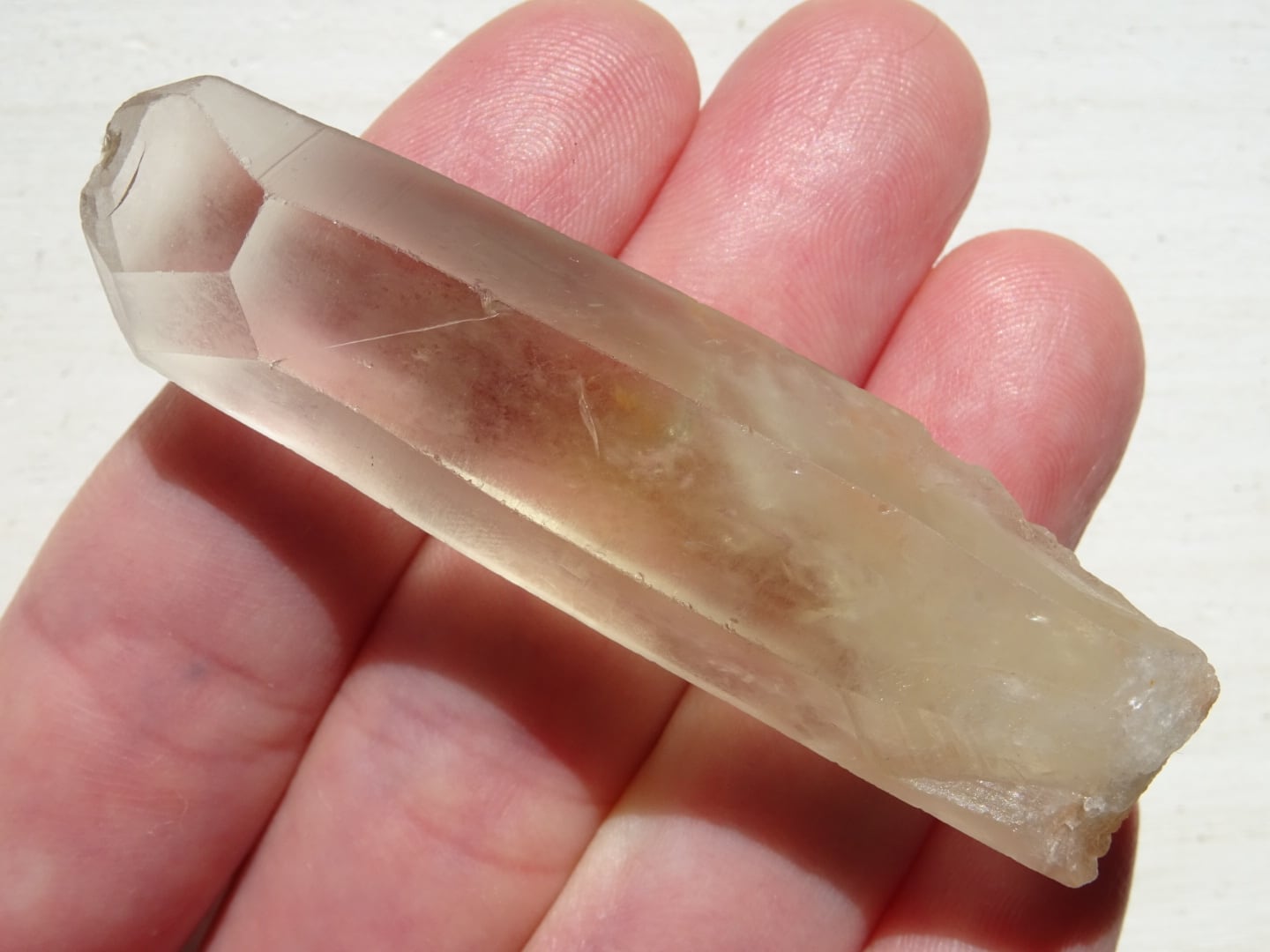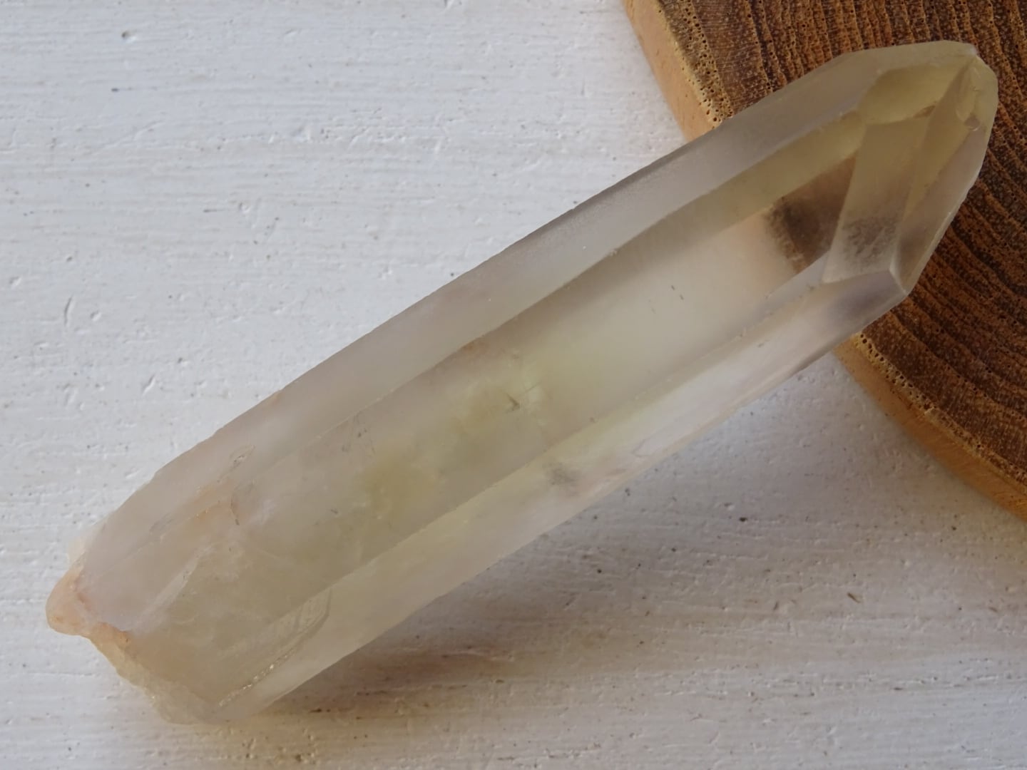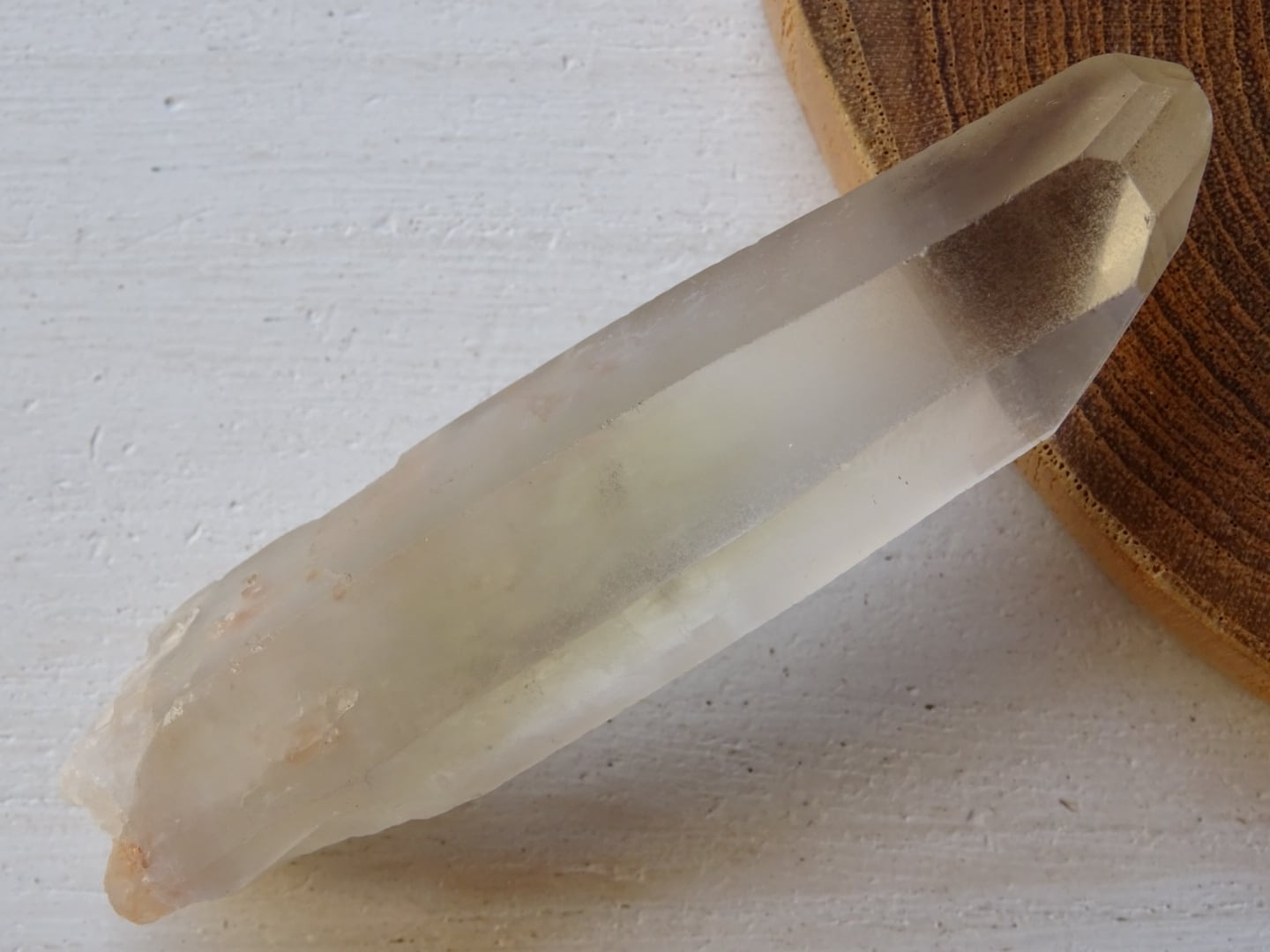 水晶の全体が色付いているというよりも、みんな根本の方からほんのりとイエローになっている、という印象です。