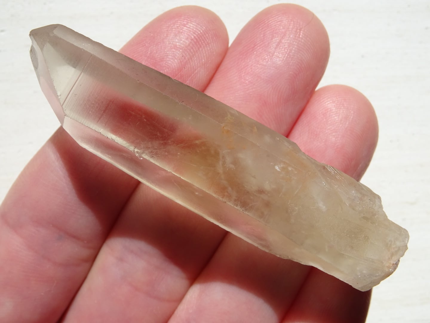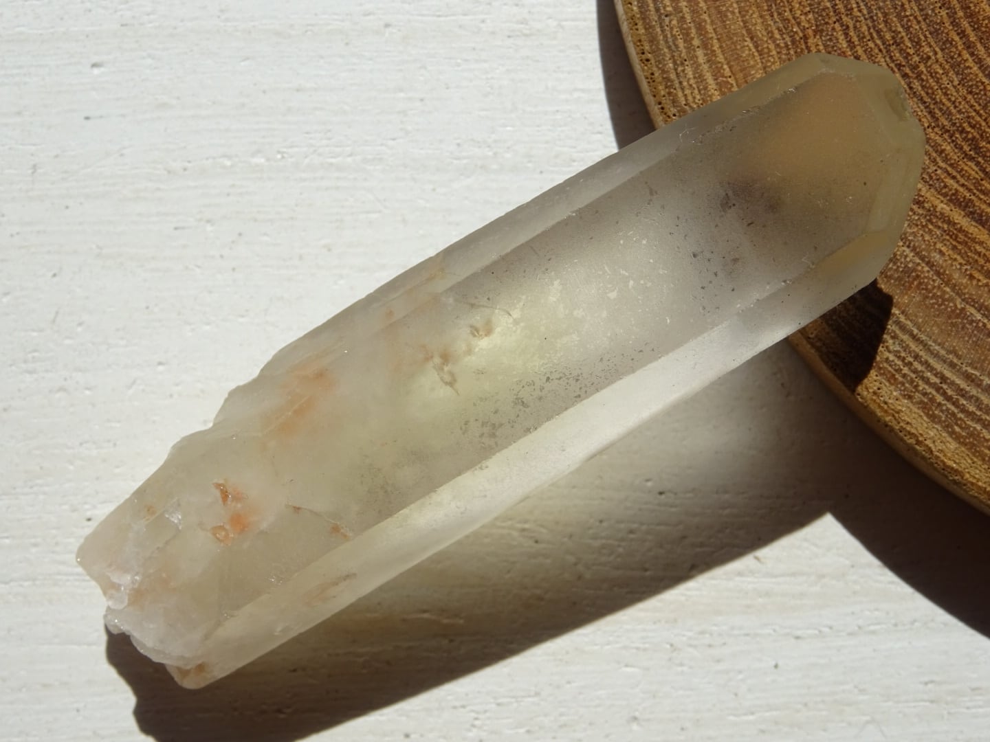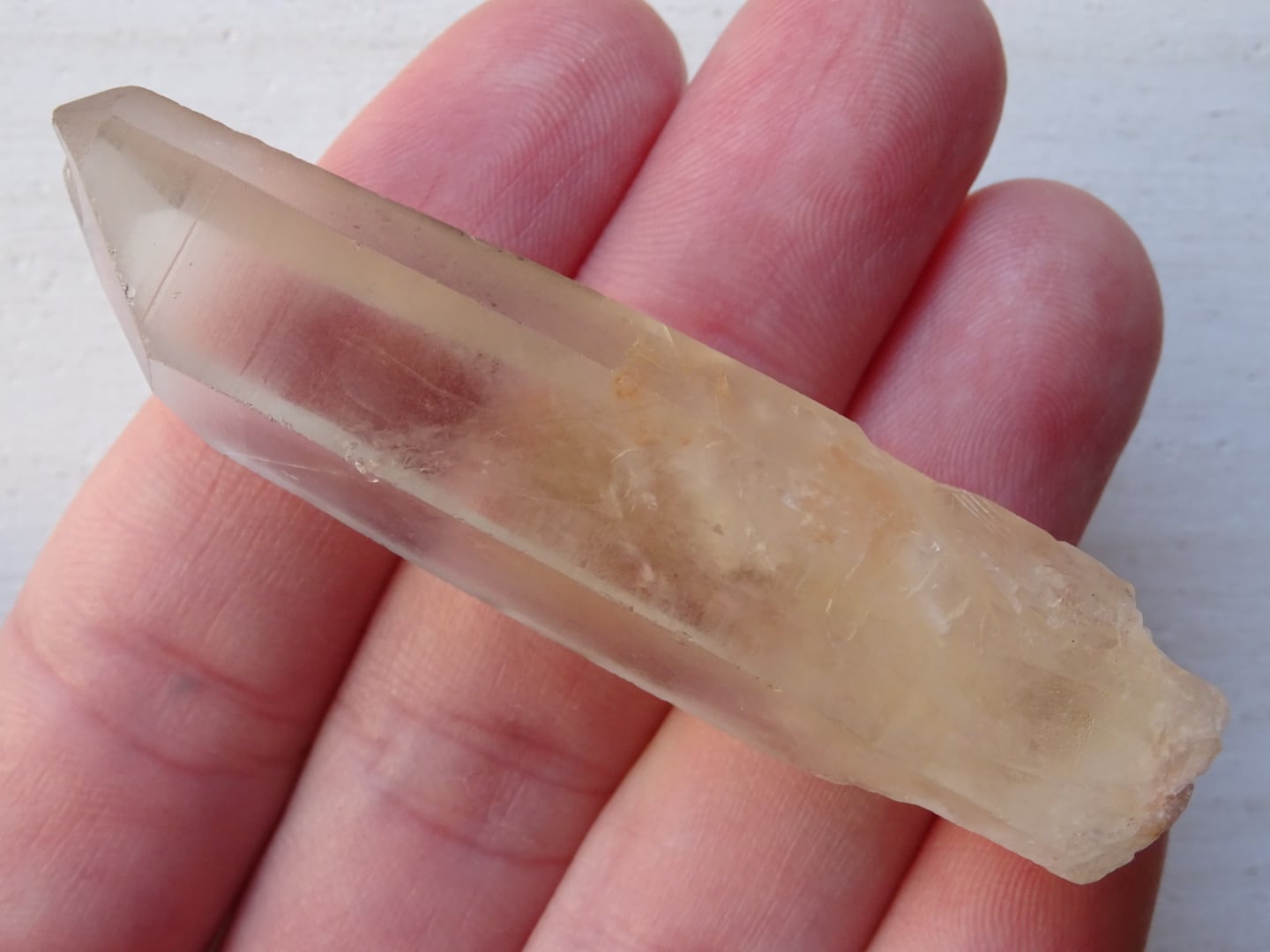 水晶の全体が色付いているというよりも、みんな根本の方からほんのりとイエローになっている、という印象です。