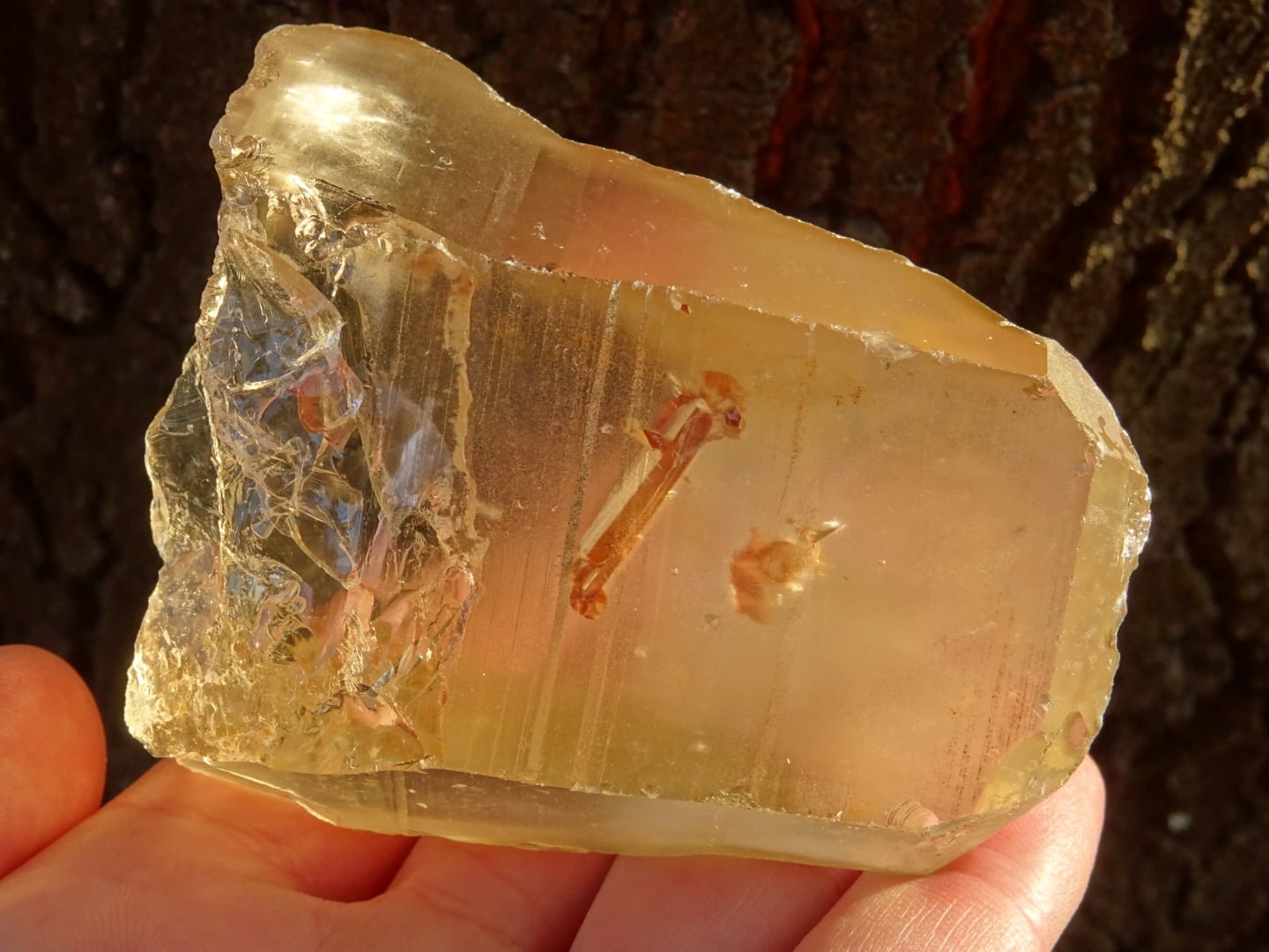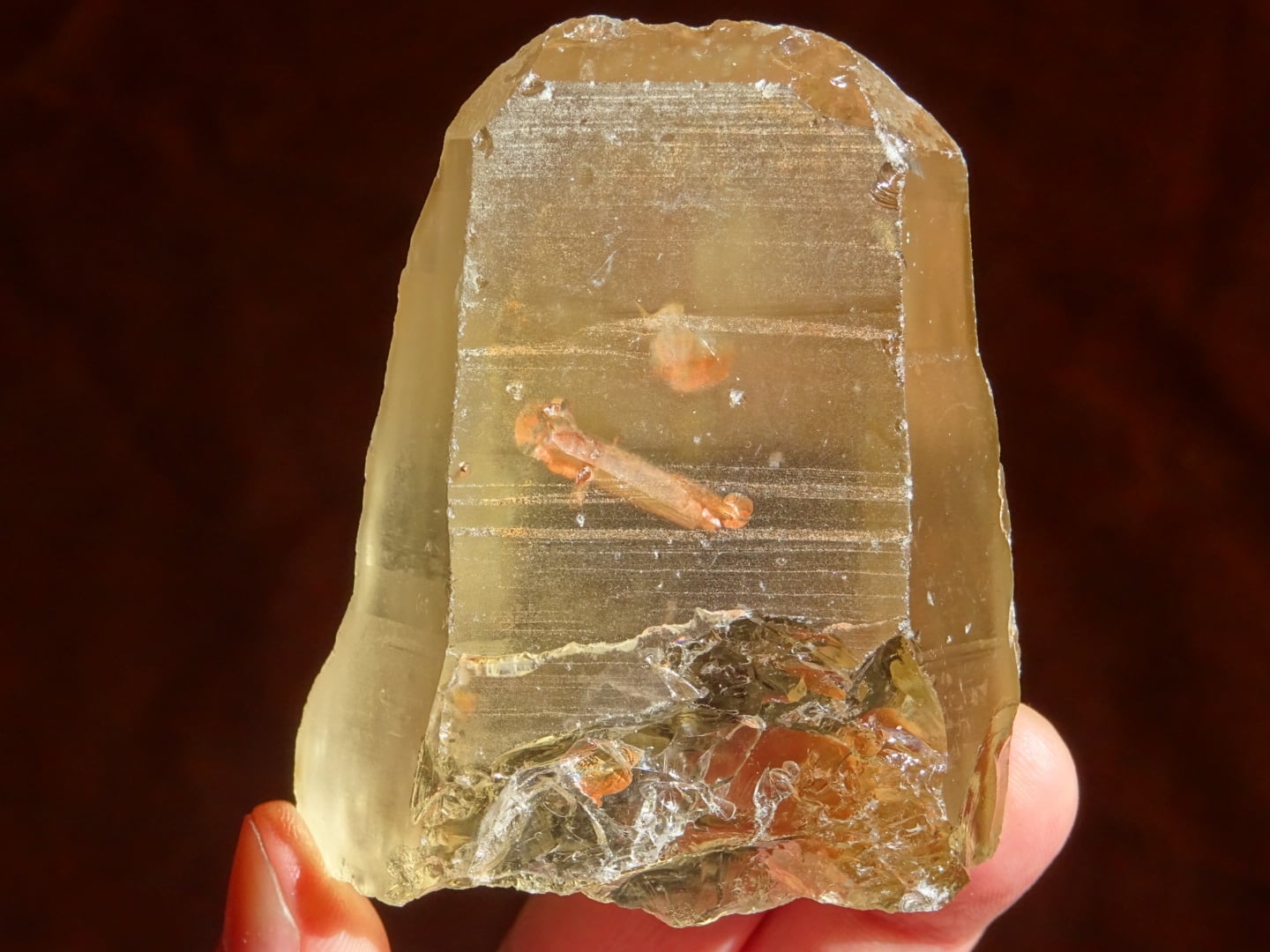 シトリンとしての色合いも比較的よく出ているのですが、ユニークなのは、背面にクッキリと内包された小さなクォーツinクォーツです。