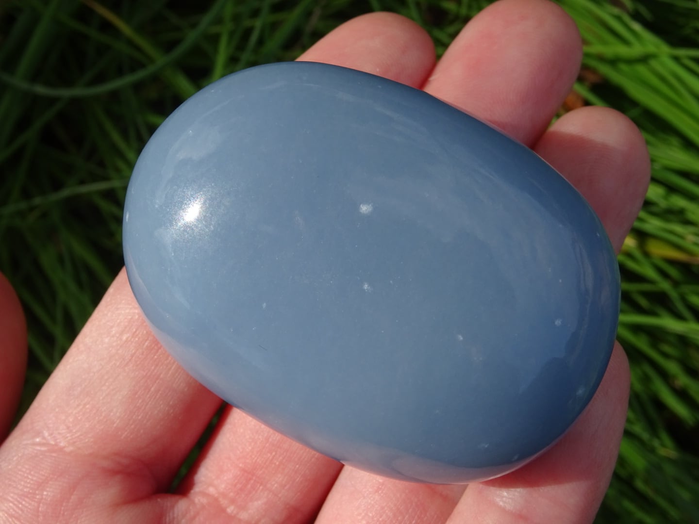 セレスタイトと同じくストロンチウム由来で青色になっているのですが、もともとが石膏の仲間であるためか、やはりとってもやわらかで女性性的な魅力がありますね。