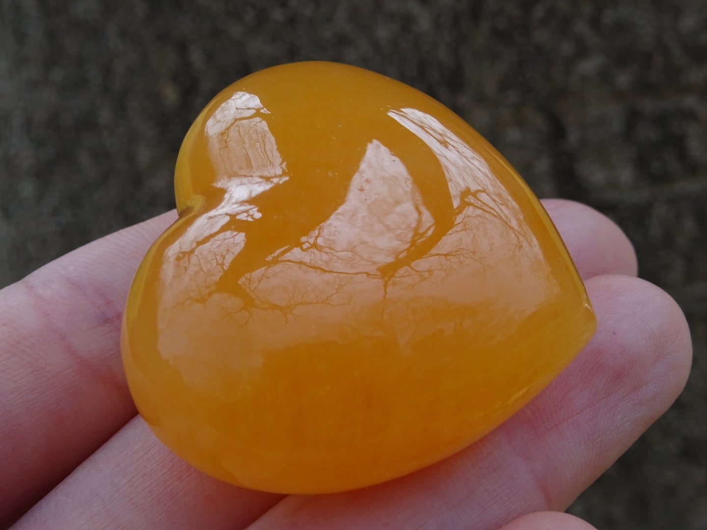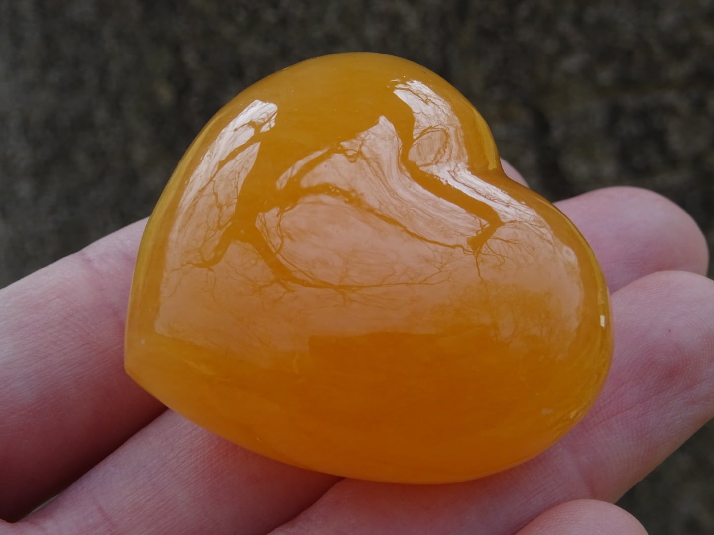 オレンジカルサイトの可愛いハート磨き石。
