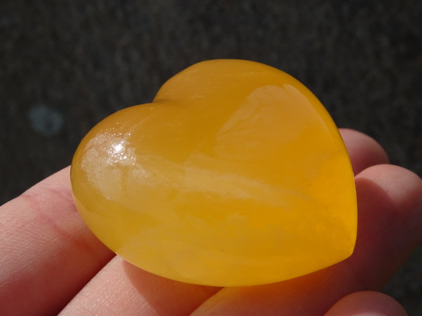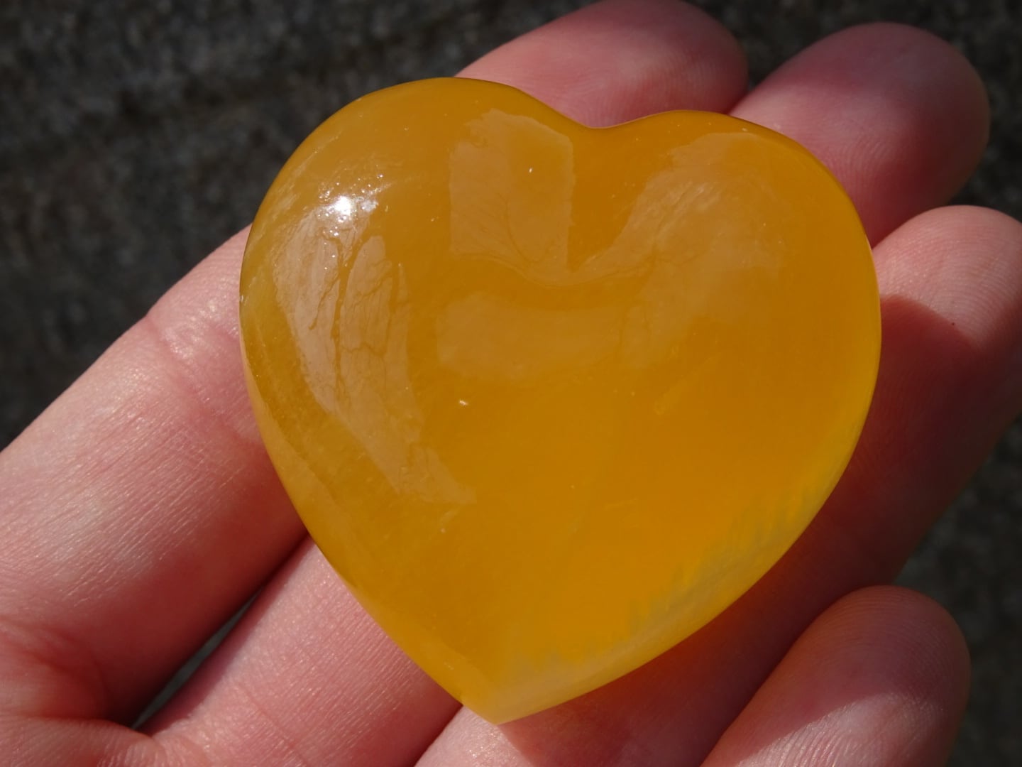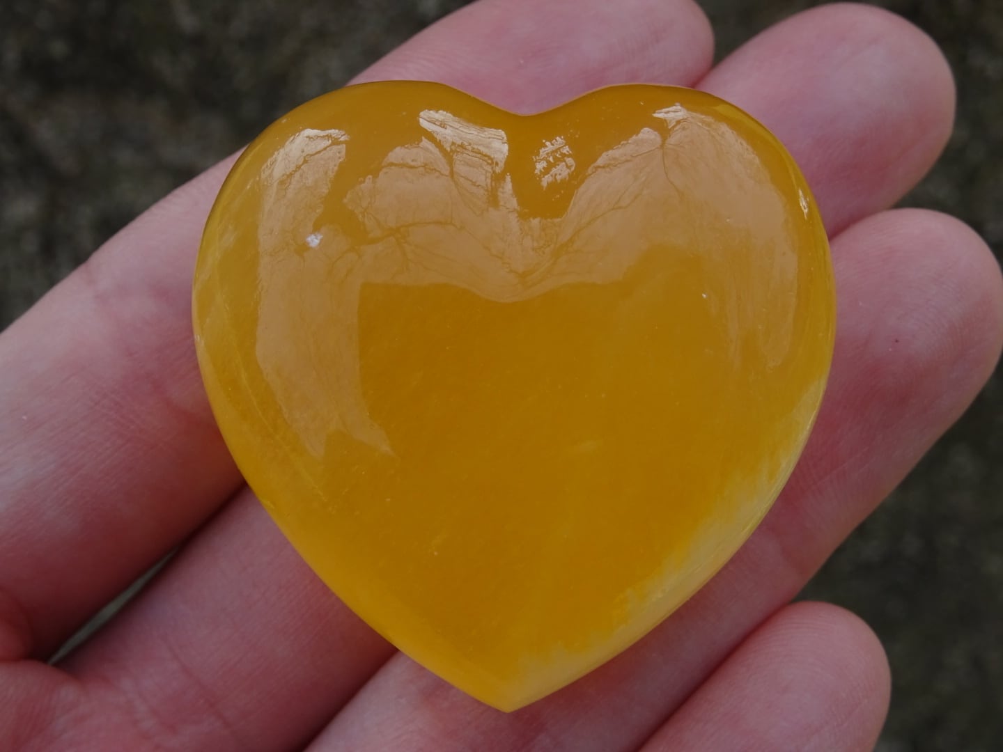 オレンジカルサイトの可愛いハート磨き石。
