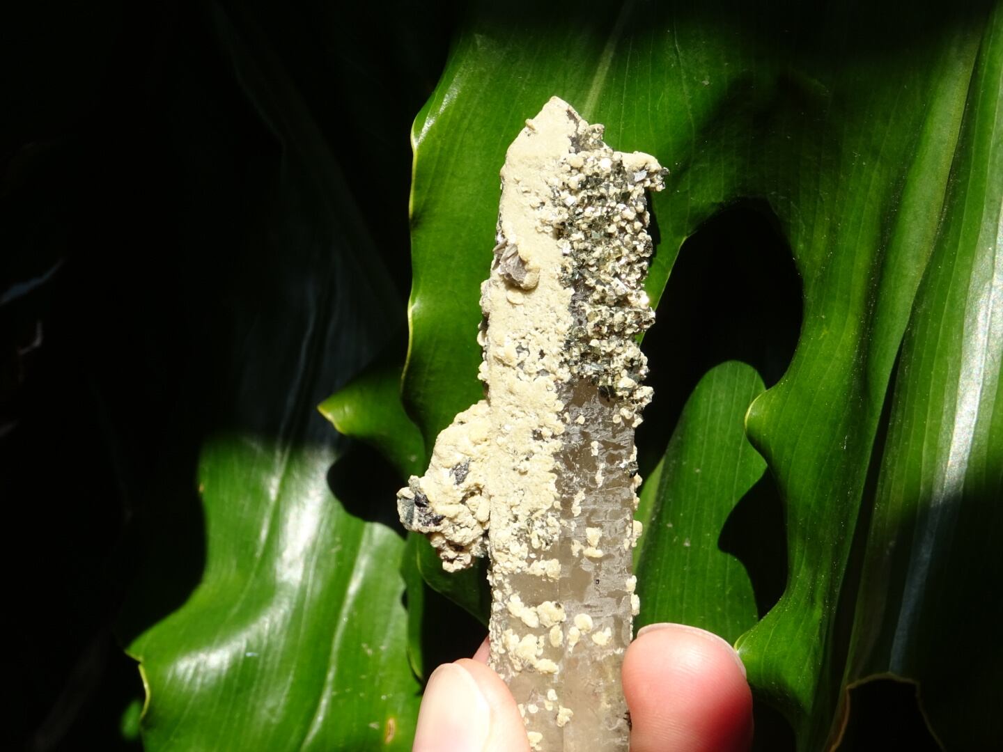 こちらもほとんど植物のような、石と樹木がコラボしたような姿でとても素敵です。クリスタルは根元から見る限りクリアでフォルムも整っているのですが、それを苗床として贅沢にパイライトとシデライトたちが育っています(笑)
