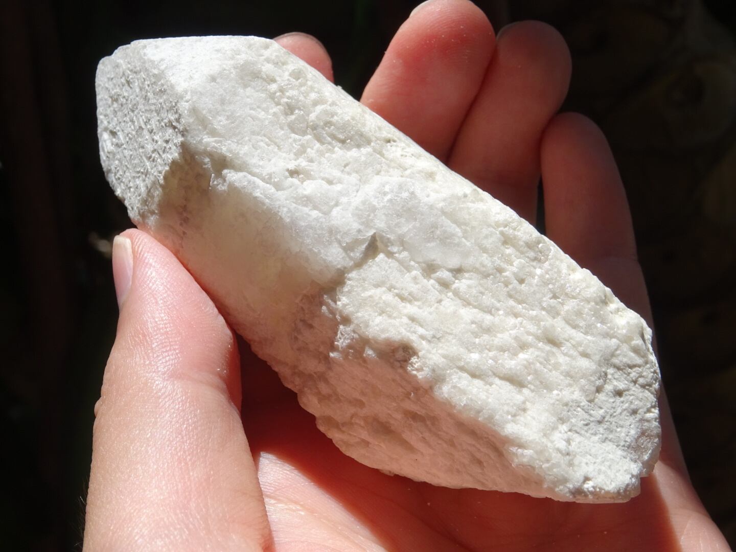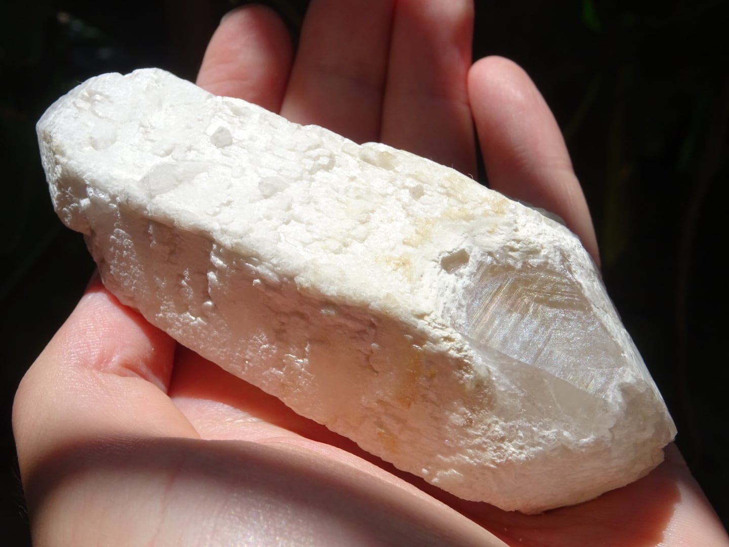 (すみません、写真を撮るのを忘れていました…主に根元の底部、そして片面に非常に細かく再結晶した3角の結晶たちがたくさん見られます)
