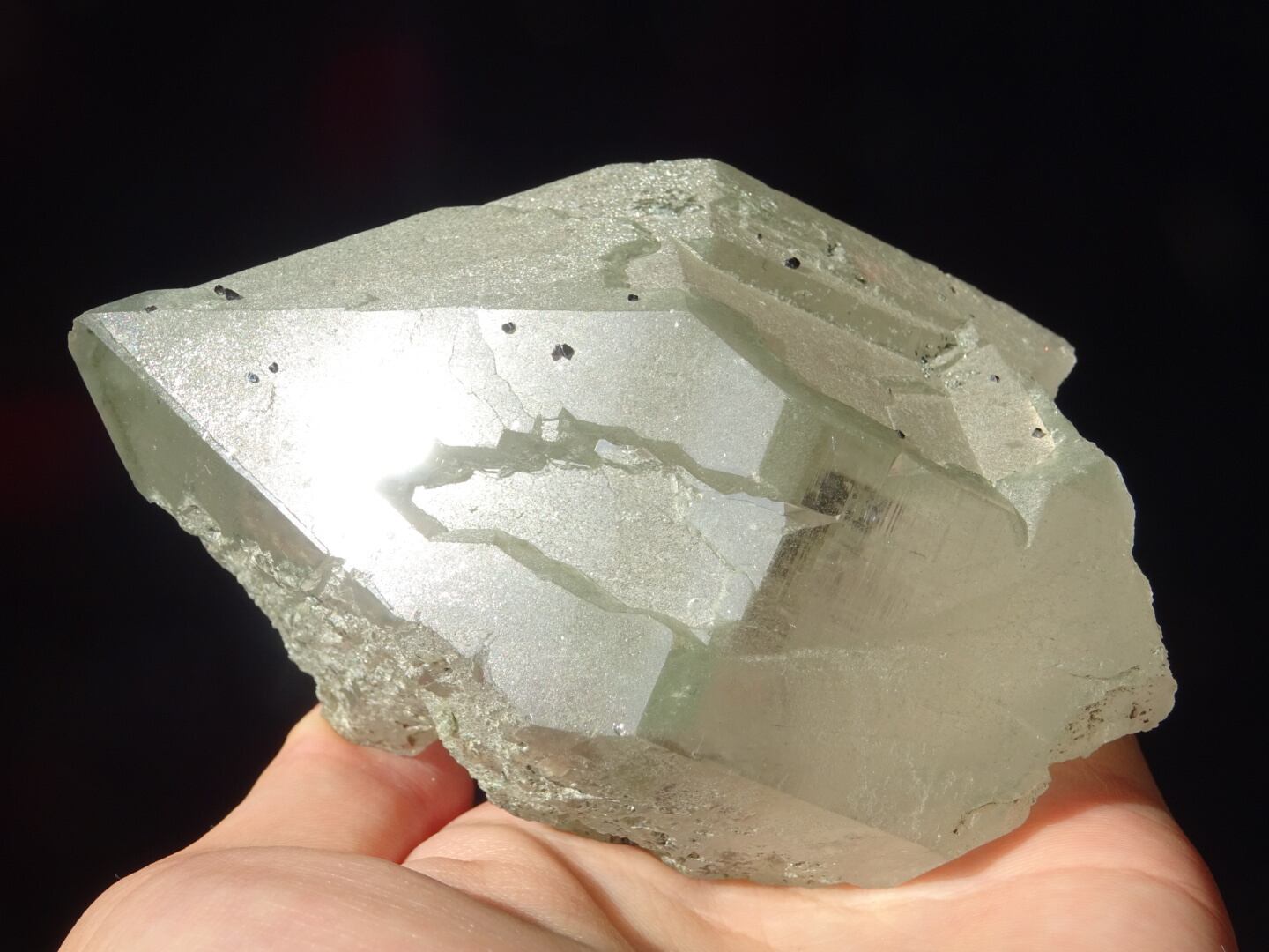 ただ、一般的なスケルタルやエレスチャルのように層状になっていたり連晶している訳ではなく、さらにはそれを裏返すように、強い光で照らすと内部にうっすらとした幻影のように「ファントム」がうかがえます。つまり、何度か成長を止めてから、再び成長を始めたようです。