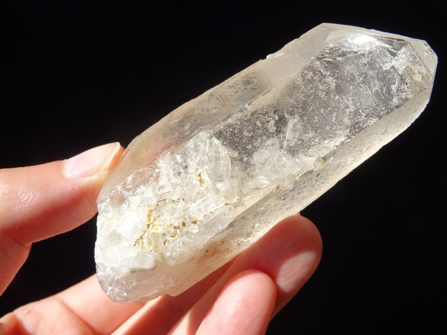 たまに書きますが、「古いレムリアの古書のような」雰囲気のこちらの石。くぐもっていたり欠けていたりする姿が何とも古めかしく素敵に感じてお迎えしました。どこかの不思議な骨董品屋の奥で西陽に照らされながら、埃をかぶって持ち主を待っていそうな(?)そんな雰囲気です。