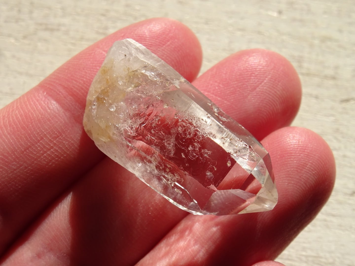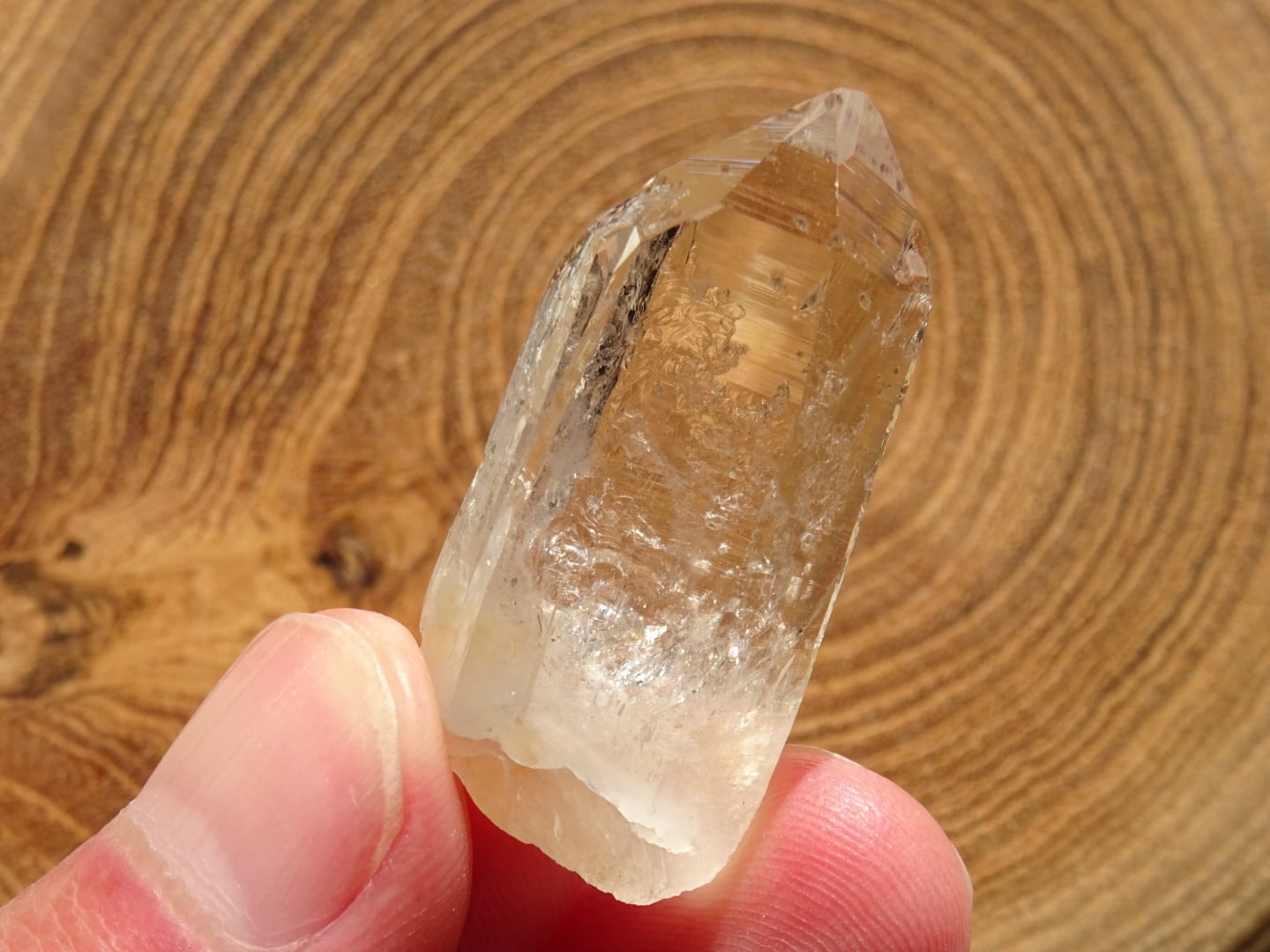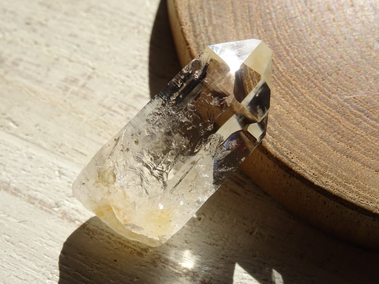 トップの一部に僅かなカケがある以外ファセットはノーダメージ。柱面の一部分のみ小さなカテドラルになっています。根元の成分でややゴールドがかっている部分も。