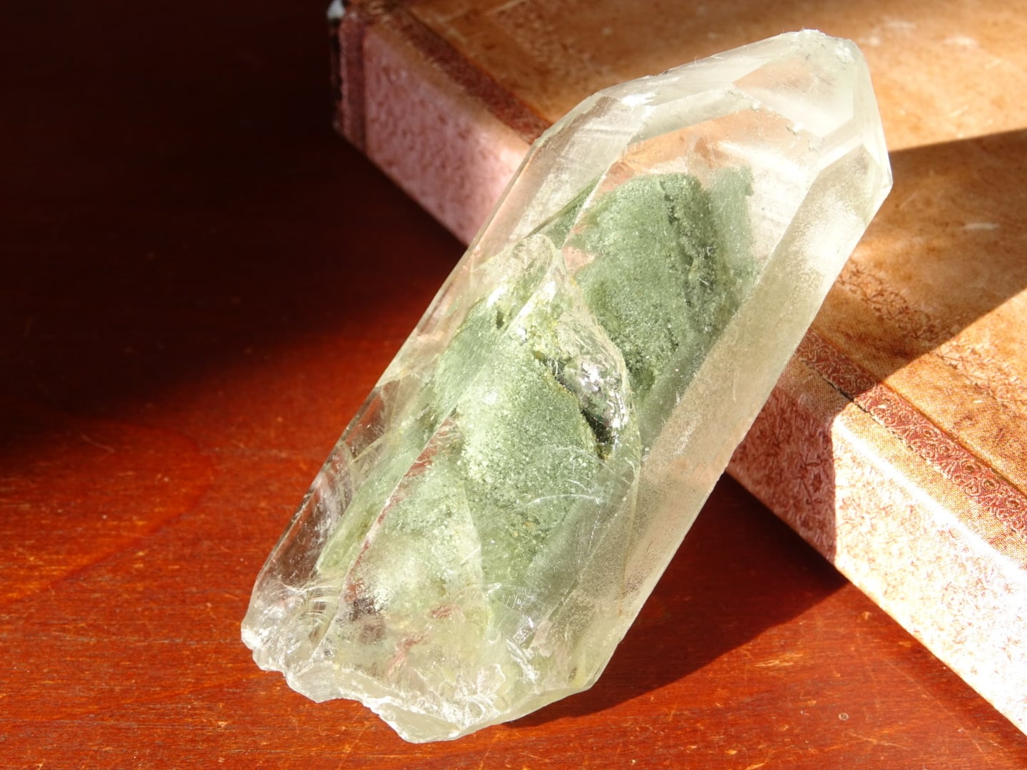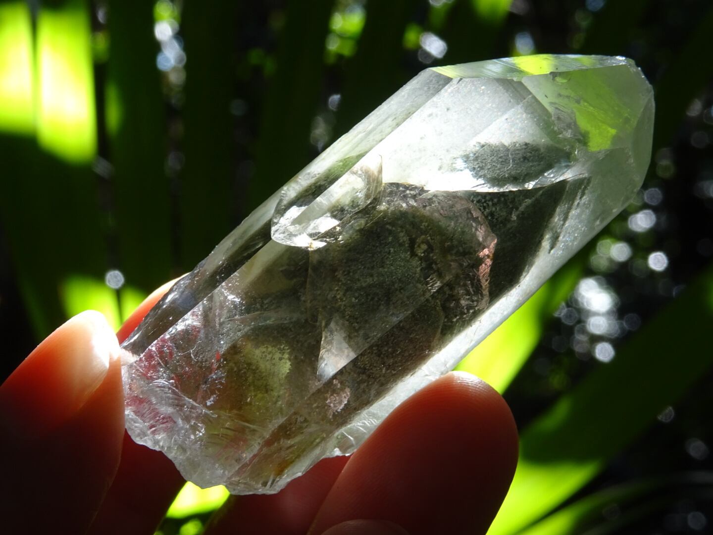 クリスタルの結晶に近いカタチにクローライト(緑泥石)を閉じ込めた、美しいグリーンファントム。