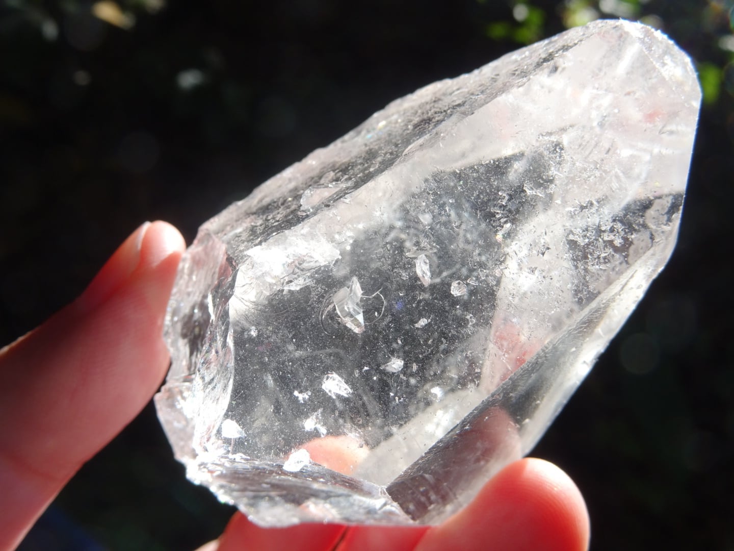 天然のカケ、蝕像や、小さな結晶によりフォトではクリアさがなかなかお伝えしきれませんが、実物はピュアレイらしい銀色がかった輝きが美しく、サイズもあり根元までクリアな逸品です。
