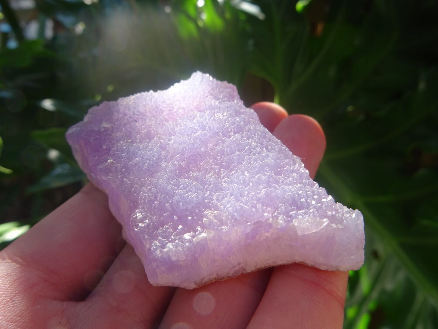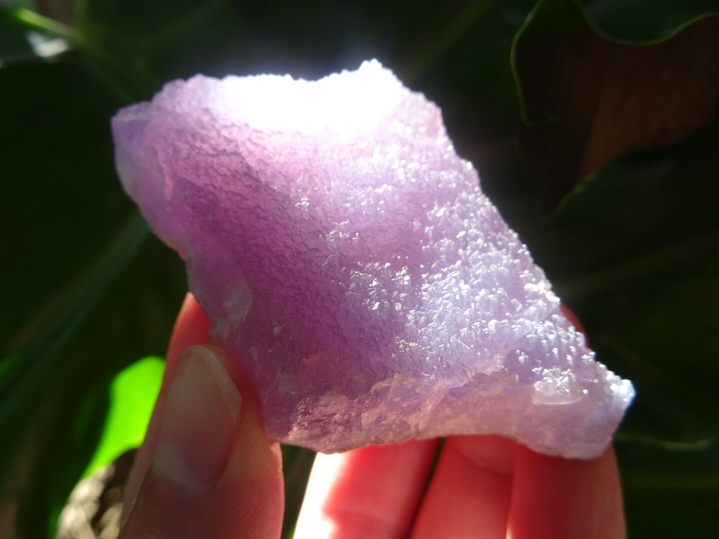 淡いライラック~ラベンダーが綺麗な1点。明るい場所ではライラックに、暗い場所ではより深いラベンダー色に見えます。細かにザクザクと結晶している姿が美しく、絵になるアメジストの逸品。