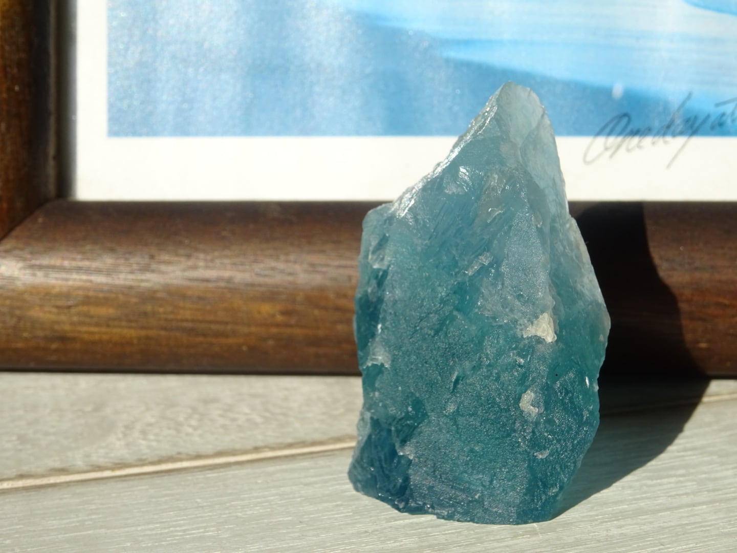 爽やかな海洋や深い湖を想わせるブルーグリーンが美しい、ブラックフォレストのフローライト。光彩によって表情豊かな青~緑色の濃淡を見せてくれます。サイズも程よく、自立するフォルムも美しく絵になる逸品。