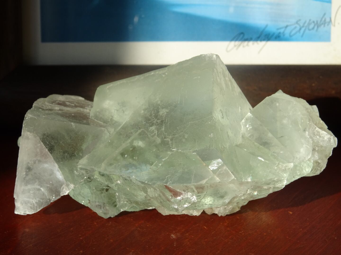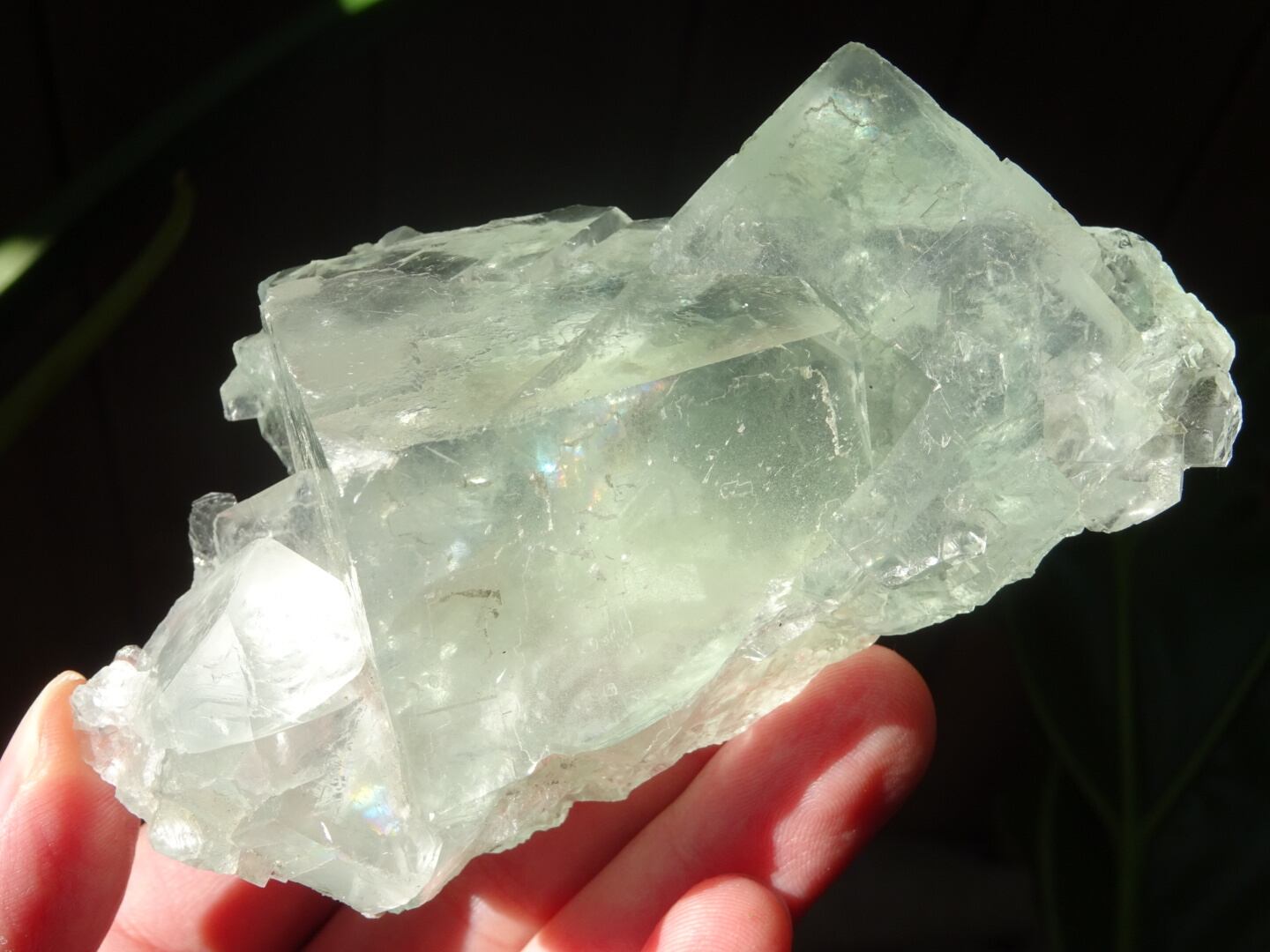 もうこの石とは2年ほどのお付き合いになるでしょうか。夏ごろにお迎えしたのを覚えているのですが、しっかりとしたグリーンの結晶と浮かぶ虹たちに惚れこんでお迎えしたグリーンフローライトのクラスター。