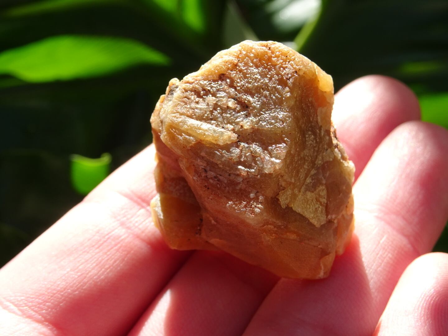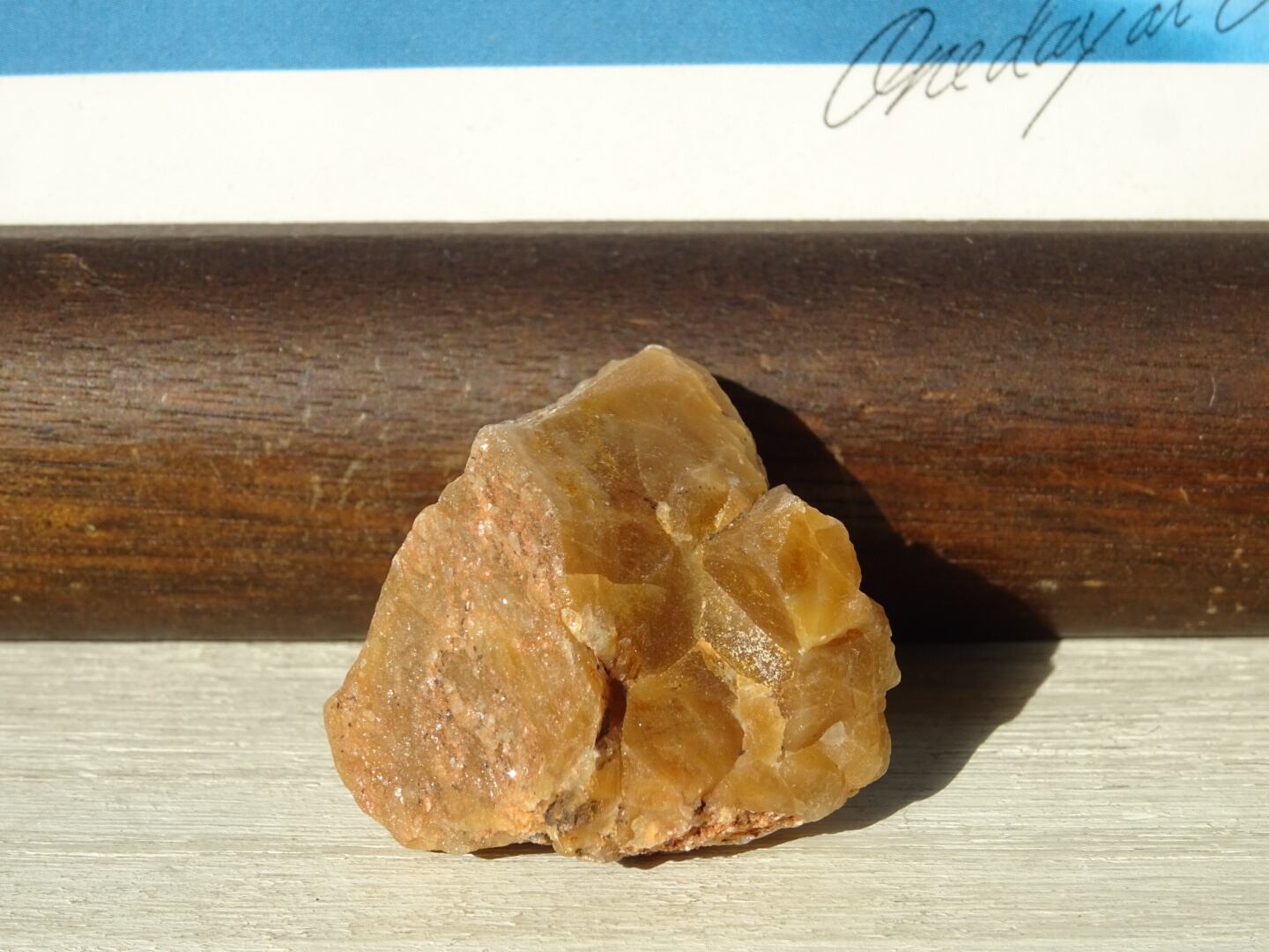 濃厚なキャラメルカラーのゴールデンザギマウンテン。たいらな部分は光の反射できらきらと輝き、背面は内包物によってところどころオレンジ色に染まっています。アンフィボールなどが沁みこんだ、ザギらしい色合いがよく出ている一点。