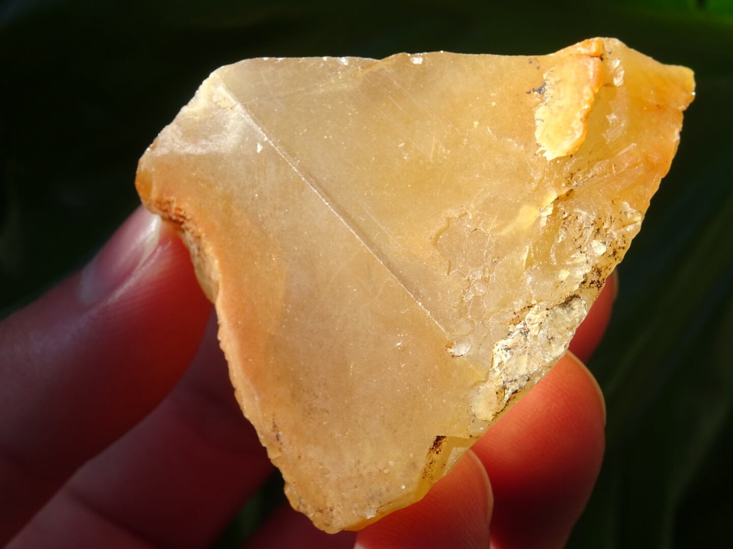 アンフィボールなどがたっぷり濃厚に沁みこんでいそうな、素敵な色合いをしたこちら。オレンジレッドの色合いがなんとも言えず美しいです。色の濃淡も、おむすびのような三角形のフォルムも、内包されたルチルも素敵な一点。ザギの夕陽が似合うようなこの色合いは、どこか懐かしいような、始原の海のような魅力があります。