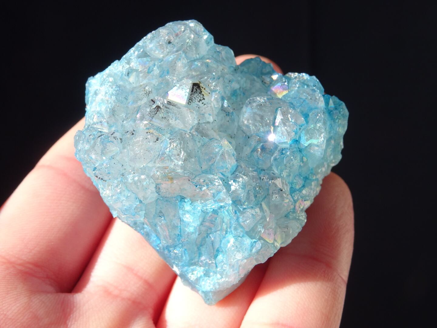 美しい水色と、幻想的なオーラカラーのクラスターです。しっかりサイズなので存在感も素敵な一点。