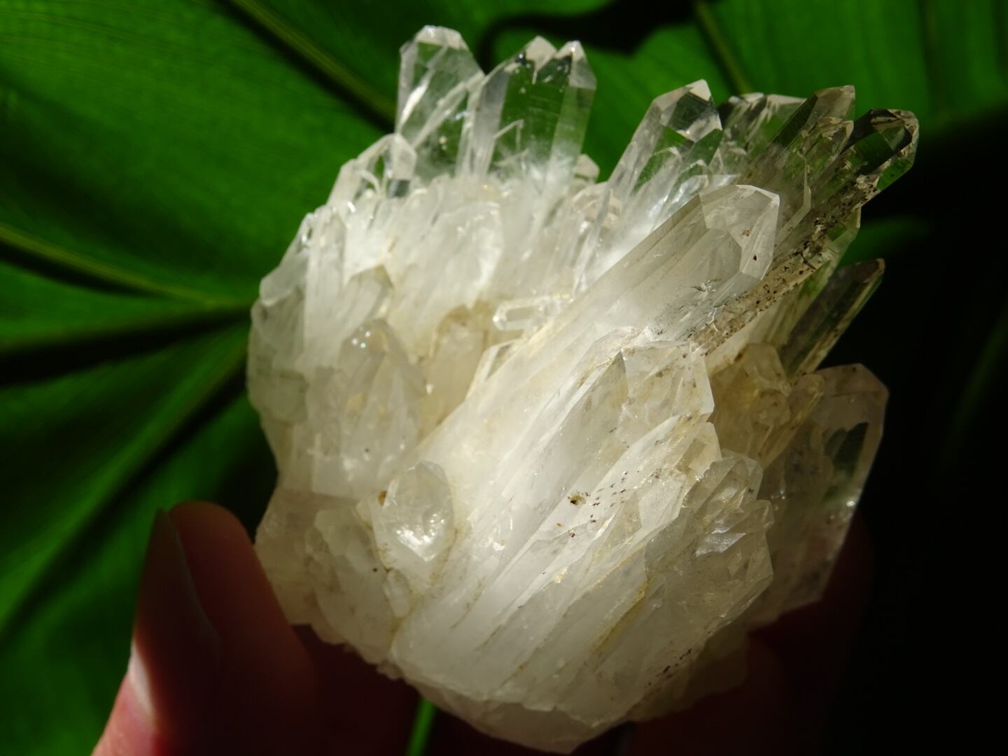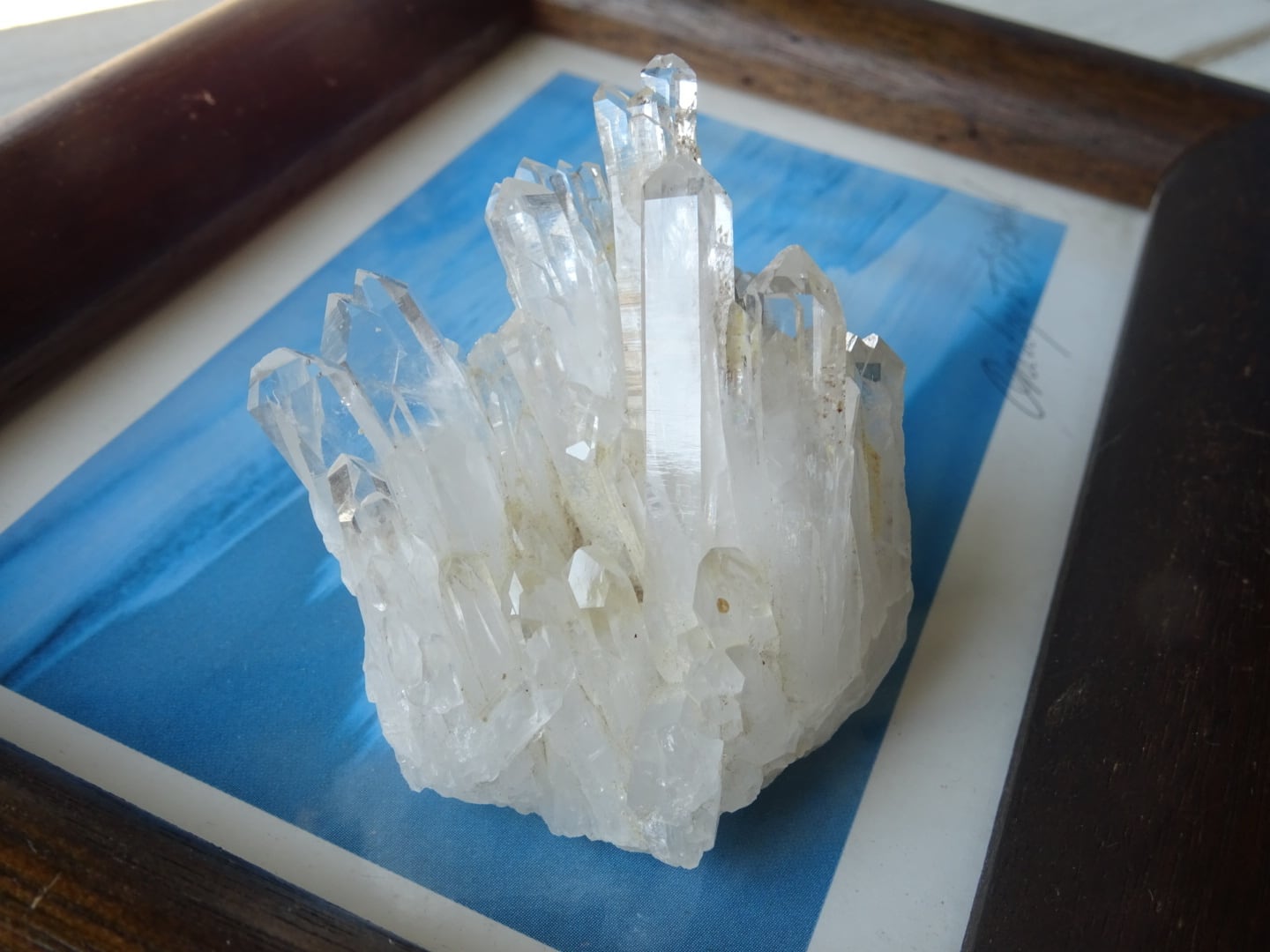 透明度の高い石肌は照り照り、背の高い結晶たちが小さな島を象ったような愛らしいクラスター。ダメージも少ない逸品です。一部に粒々の天然成分が付着していますので、気になる方はどうぞフォトでご確認くださいませ。