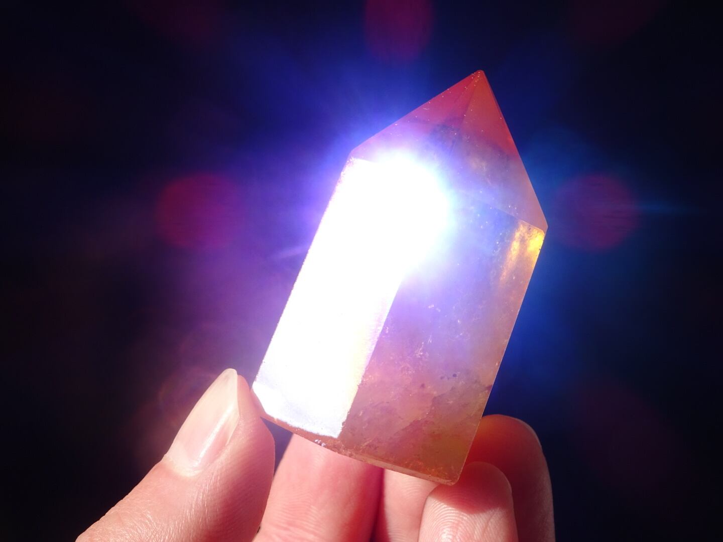 真空状態で水晶を高温に熱したのちに金や銀、白金などを蒸着し、それらを融合させることで生まれるようです。色合いによってそれぞれエンジェルオーラ、アクアオーラ、ローズオーラ、コスモオーラと呼ばれています。