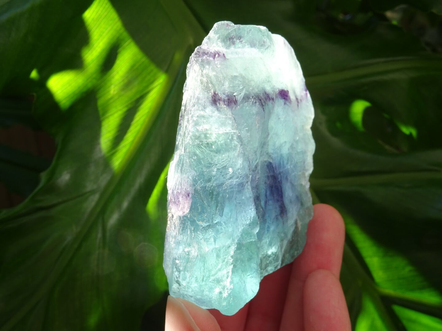 フローライトはもともと水のような雰囲気をもった鉱物ですが、こちらもラグーンのようなブルーグリーンにパープルの層を浮かべた1点。ラフ原石ということもありどこか素朴な雰囲気をもっていますが、光に透かした時に見せてくれる水の世界のような色はとても幻想的です。