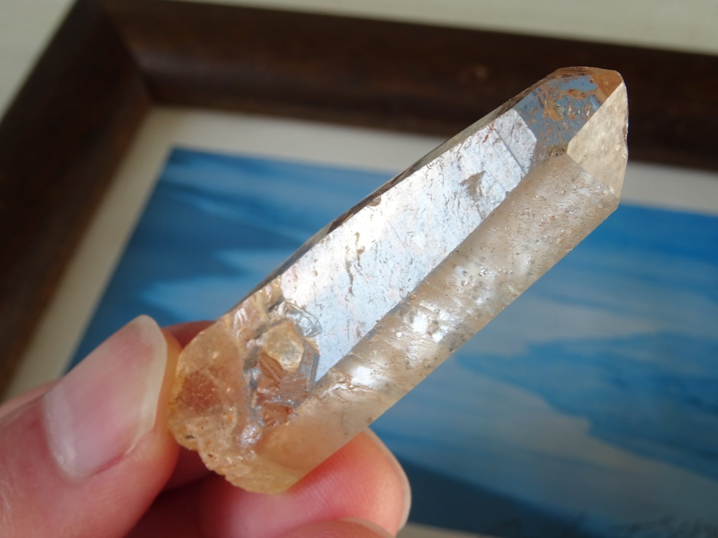 タンジェリンはブラジルのイメージが強いですが、うっすらとオレンジ色に染まったモンドクォーツもとても美しいですねぇ…アフリカの壮大な朝焼け、夕焼けを重ねてしまう。特に柱面に反射する光がとても綺麗です。