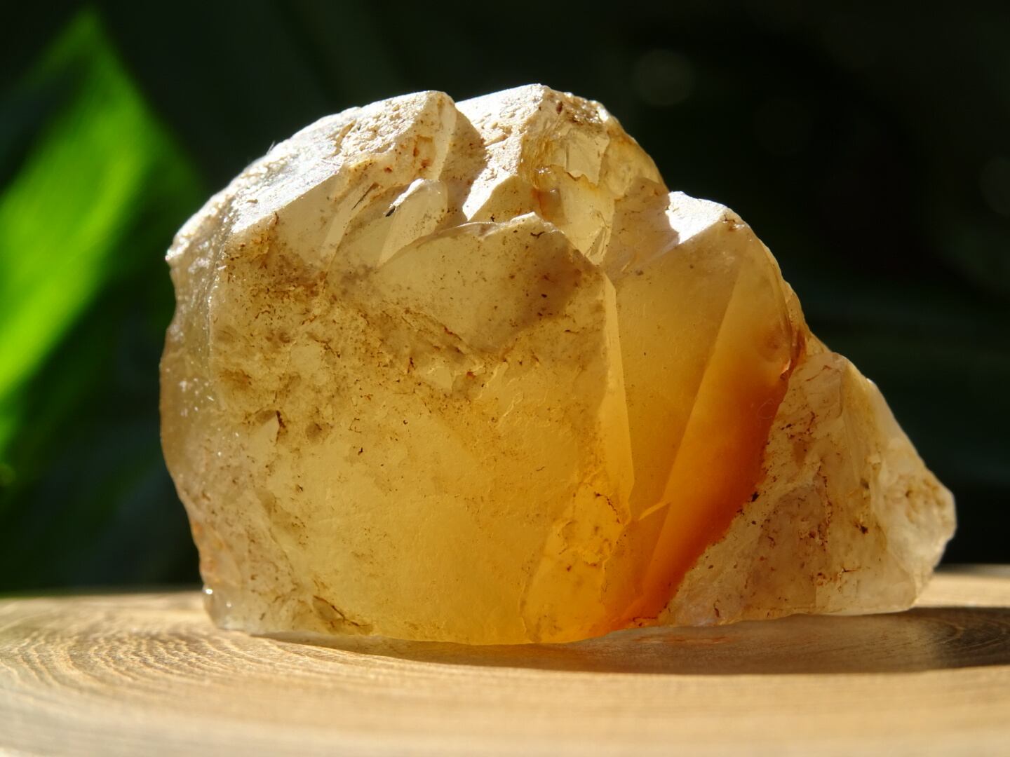 店主はザギのもつ、この濃ゆい飴色や琥珀色が大好きなのですが、こちらはとりわけ底面のガラス質の内側世界が本当に…美しいです。ザギは西日や斜陽がよく似合う石だと思いますが、その光の中でみる暖かな色合いは格別です(もだえてしまう)。こちらは透明感があるのでなおさら、細かな気泡も相まって琥珀を眺めているよう。