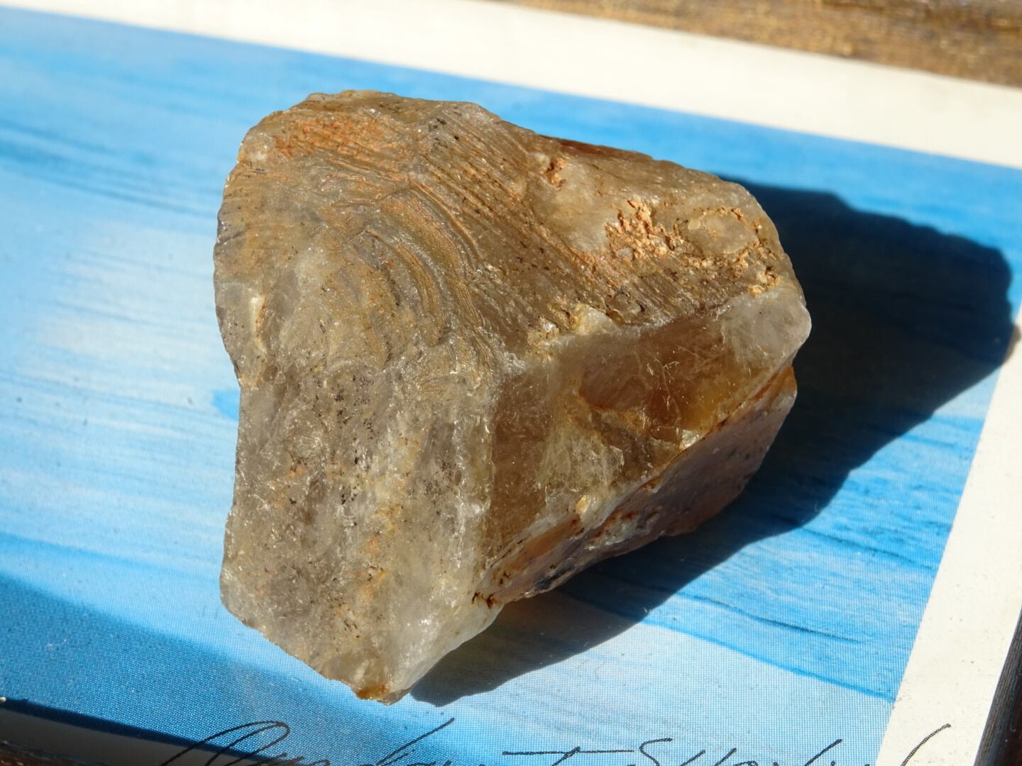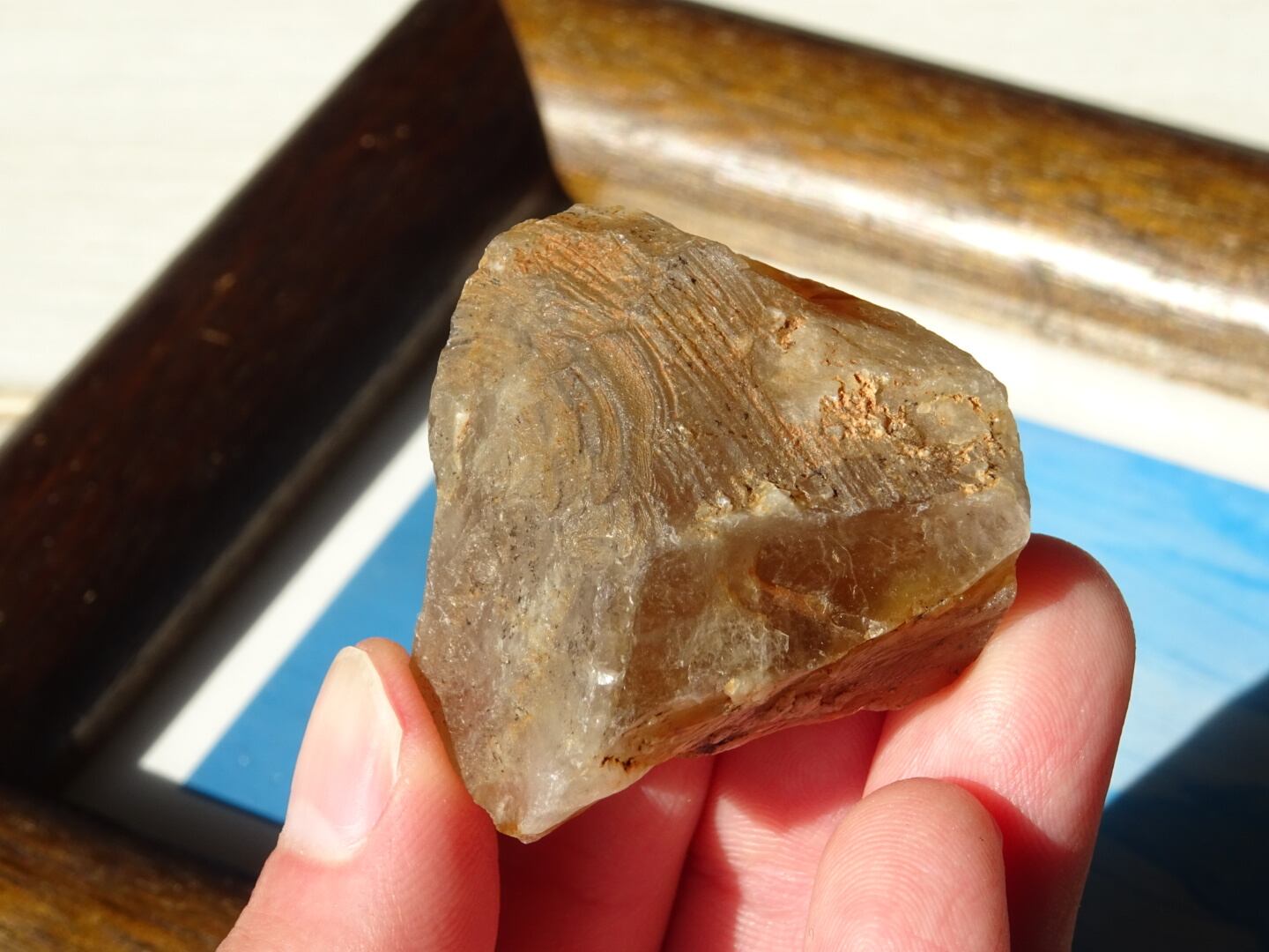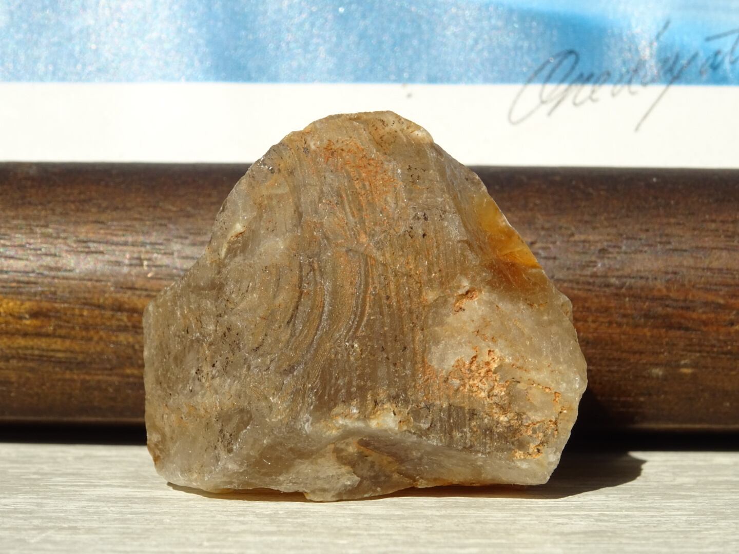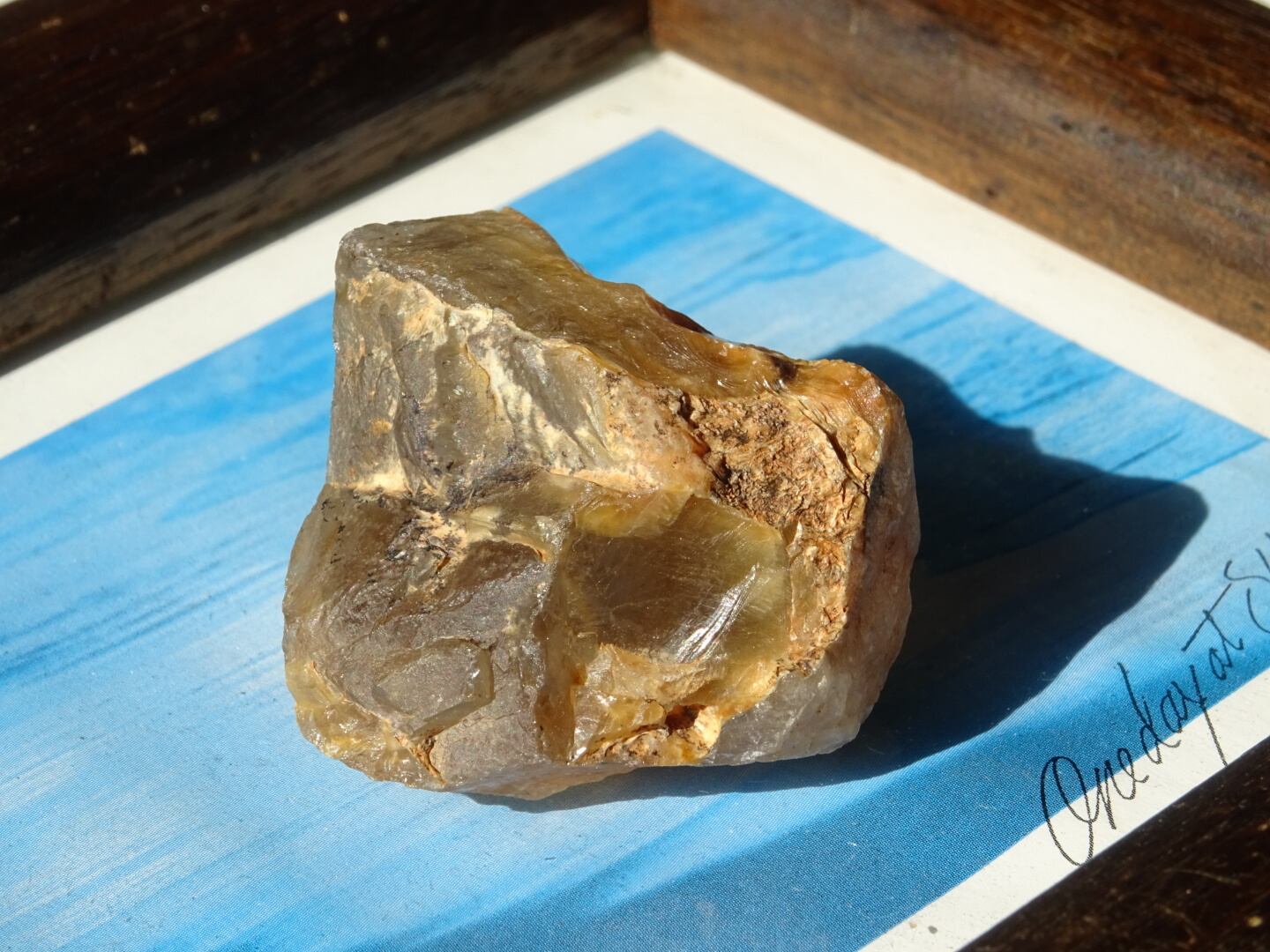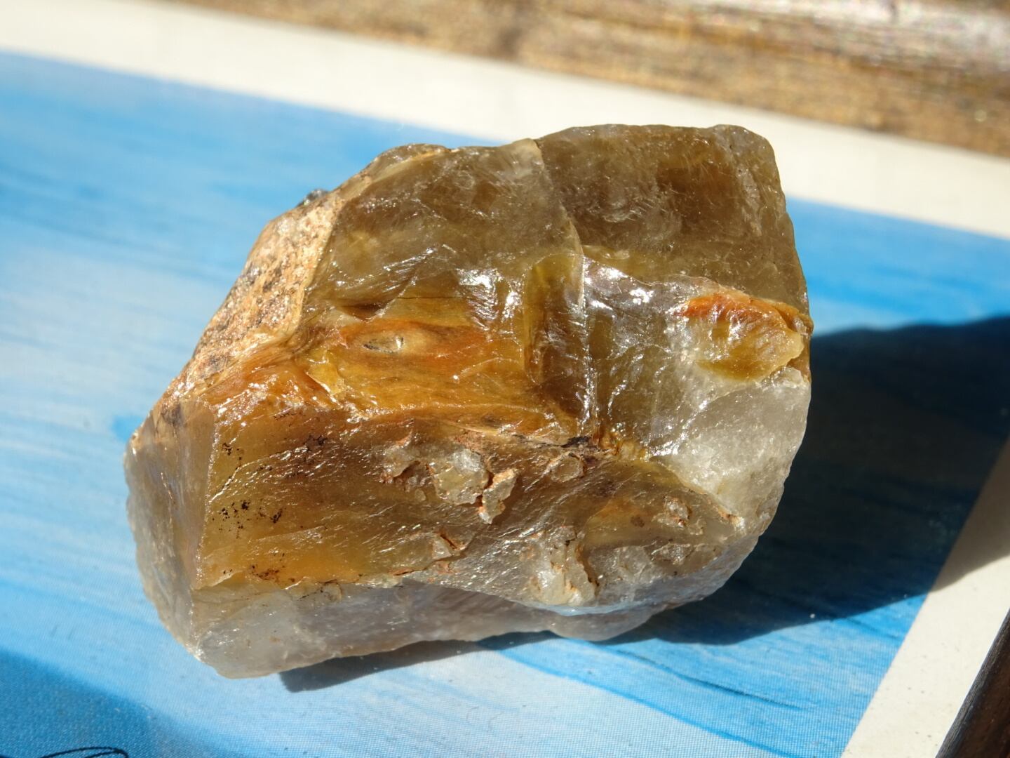 ザギはどんなものであってもお宝のような感覚で眺めてしまうのですが、こちらも濃密なザギカラーがよく出ていてくゥ~っと唸ってしまった1点。ザギのキャラメルソースがけのようでとても「美味しそう」な姿をしています。アストロフィライト、またはアンフィボールが溶けだしたように沁みこんだものは本当に魅力がありますね。こちらはサイズも程よいのでどこへでも連れだせます。