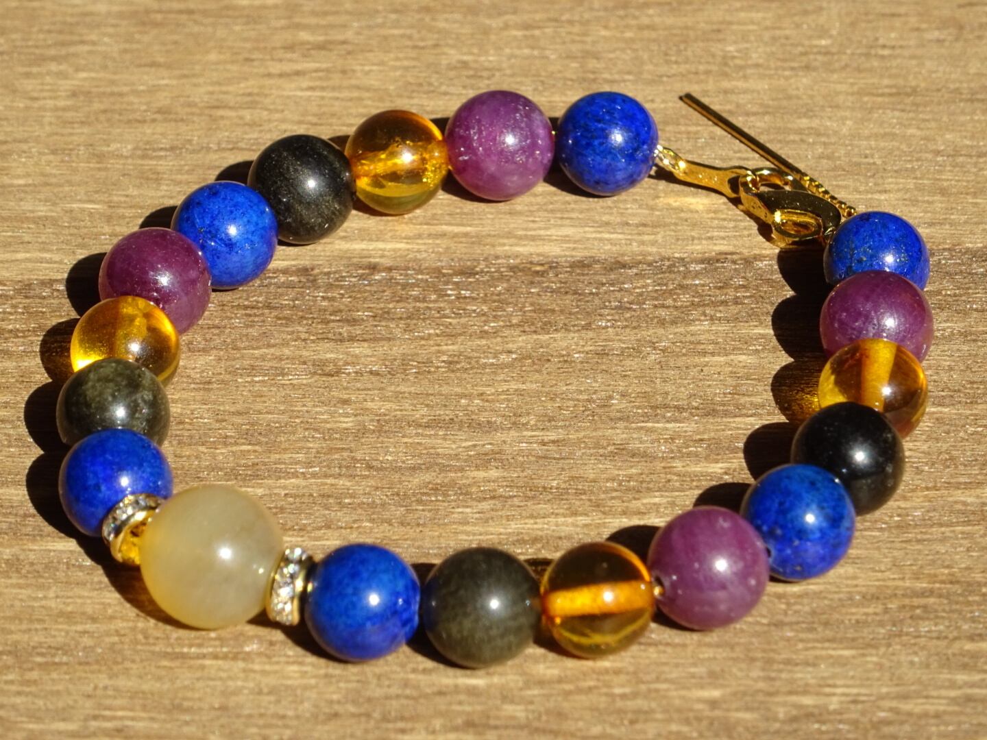 天然石ビーズは勿論ですがピンチェーンやロンデルの品質にもこだわったのでお値段もそれなりになってしまいましたが、その分ロイヤルな雰囲気で、自分的には満足のいくブレスを完成させることができたように思います。