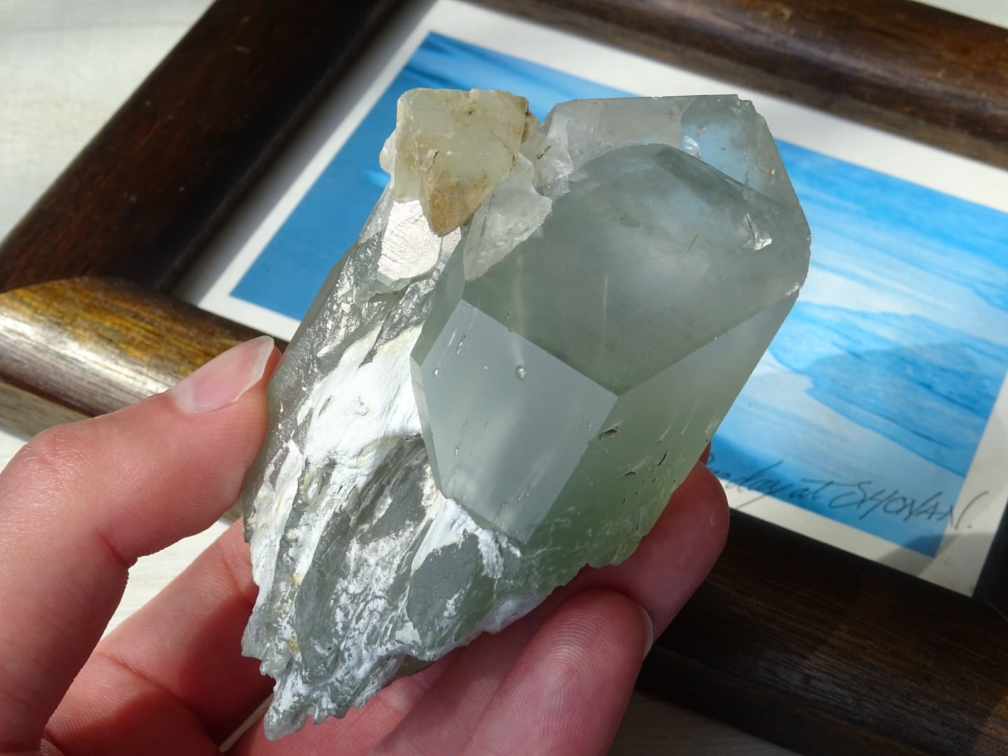 とても開けたファセットをもち、欠落している部分も多いですが結晶そのものはかなりしっかりしていて見応えも充分です。この淡いグリーンの世界は唯一無二かな、と思います。