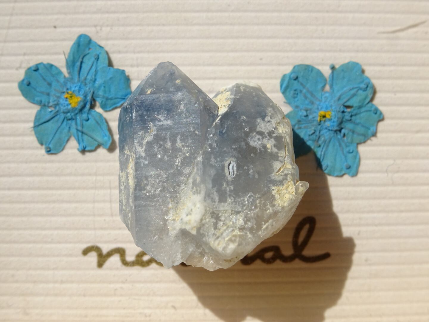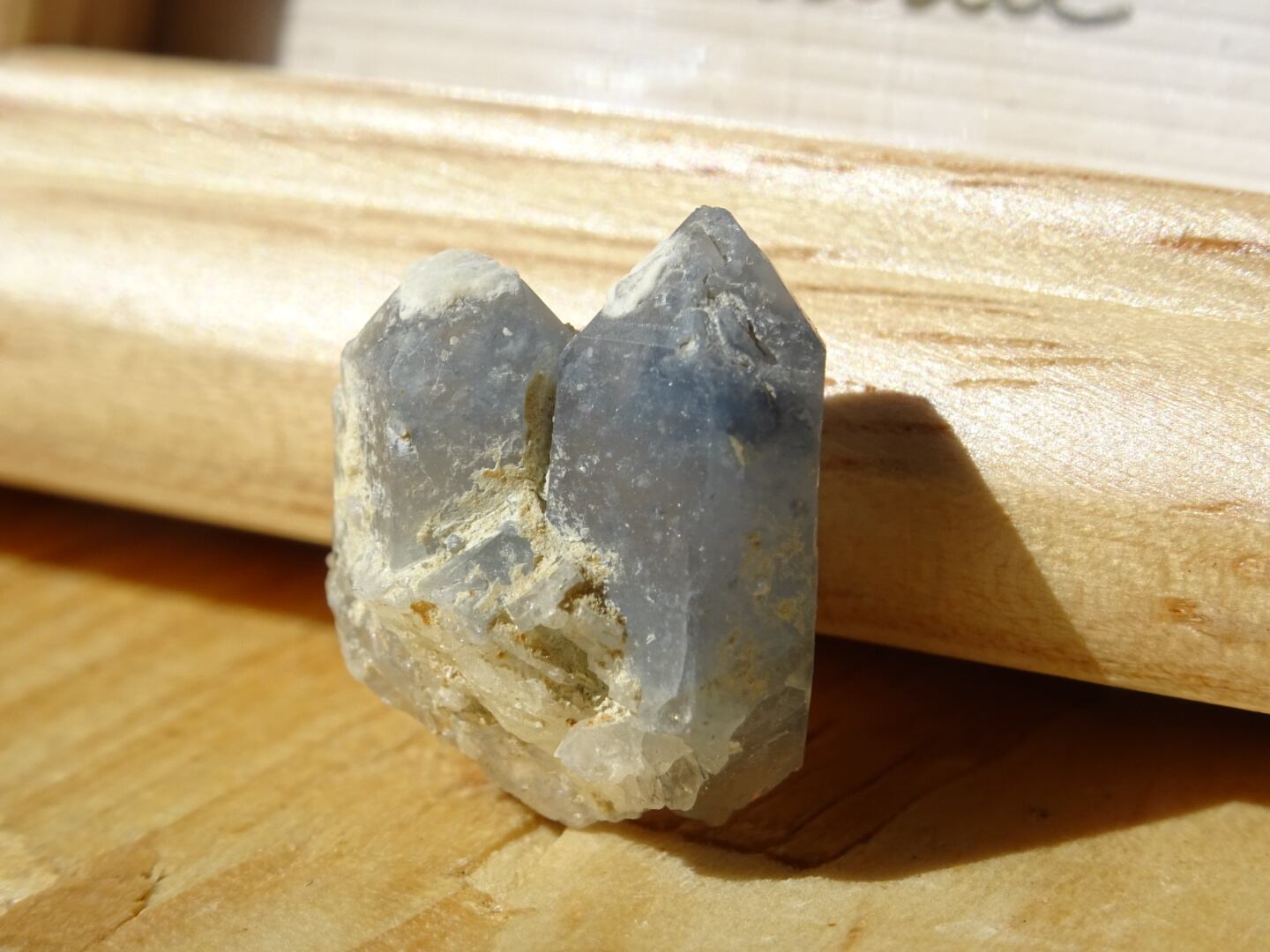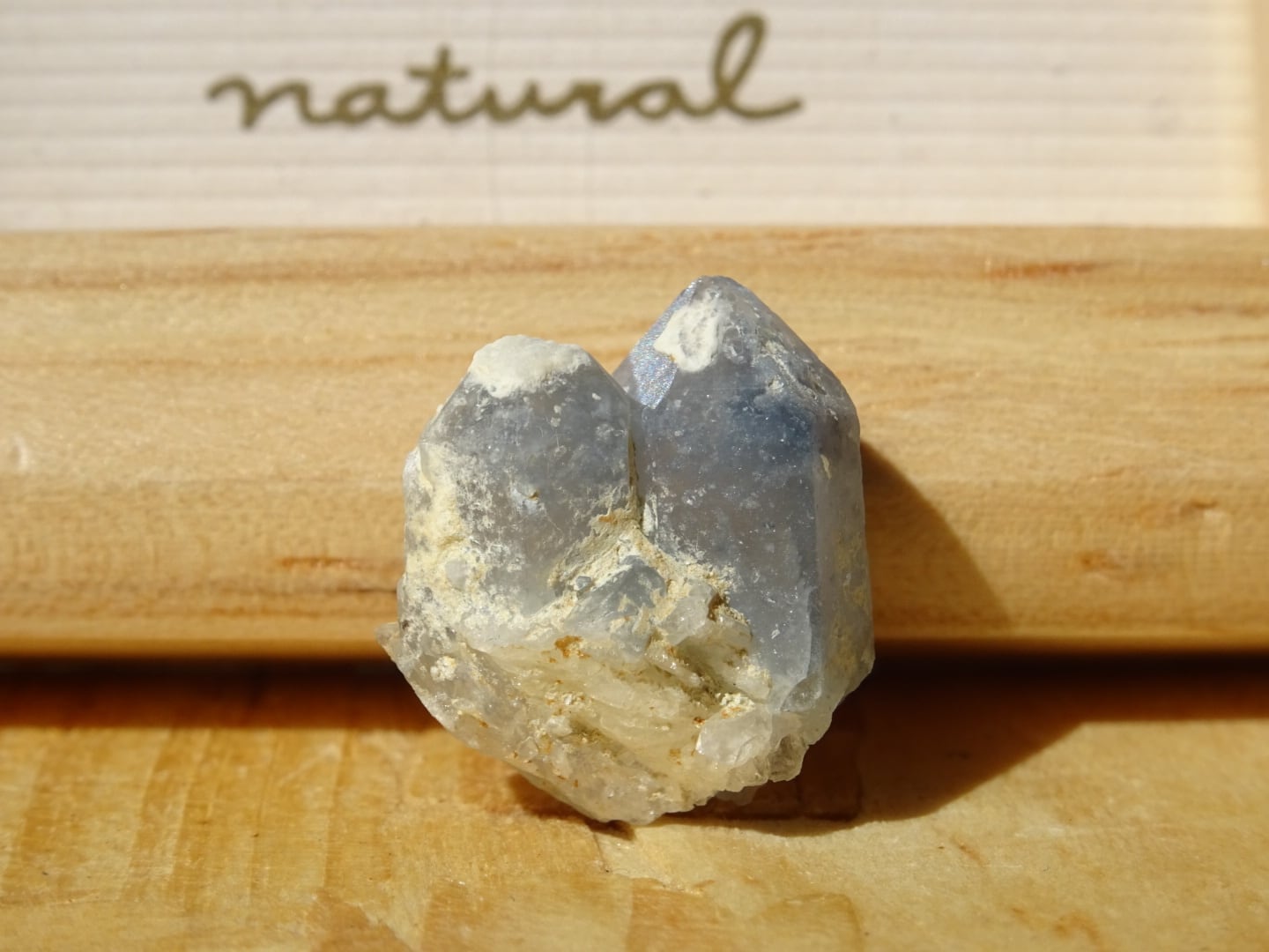 仲良く2つ並んだ姿が愛らしいツインの青水晶。リーベカイトなどの角閃石によって色づいた希少なブルークォーツです。
