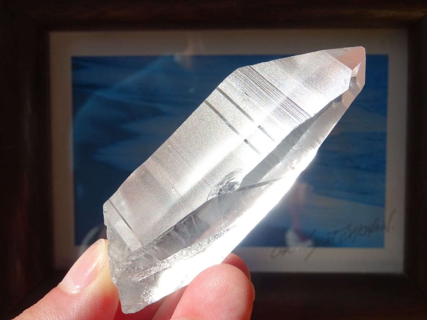 内側はクラックやインクルージョンもなくとてもクリア。一部根元から欠落している部分はありますが、とても美しいフォルムとシルエットをもつ美人さんのピュアレイです。