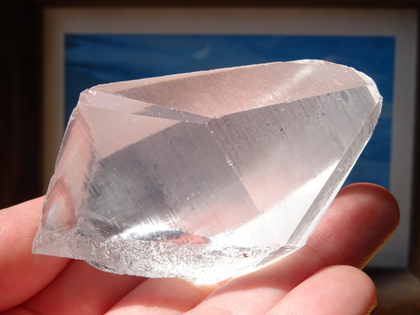 何しろ結晶面の美しさが際立っていて見とれてしまいます。また、モンドクォーツでもそういったものがありましたが、この柱面に浮かび上がる△のマークは何なのでしょう?とても神秘的です。