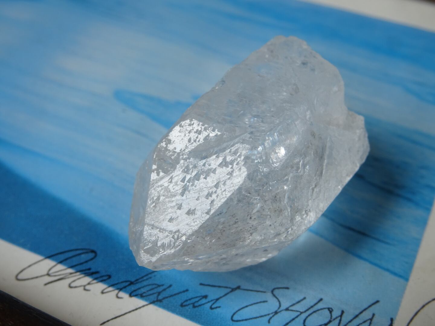 クリスタルの全体が溶かされ丸みを帯びた、美しい蝕像水晶(エッチドクォーツ)。