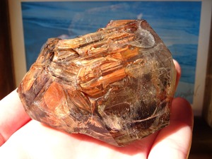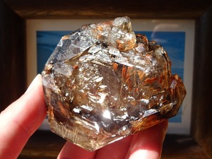 ゲーサイト(針鉄鉱)や鉄分によるオレンジレッドを内包した、Bigサイズのレッドスモーキーエレスチャルクォーツ。
