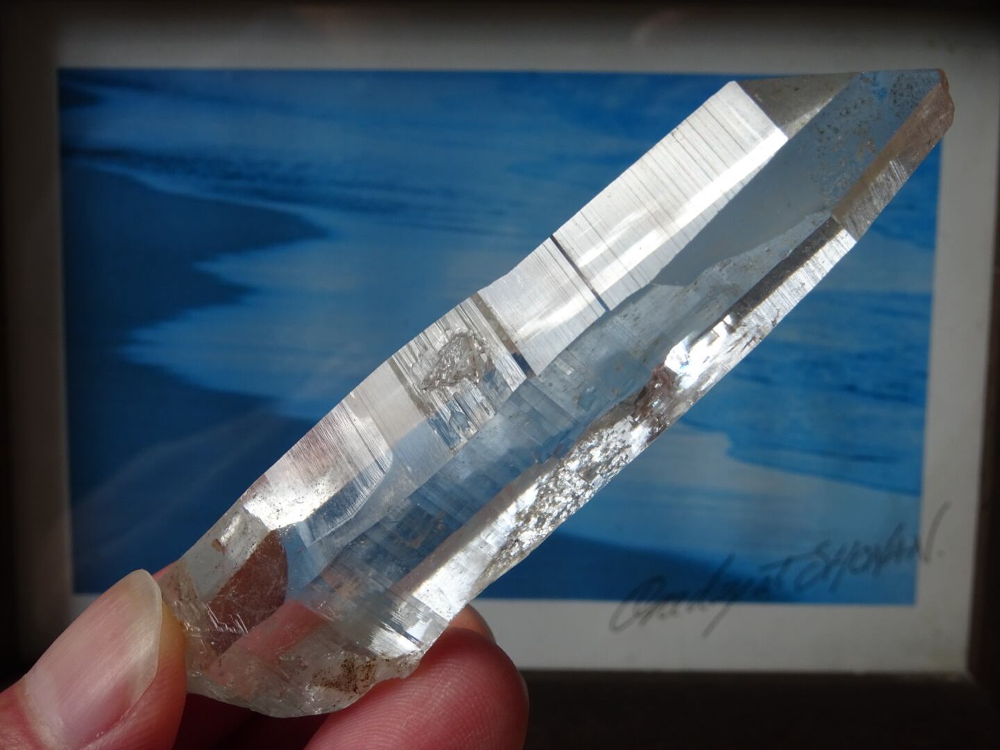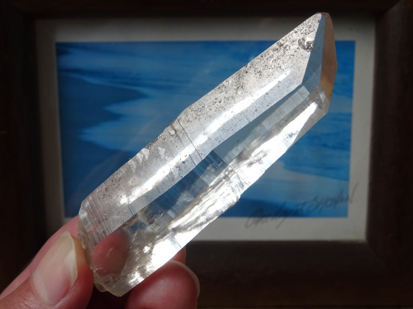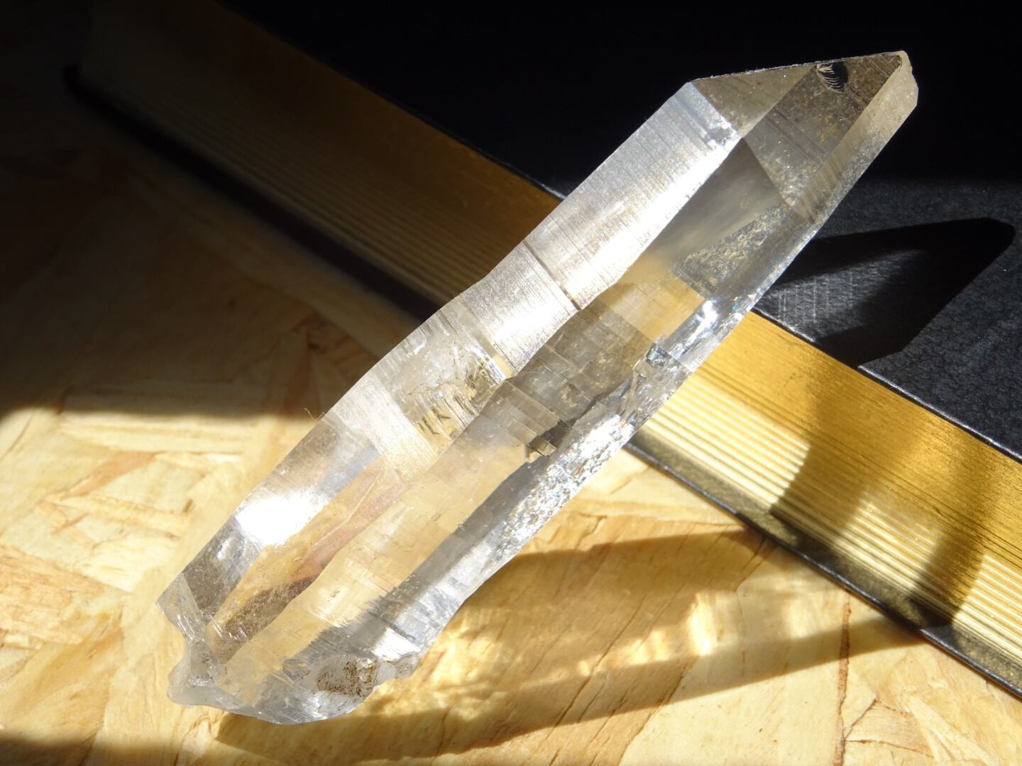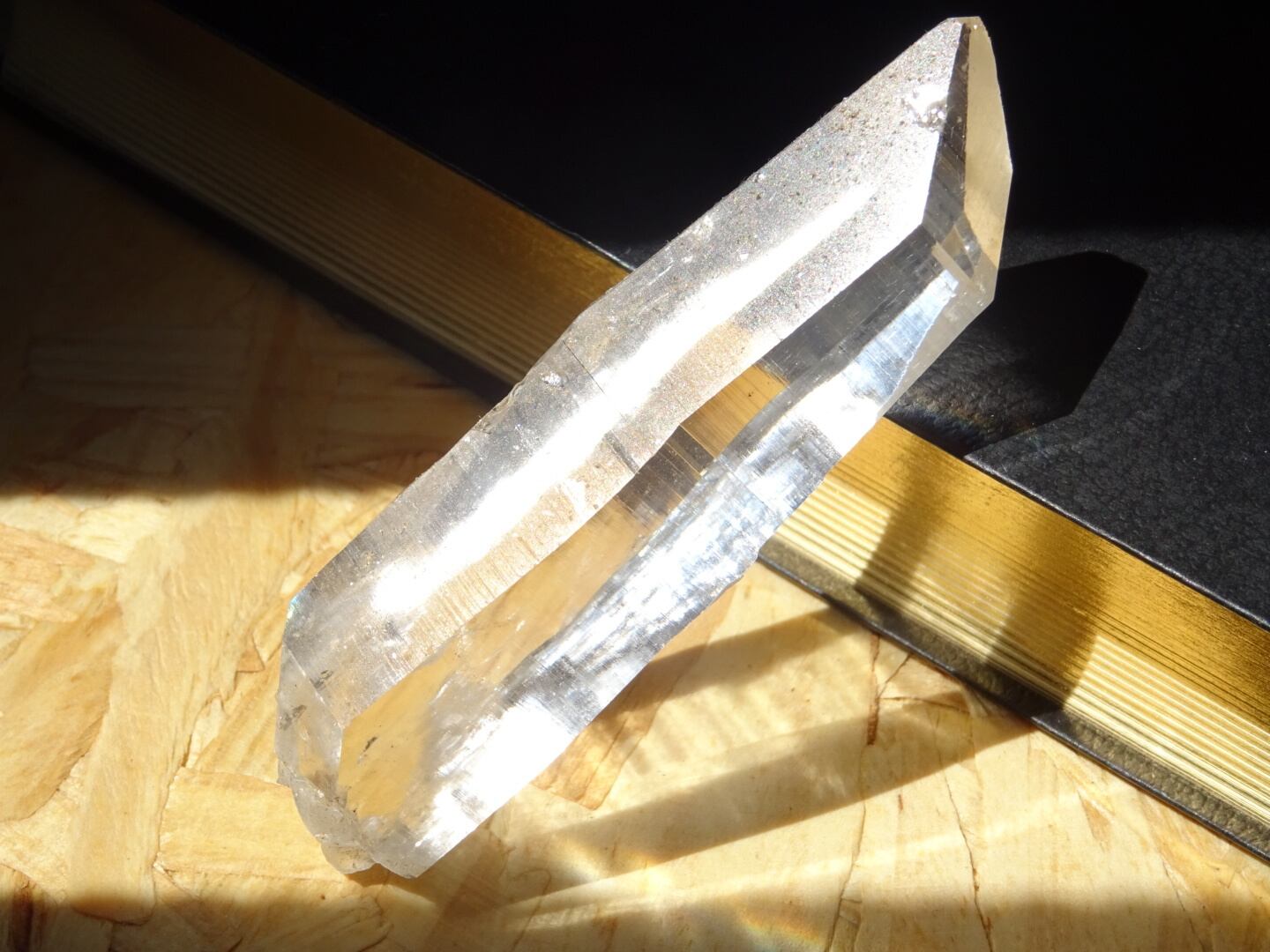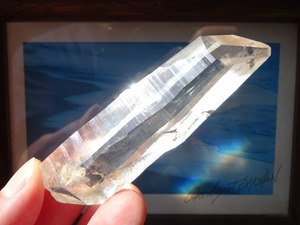 完全な形ではないのが惜しいところではあるのですが、根元はダブルターミネーターになっています。上にも下にもバランスよく通ずる結晶は、光のワンド(杖)のような佇まいと言えるかも知れませんね。