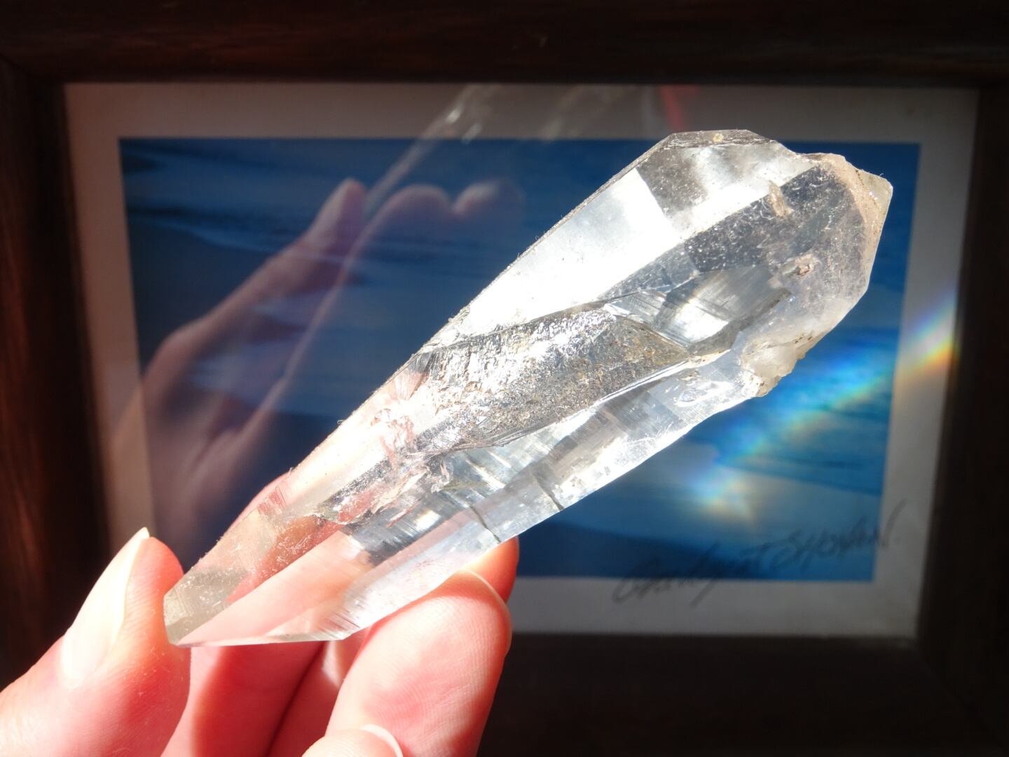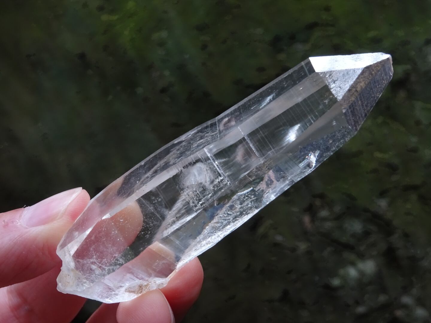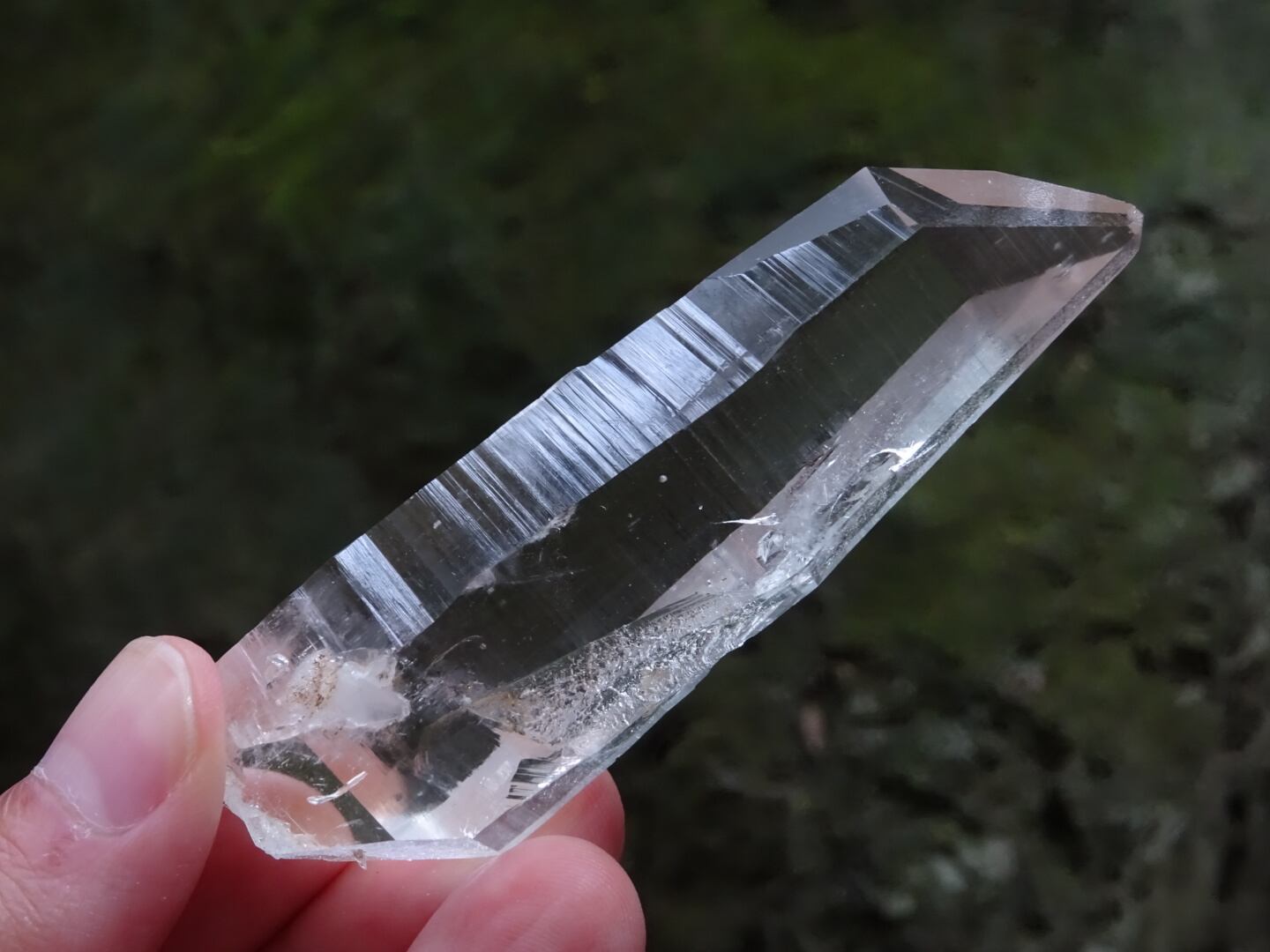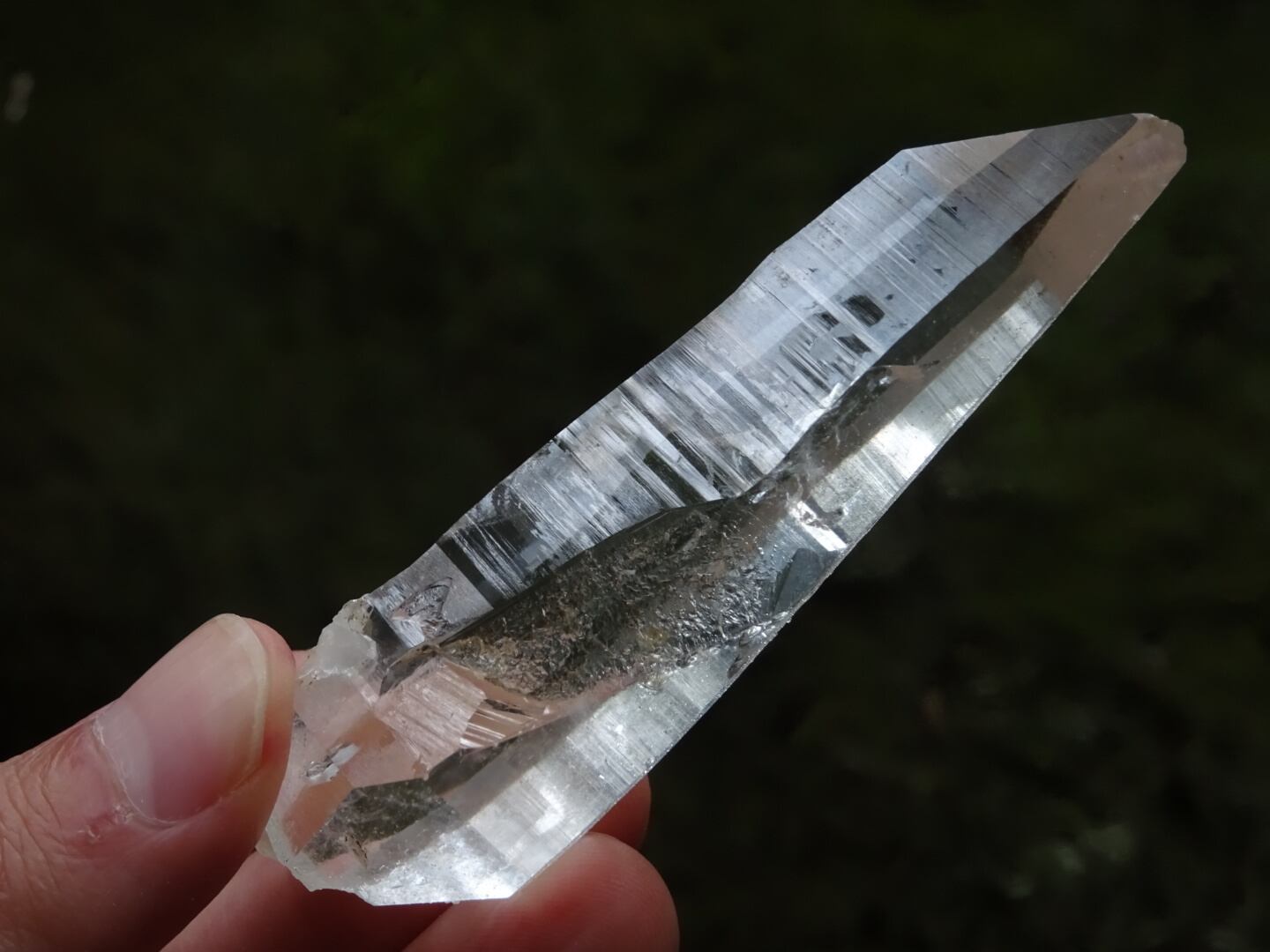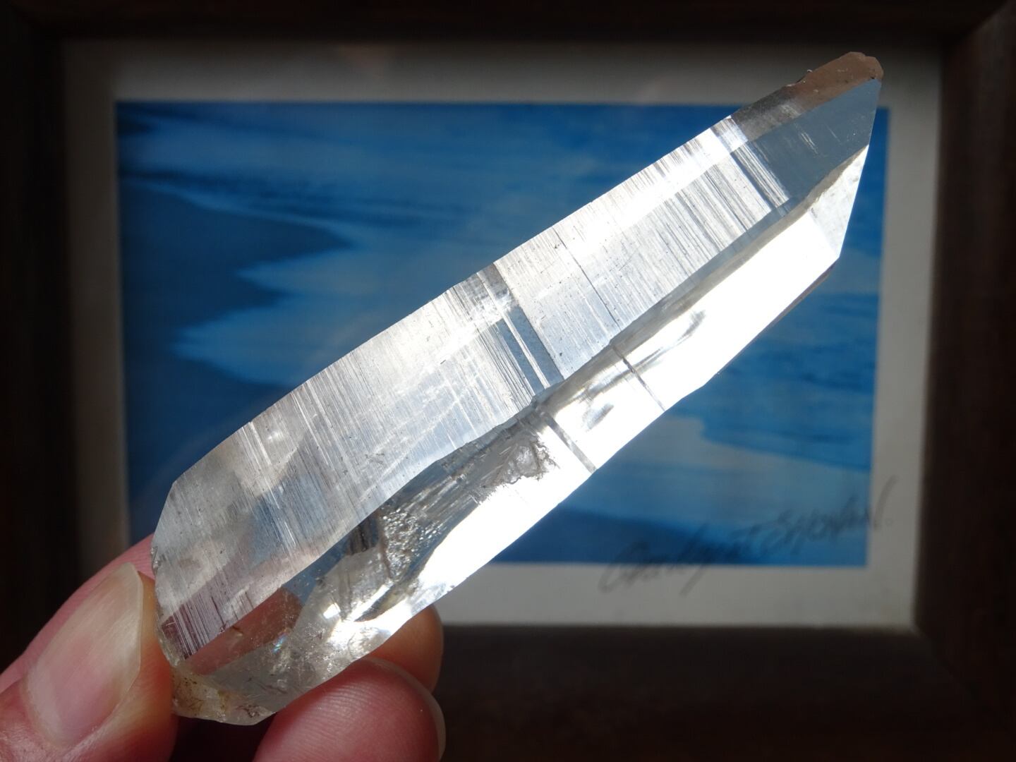 完全な形ではないのが惜しいところではあるのですが、根元はダブルターミネーターになっています。上にも下にもバランスよく通ずる結晶は、光のワンド(杖)のような佇まいと言えるかも知れませんね。