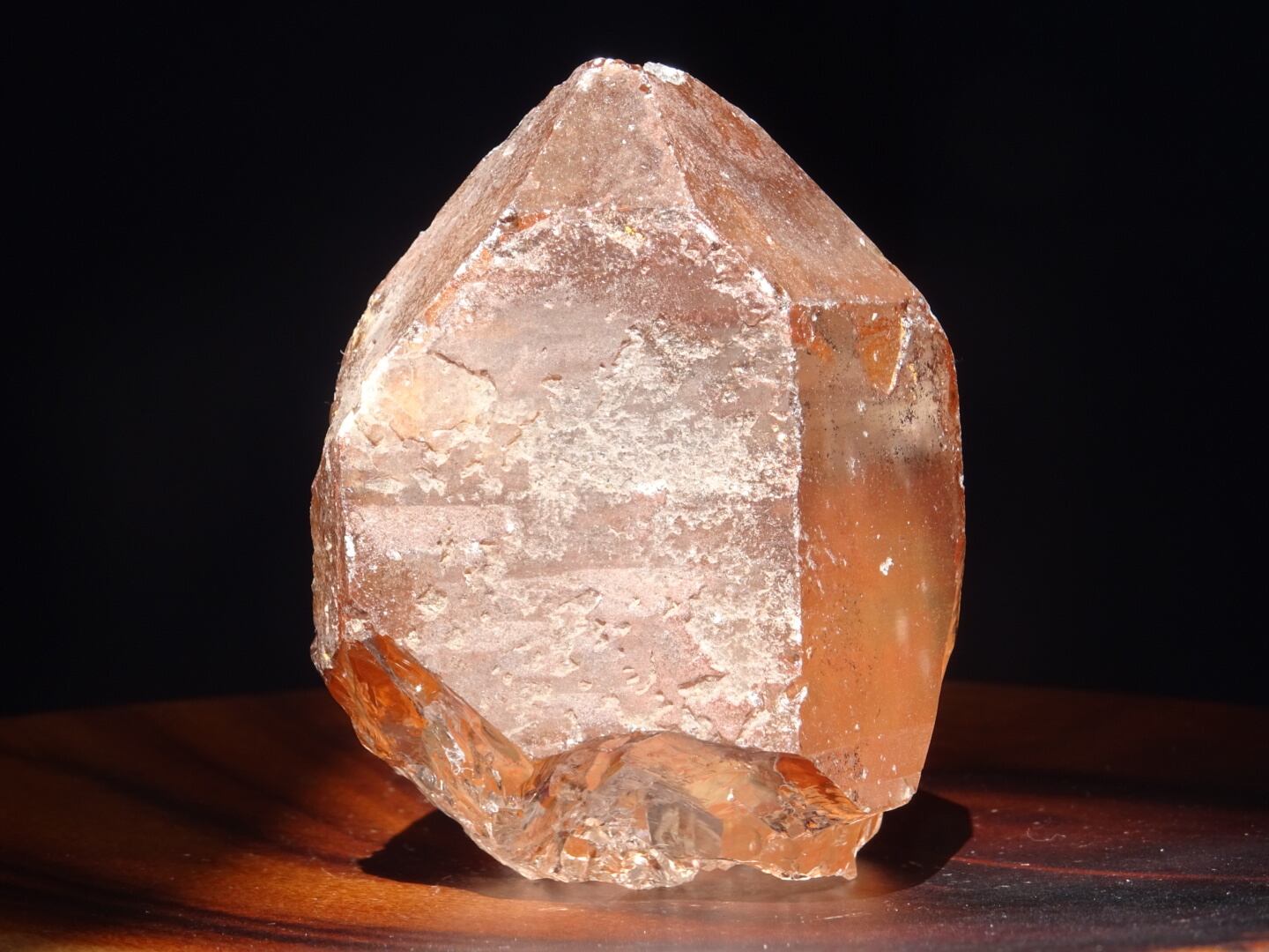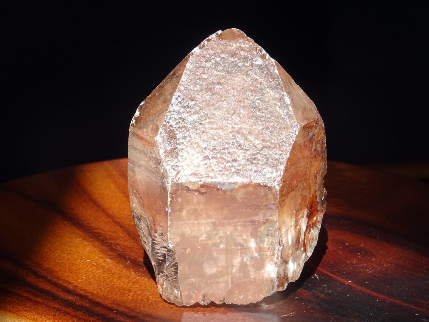 こちらはバランスのとれたフォルムの長老さん。斜めではありますがしっかり自立もしてくれて存在感抜群です。手のなかに収めると「石」というよりは何かの「存在」を収めているような感覚になるエルダーズですが、この石もクリアさを広げつつ、どっしりとした確かさと存在感とひかりで持ち主の傍にいてくれます。