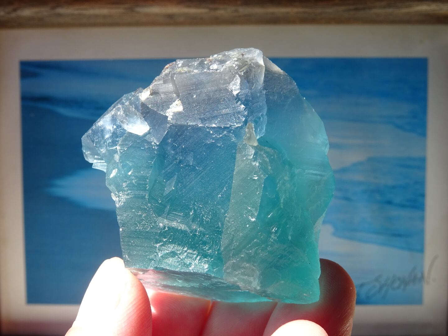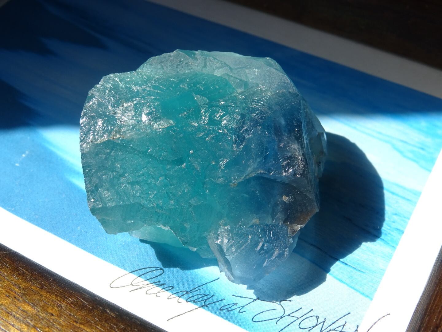 水といってもひっそりとした湖や綺麗な泉、静かな池のなかのようなこの色。森で産出することもありどこかケルティック、またはドルイドが持っていそうな石。暗所でも明所でもどちらも素敵なのですが、やはりとりわけ光のなかで魅せてくれる色合いが美しいです。深くから落ちつく色だと思います。ブラックフォレストのフローライトは希少なこともありどれも宝物にしたい魅力があります。静かで優しく・深く広がっていくような色もつ蛍石。