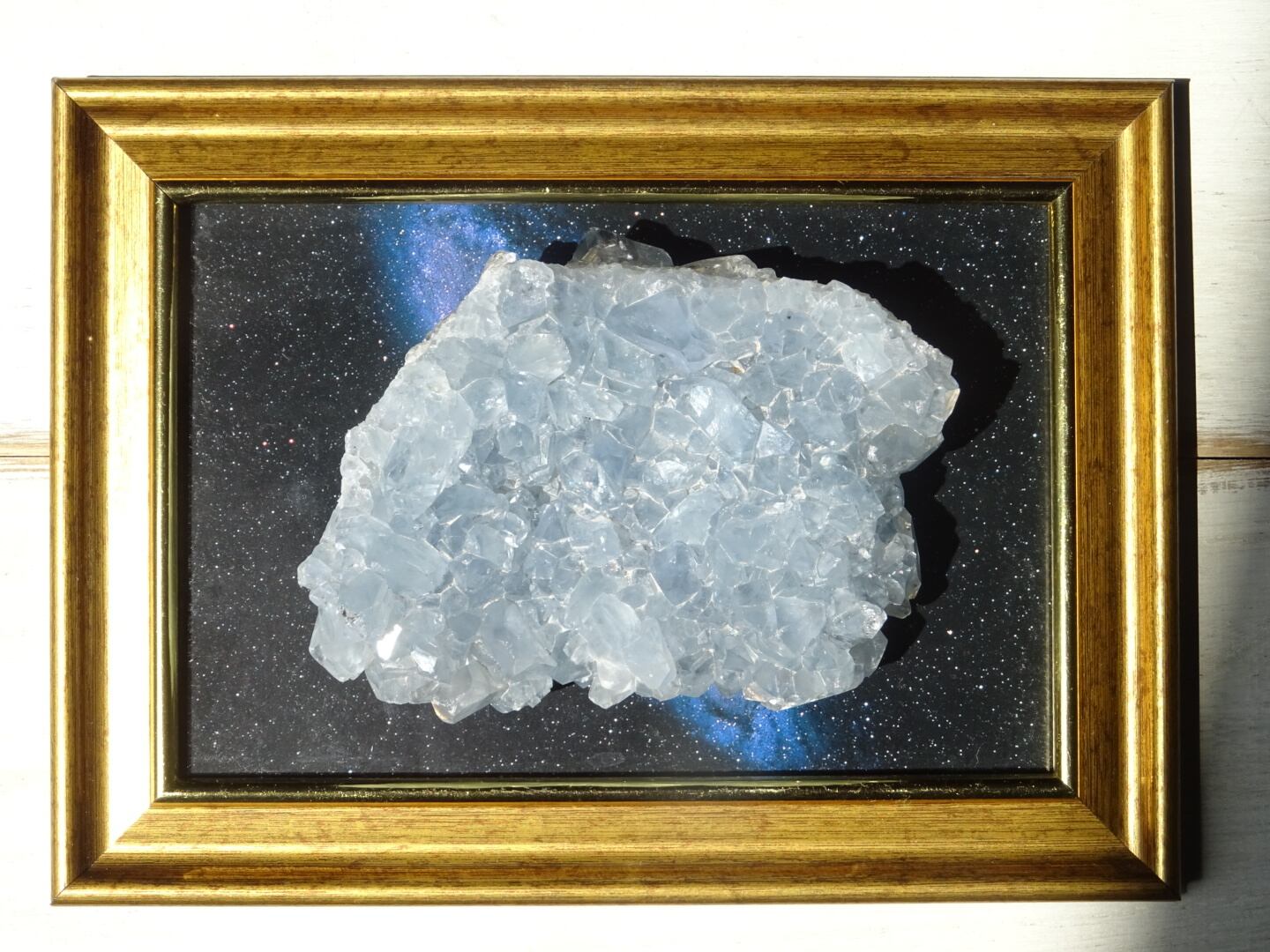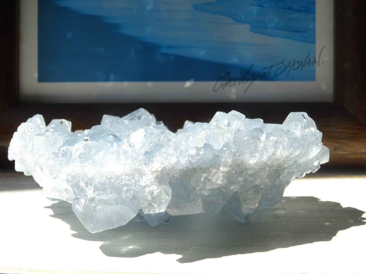 セレスタイトはとにかく「清浄」という言葉がしっくりくる石。凛としたつよさを感じる石でもありますね。青の聖域そのものなこのクラスターですが、そこにいるだけでセレスチャルで清らかで凛とした存在感を放ってくれています。セレスタイトはこころの曇りを晴らしてくれる石でもあると感じます。