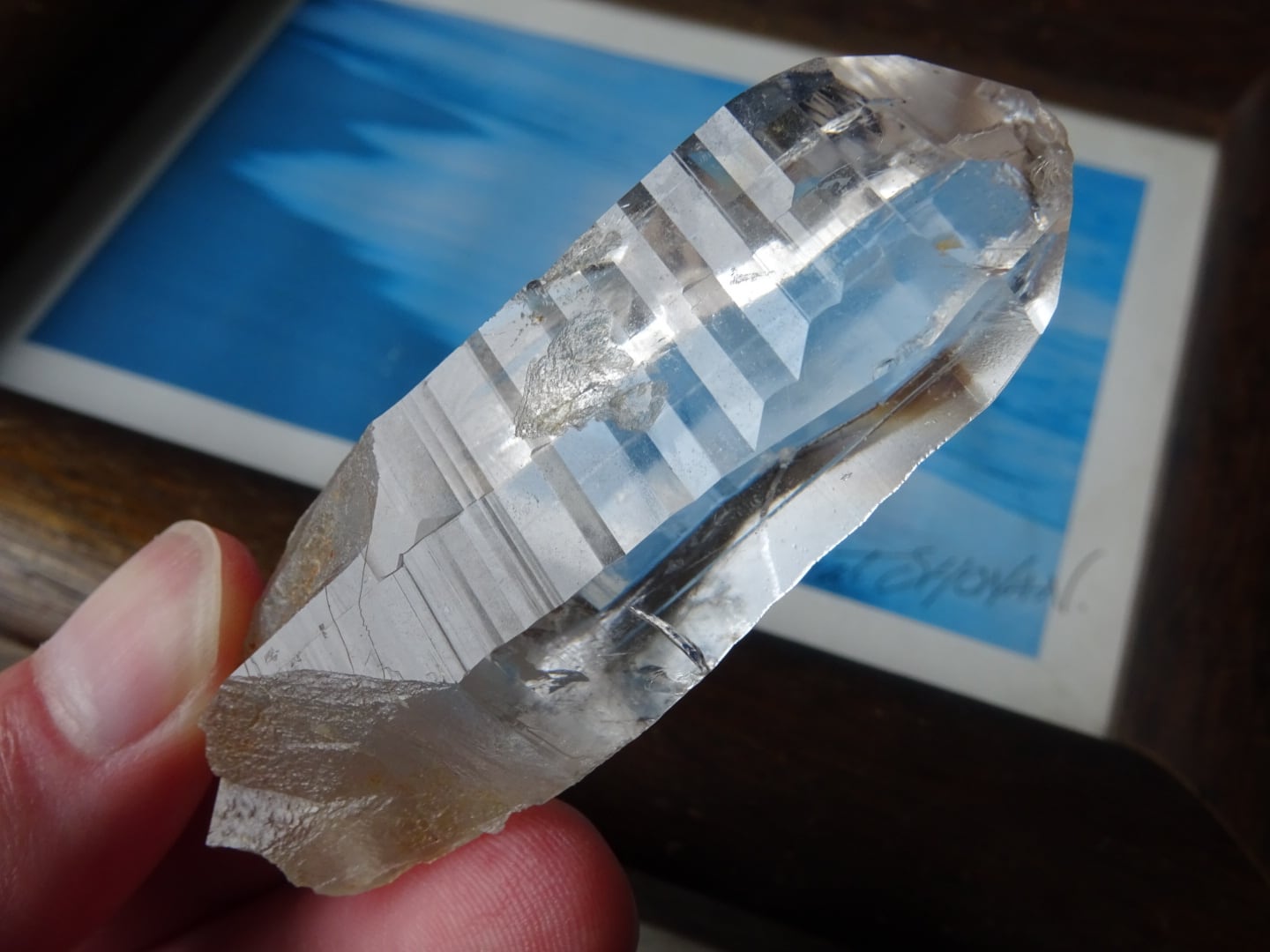 少々の欠け部分はありますが非常に艶のある石肌をしています。柱面が一面おきに段々になっており、その光がカッティングされた宝石のように反射して美しい1点です。