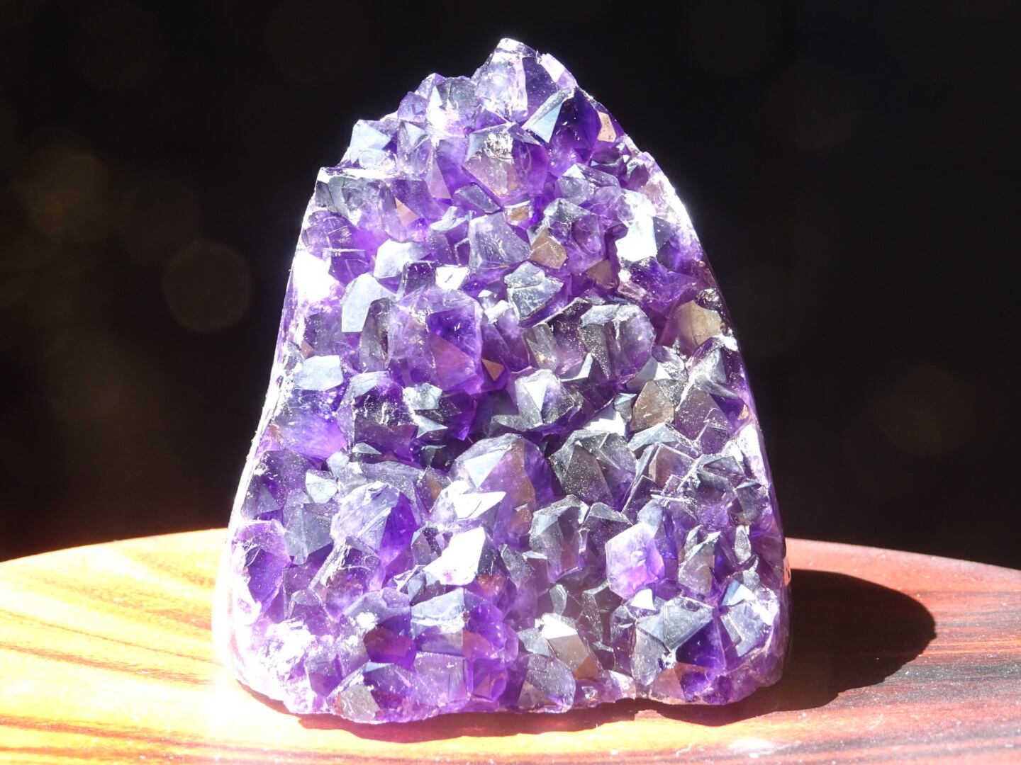 大きすぎることもないのでちょっとしたスペースやサンクチュアリづくりにも。そこにひとつあるととても素敵な存在感を放ってくれるアメジストです。