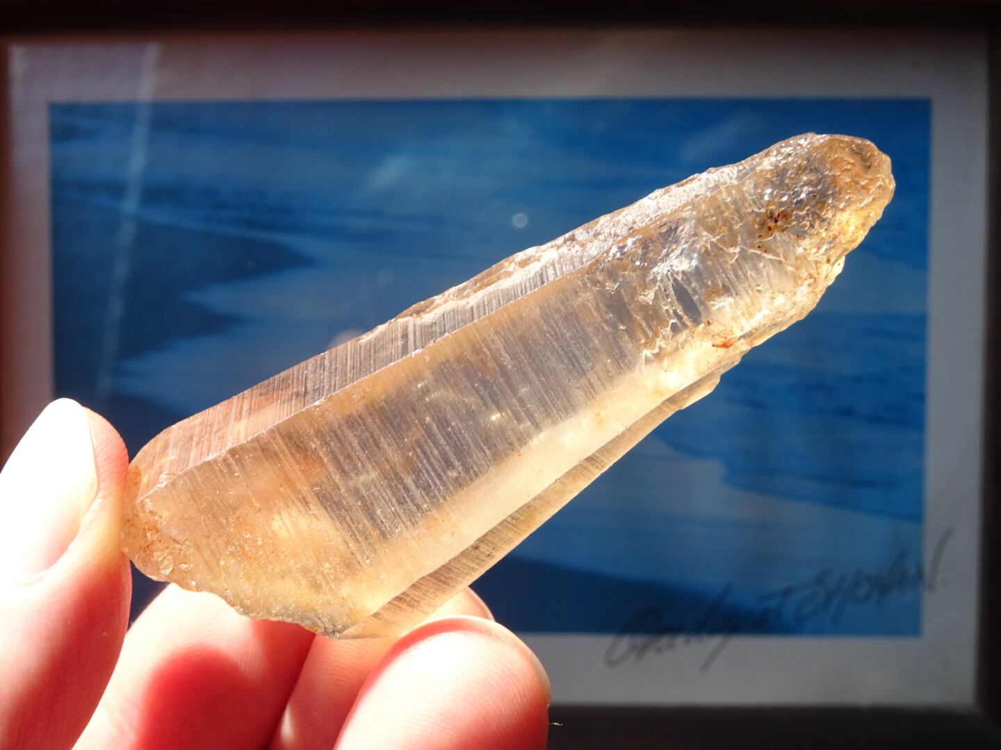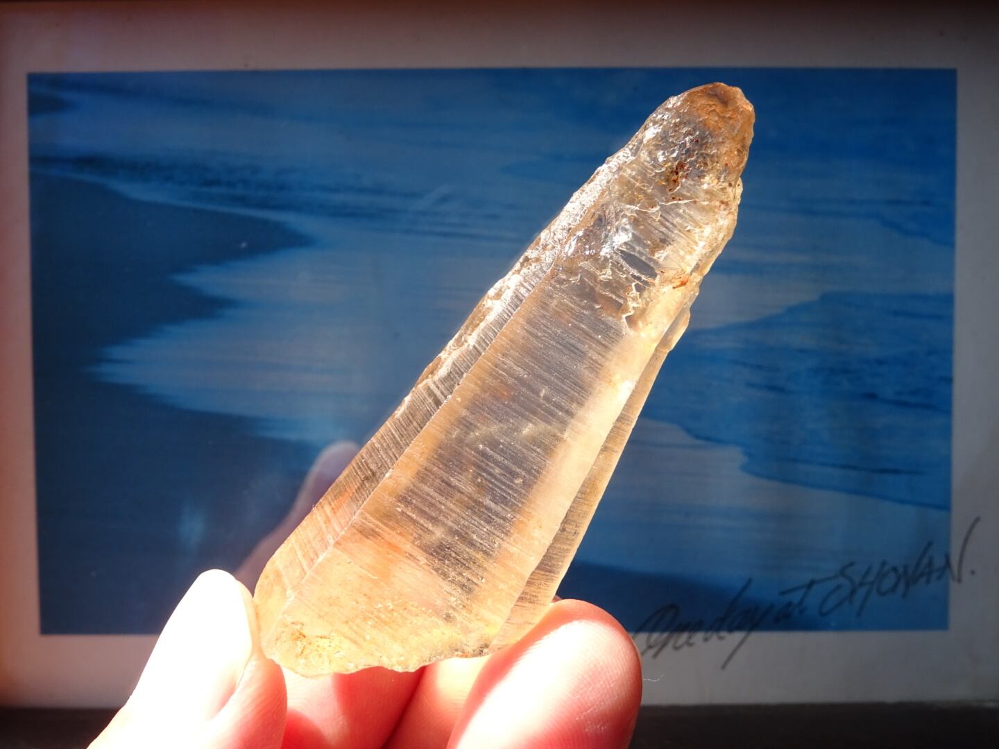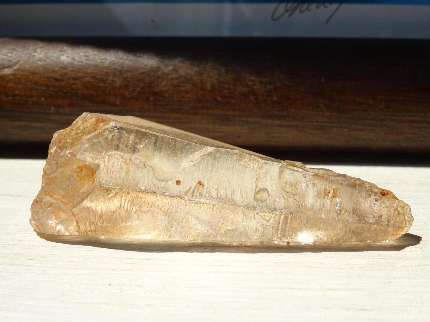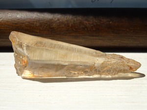ミニレーザーのフォルムも愛おしく、個性的な柱面をしています。ギザギザに波打つような蝕像模様も素敵。とっても希少なタンザニアの宝物シトリンです。