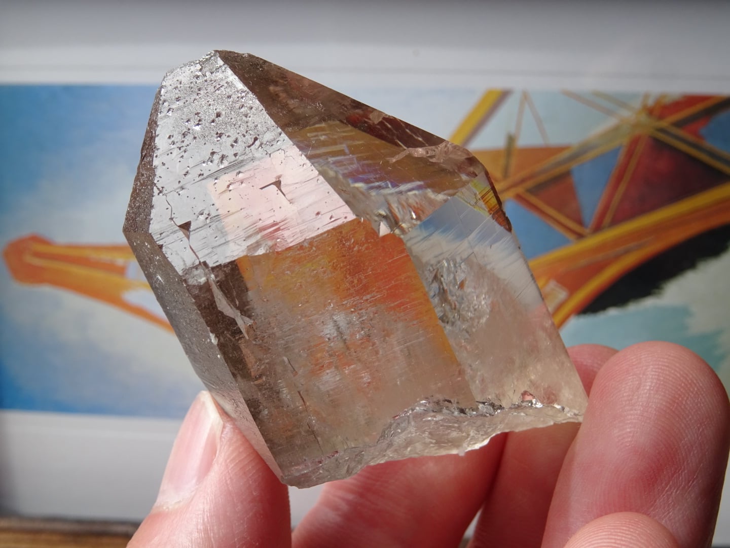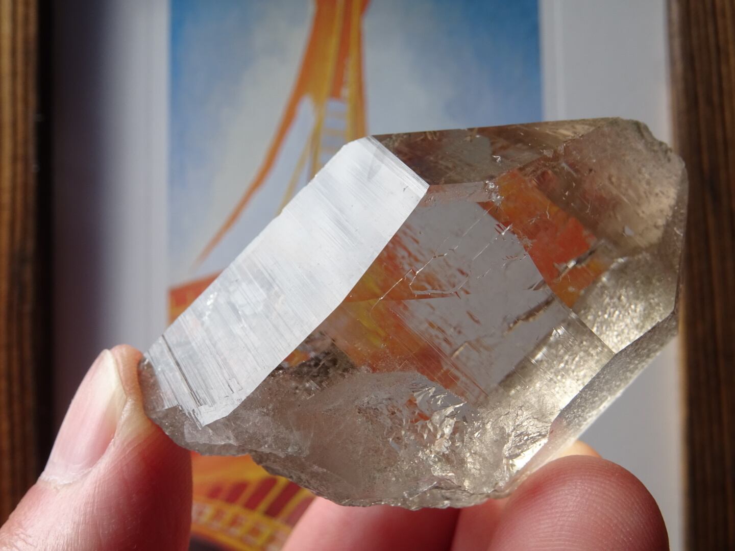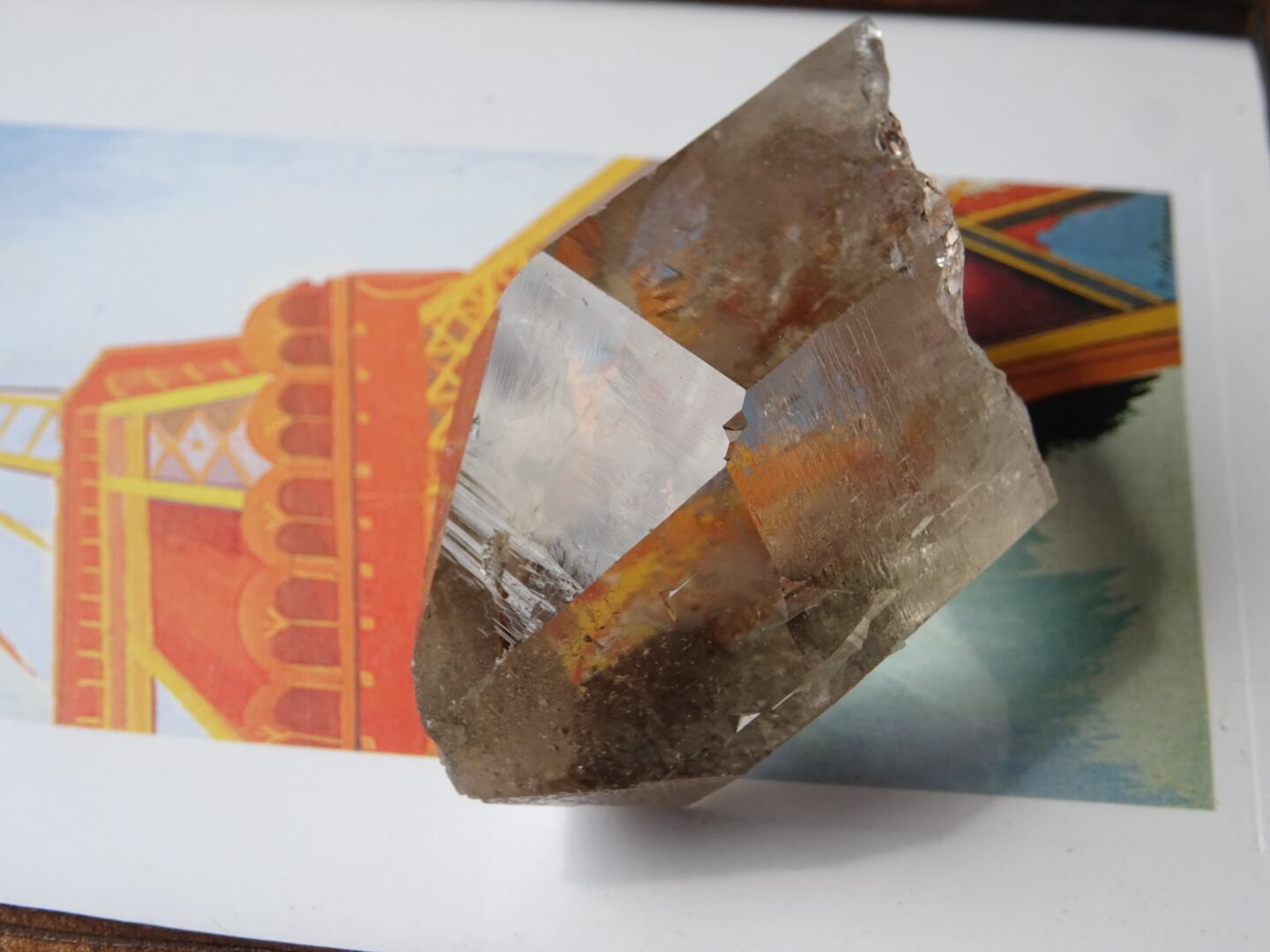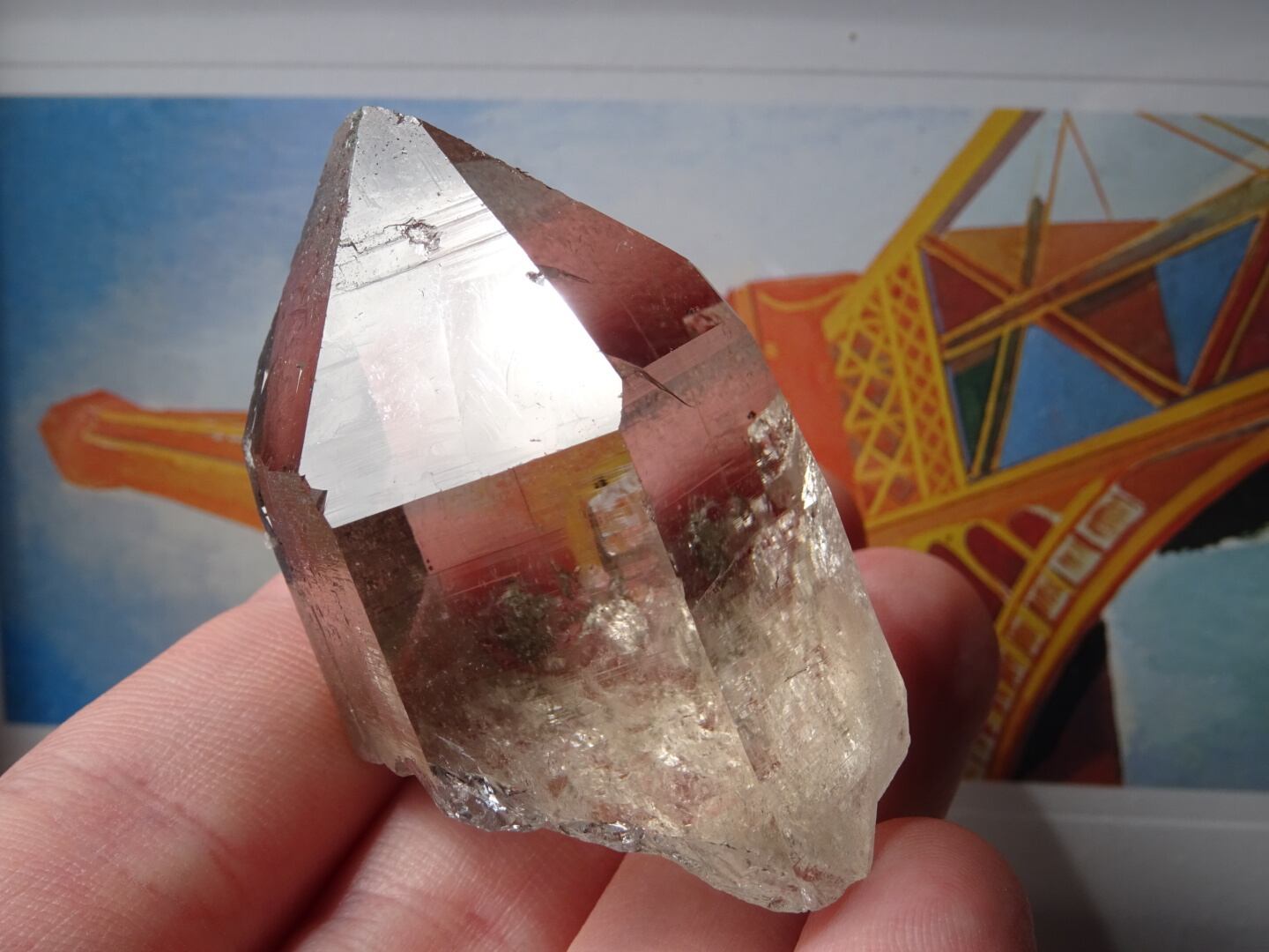 クリアグレーのスモーキーカラーが美しいアルプスクリスタル。コロンと自立してくれる愛らしいフォルムは正面に2つのファセットが向いている「ツーフェイス」でハンサム。とても繊細なリッジや照り照り&クリアな石肌が美しい子です。
