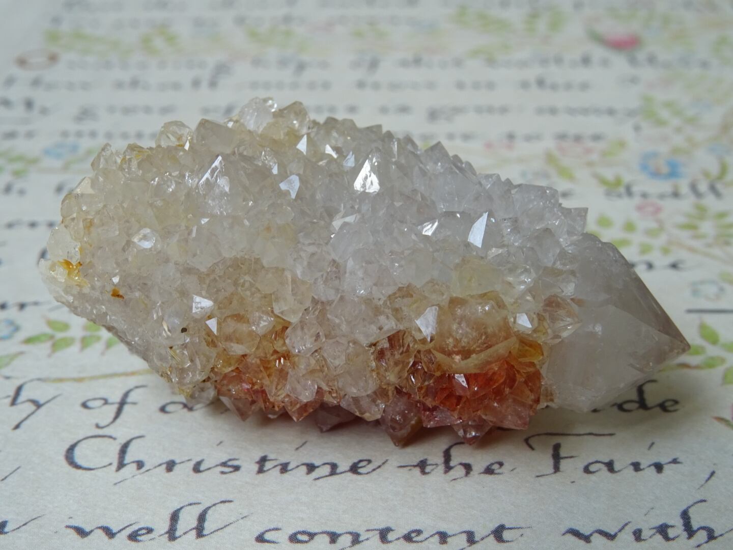 「カクタスアメジスト」として入荷したのですが、全体的にホワイトなことから「スピリットクォーツ」としてみました(こういった南アフリカのカクタスはその名で呼ばれていますね)。