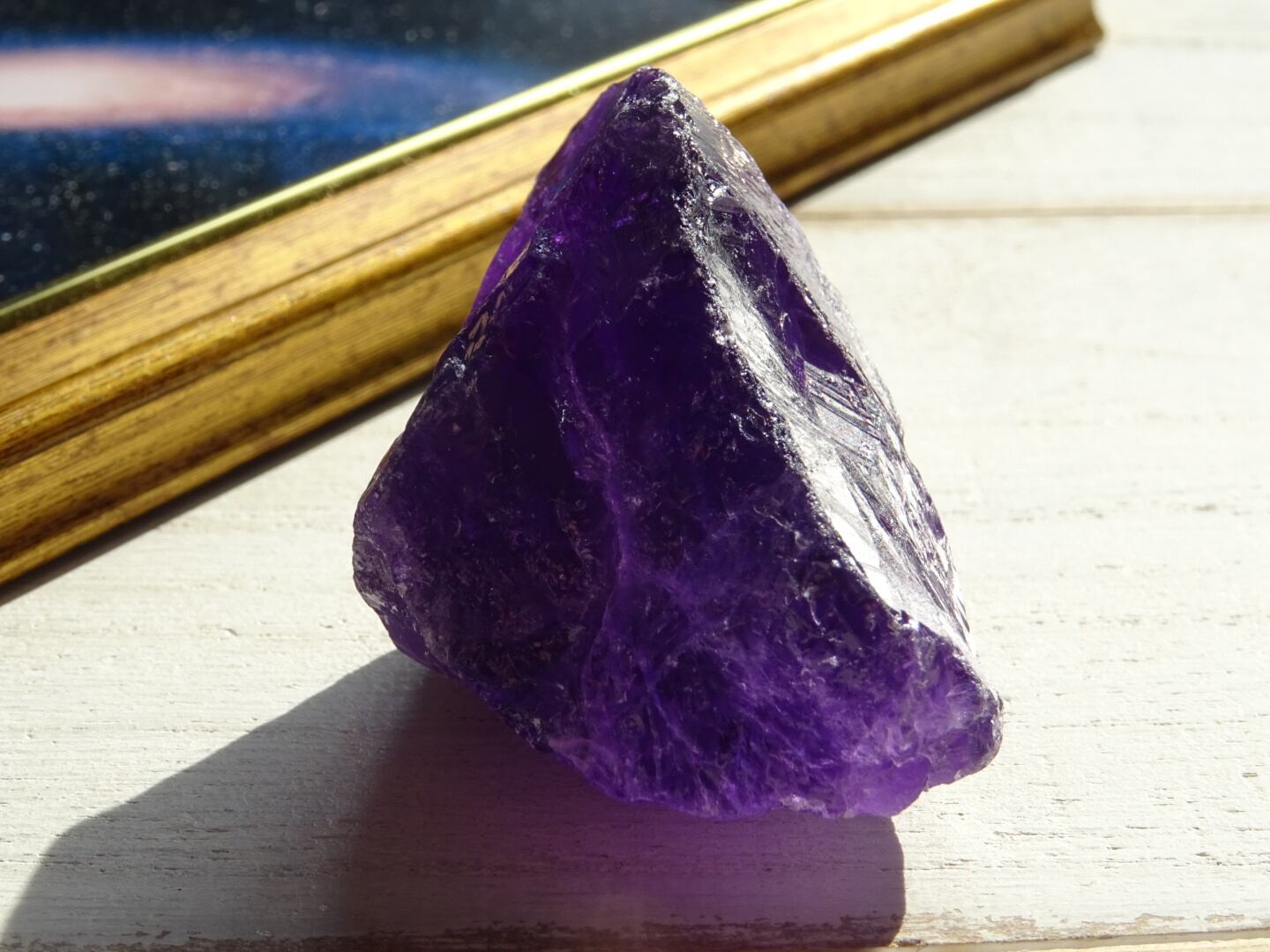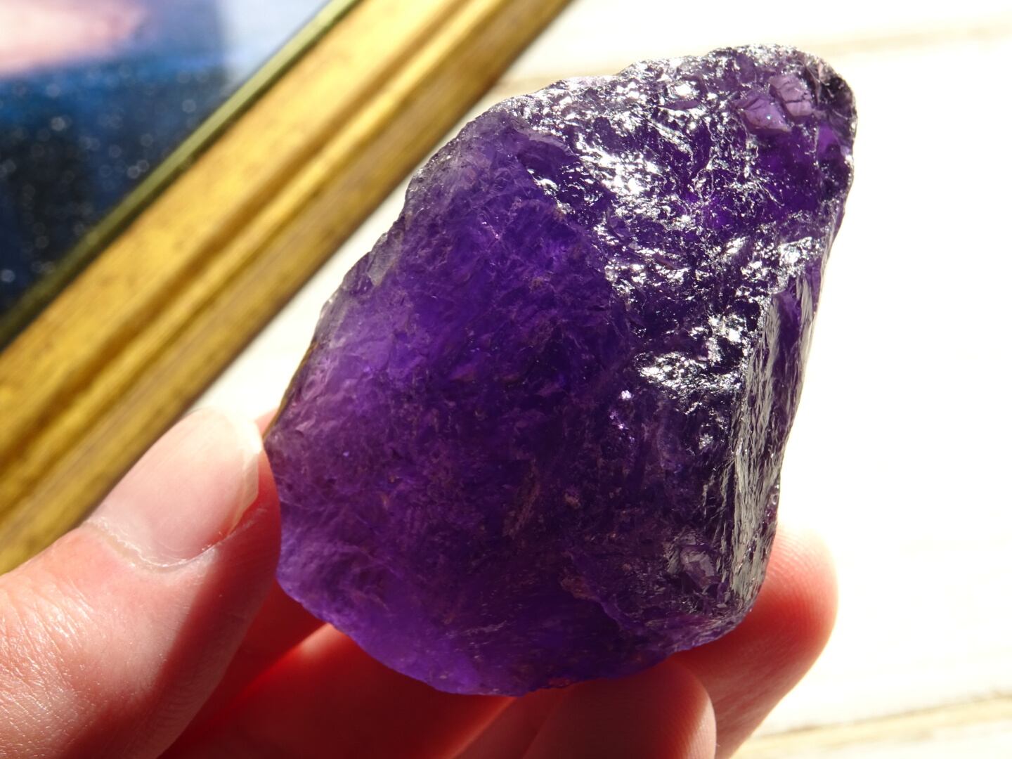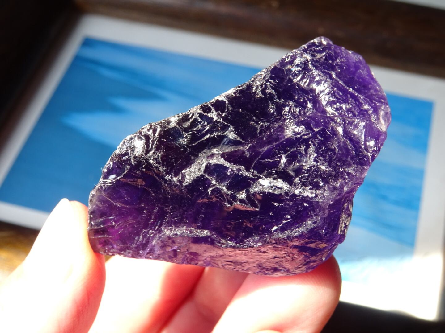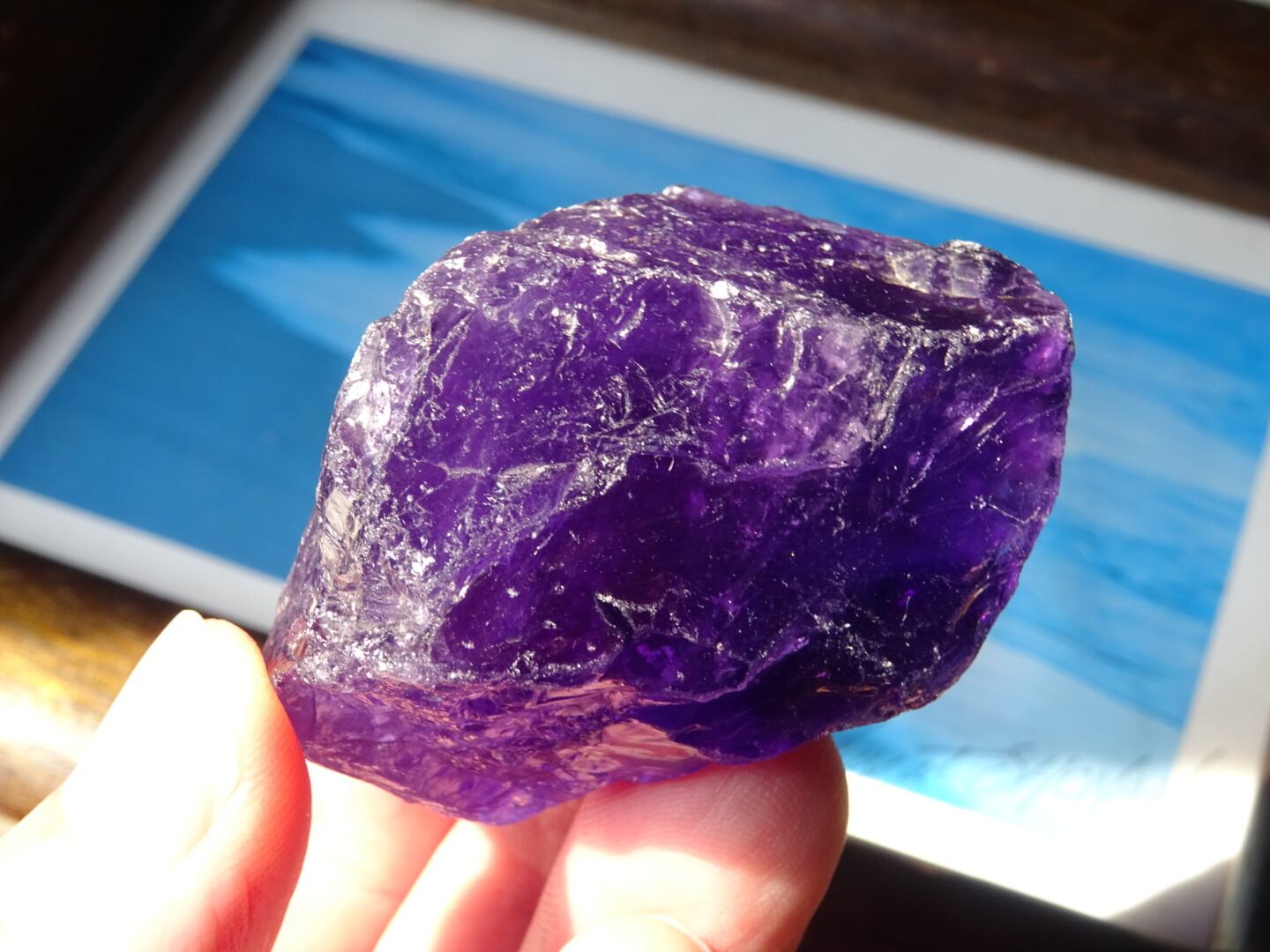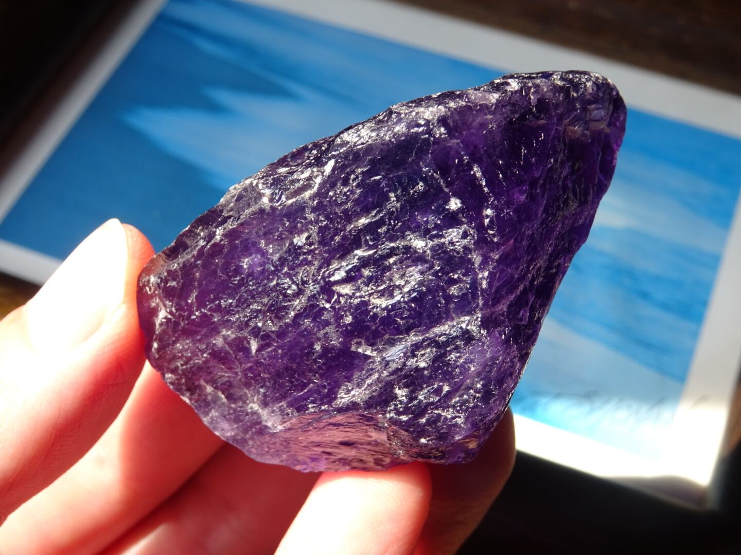 とても珍しいルワンダ産アメジスト。濃いめのパープルが特徴で、光に透かすと非常に美しい紫の世界を魅せてくれます。