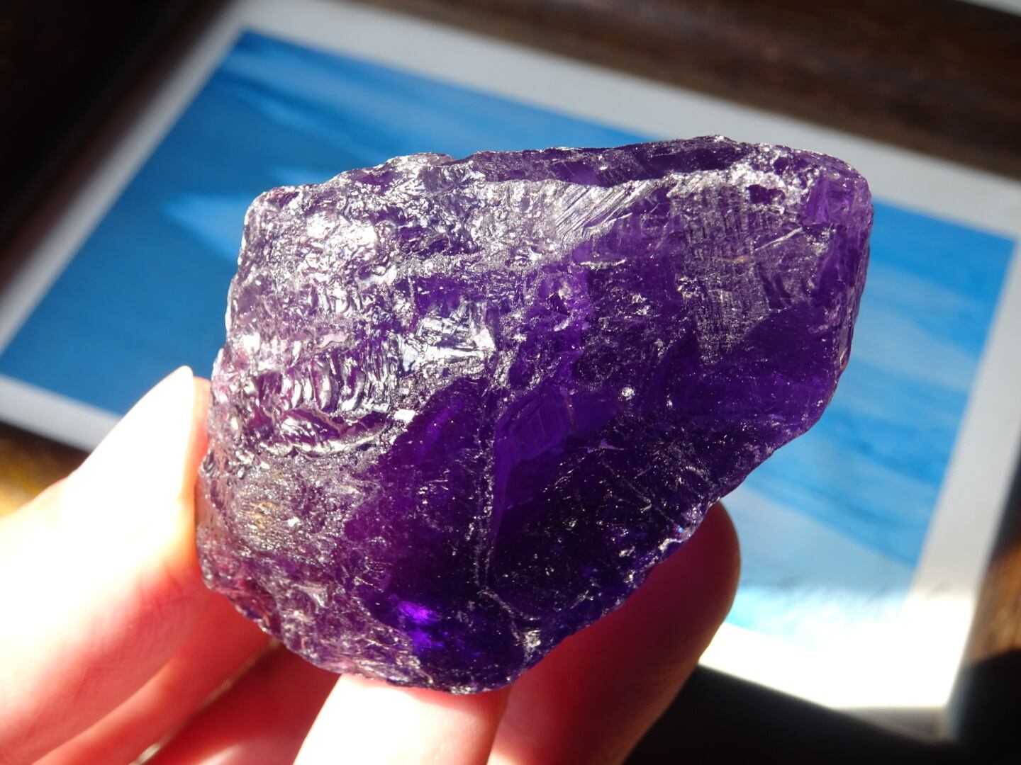 手にしているだけでもニタニタしてしまいますが、ぜひ逆光などの光に透かして遊んでみてください。光源によってさまざまな紫の表情を見せてくれます。
